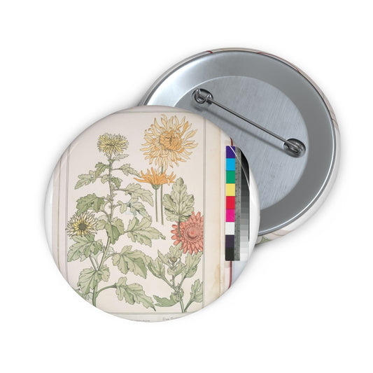 Chrysanthème, Art Nouveau Poster Pin Buttons with Crisp Design