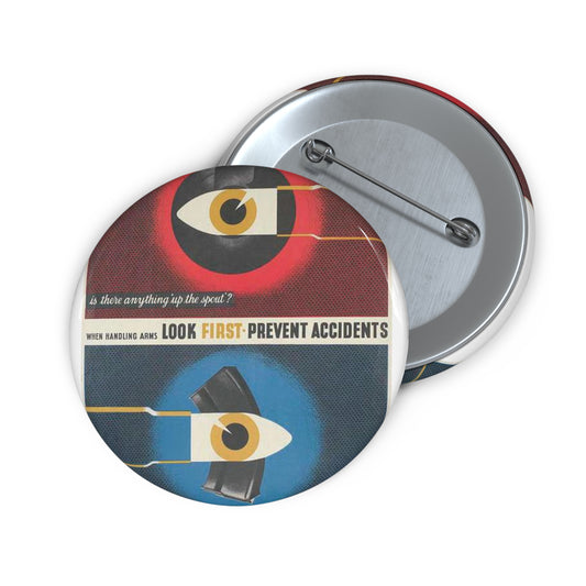 When Handling Arms Look First - Prevent Accidents Art.IWMPST2895 Pin Buttons with Crisp Design