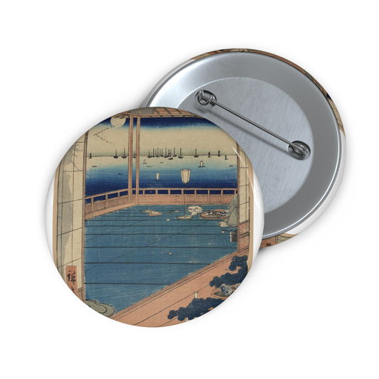 Tsuki no misaki, Andō Hiroshige - Ukiyo e print Pin Buttons with Crisp Design