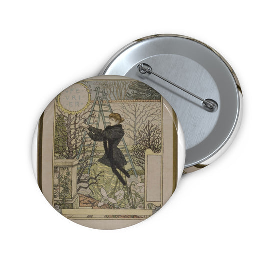 Eugène Samuel Grasset - Février Pin Buttons with Crisp Design