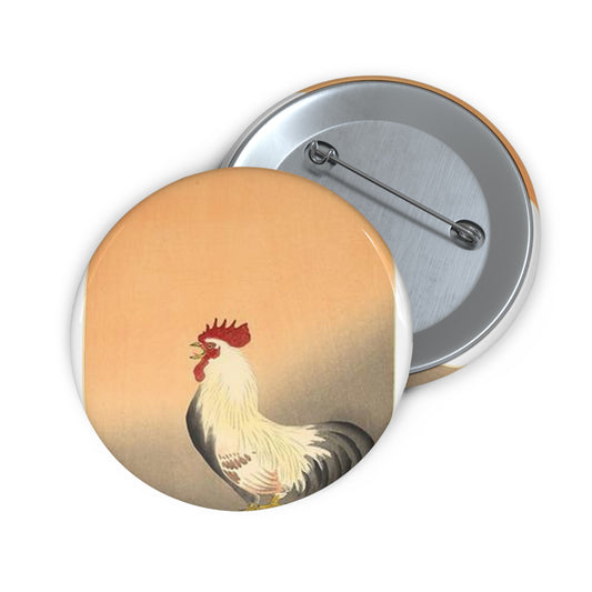 Koson - rooster-and-hen-at-sunrise, Ohara Koson Pin Buttons with Crisp Design