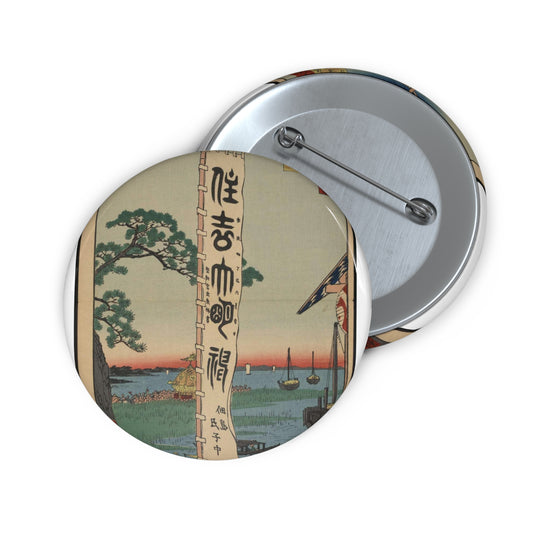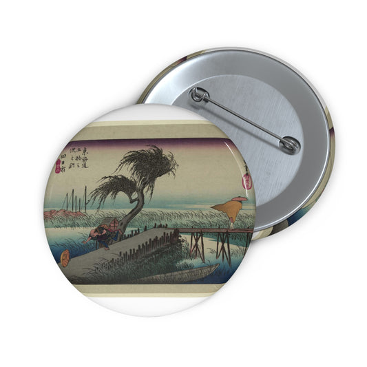 Utagawa Hiroshige - Yokkaichi, Ando Hiroshige - Ukiyo e print Pin Buttons with Crisp Design