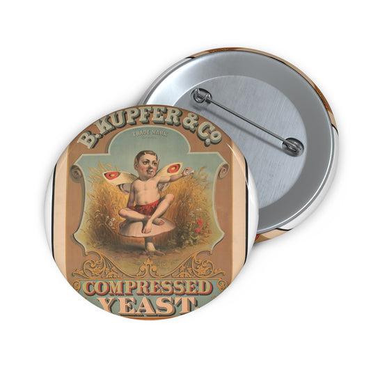 B. Kupfer & Co., compressed yeast puck Pin Buttons with Crisp Design