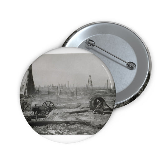 Baku. Oil production. - Drawing. Public domain image. Pin Buttons with Crisp Design