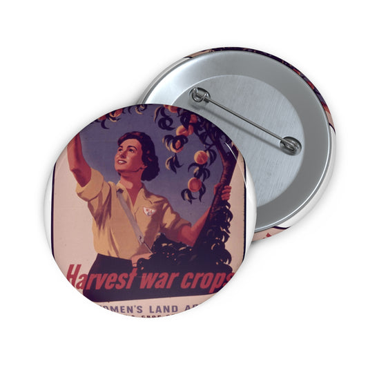 "Harvest War Crops, The Women's Land Army" - NARA - 514440 Pin Buttons with Crisp Design