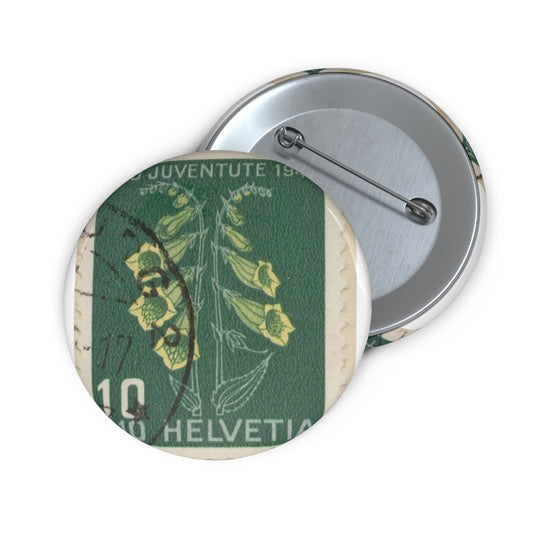 Frimärke ur Gösta Bodmans filatelistiska motivsamling, påbörjad 1950.Frimärke från Pin Buttons with Crisp Design