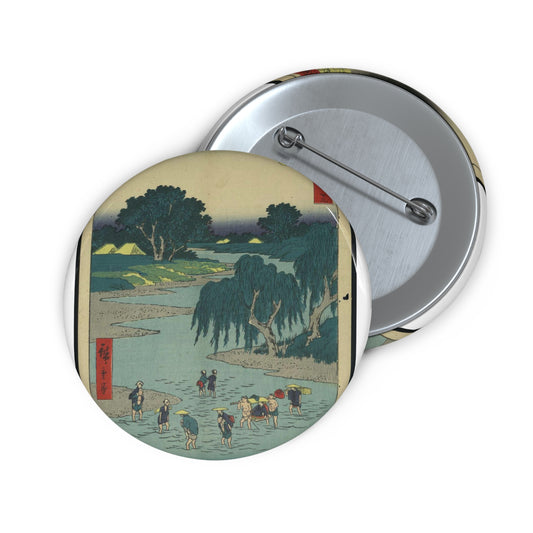 Fujieda, Andō Hiroshige - Public domain portrait drawing Pin Buttons with Crisp Design