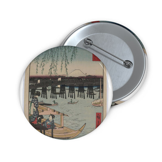 Tōto ryōgoku, Ando Hiroshige - Public domain portrait drawing Pin Buttons with Crisp Design