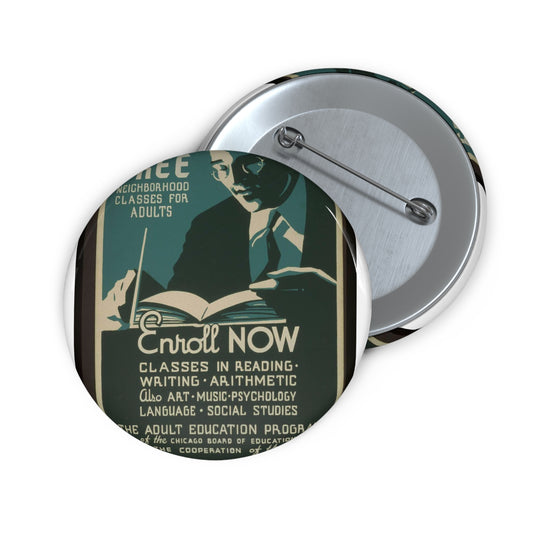 Free neighborhood classes for adults Enroll now : Classes in reading - writing - arithmetic - also art - music - psychology - language - social studies. Pin Buttons with Crisp Design