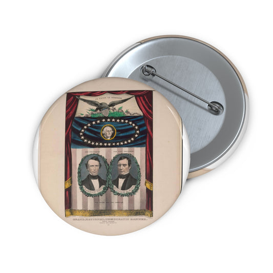 Grand, national, democratic banner - press onward - portraits from daguerreotype / lith. & pub. by N. Currier. Pin Buttons with Crisp Design