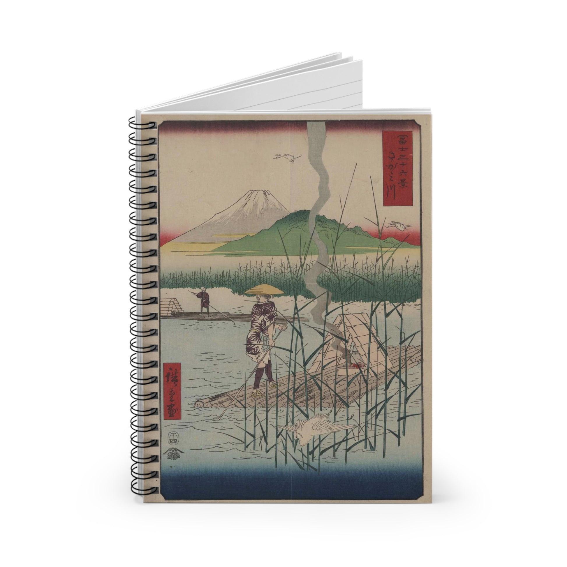 18 - The Sagami River - A painting of a man standing on a boat in a body of water Spiral Bound Ruled Notebook with Printed Cover