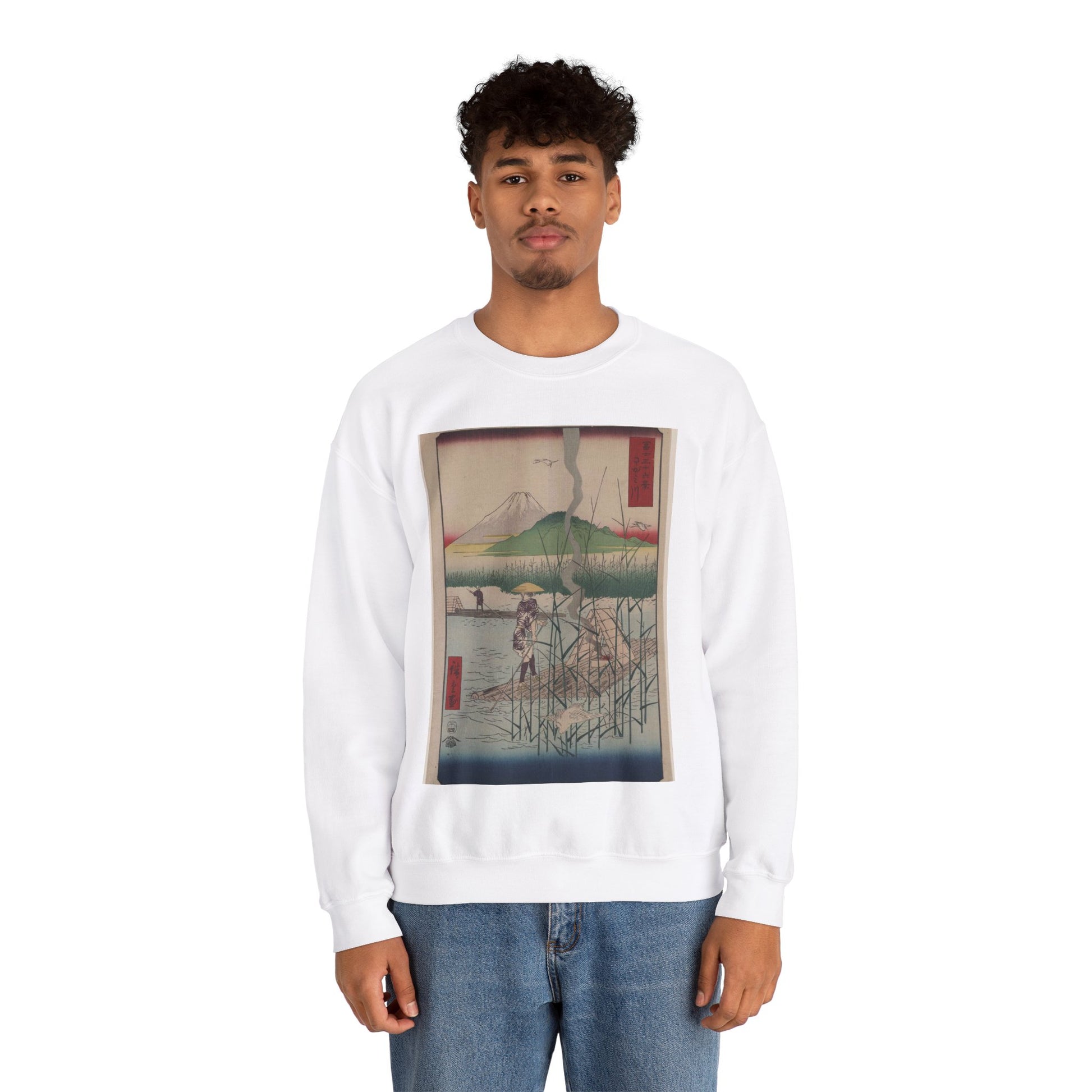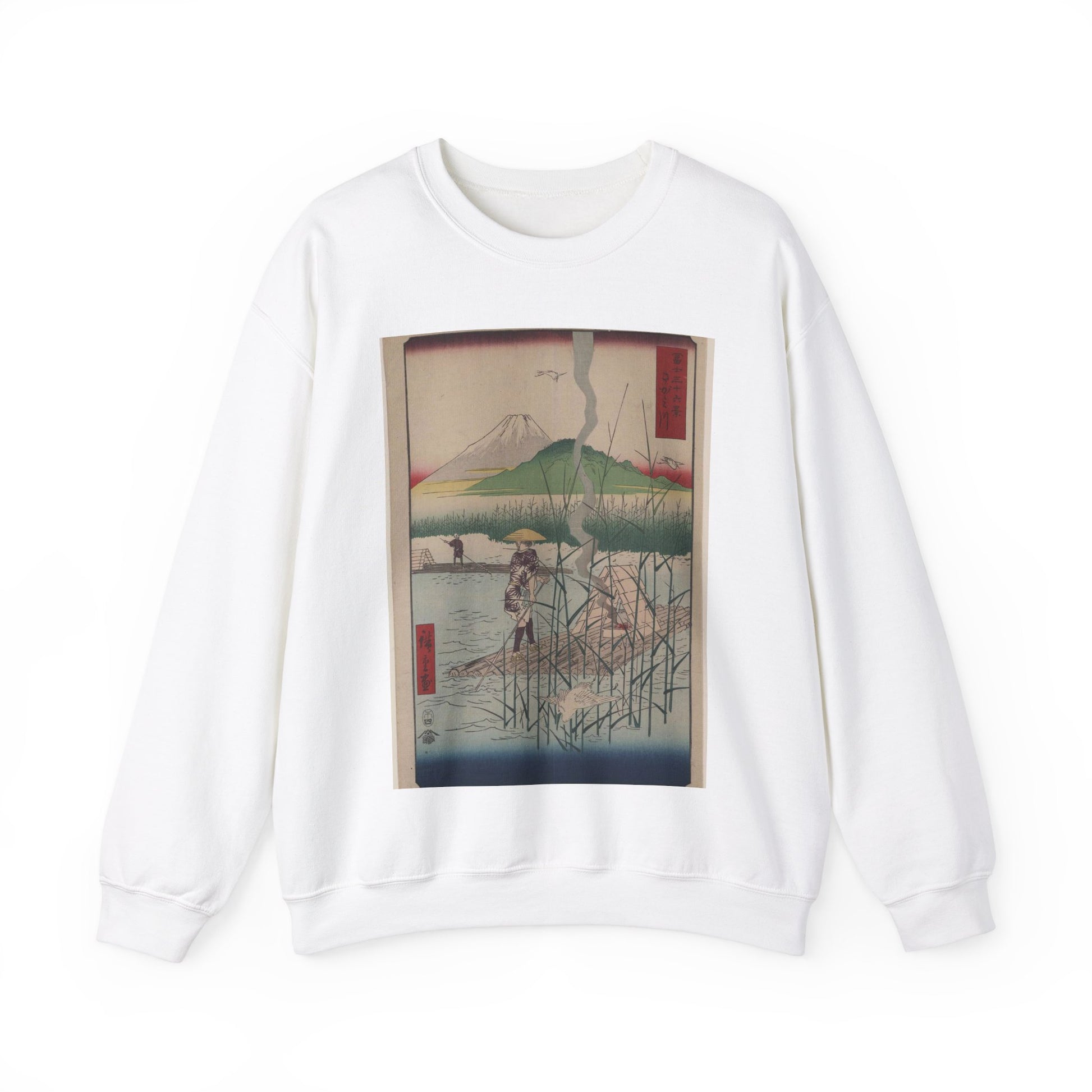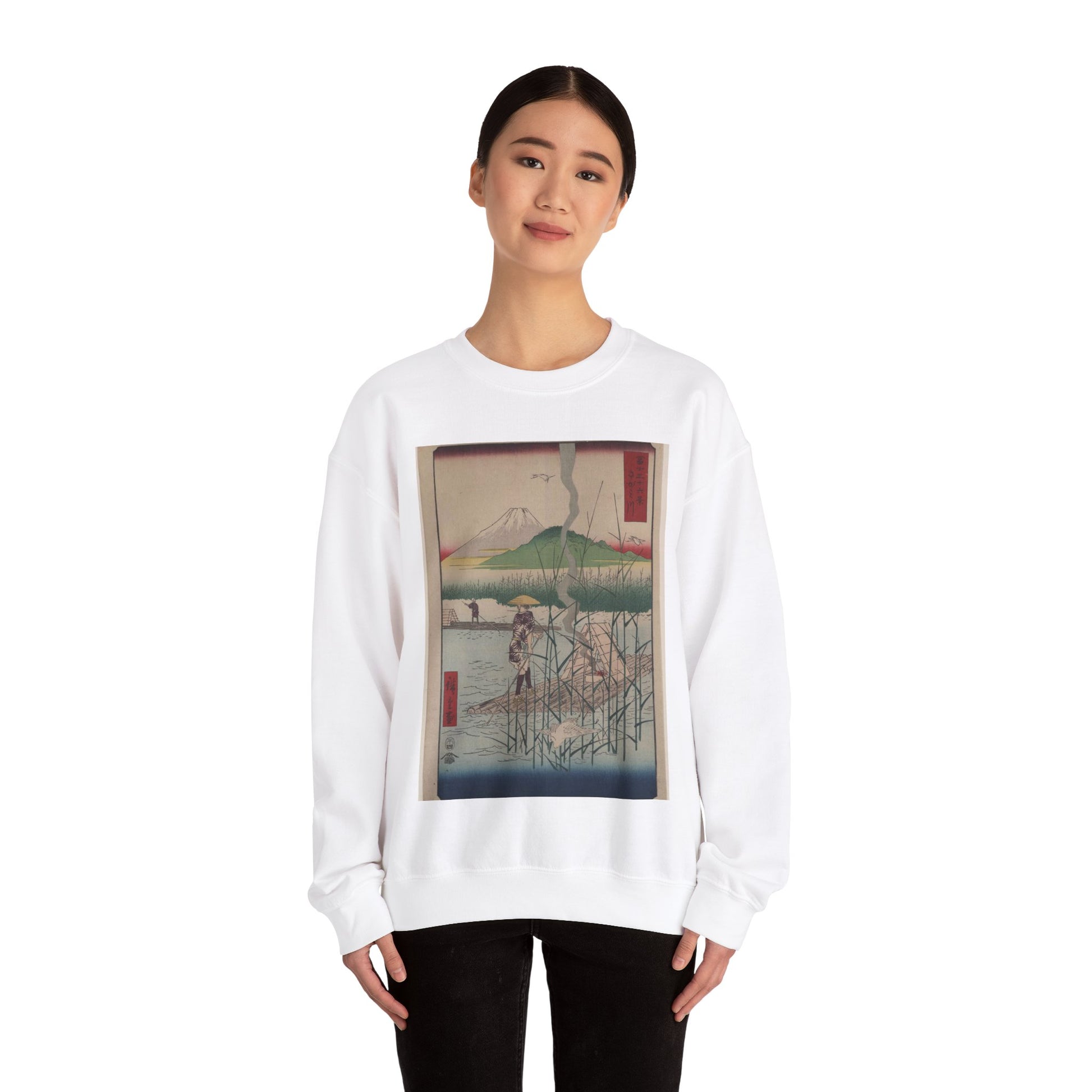 18 - The Sagami River - A painting of a man standing on a boat in a body of water White Heavy Blend Adult Crew Neck SweatShirt