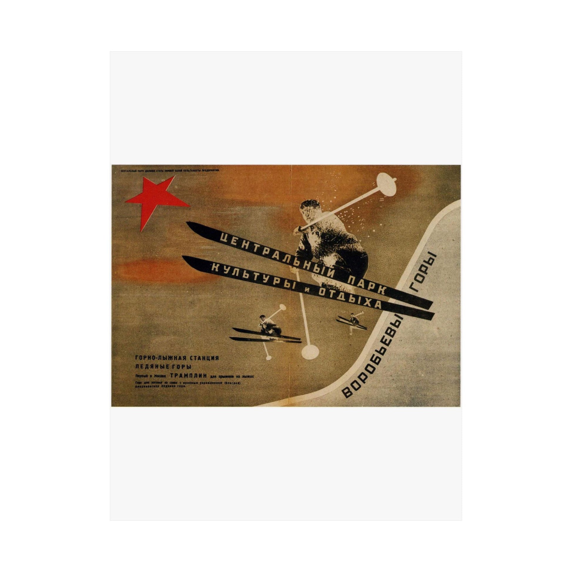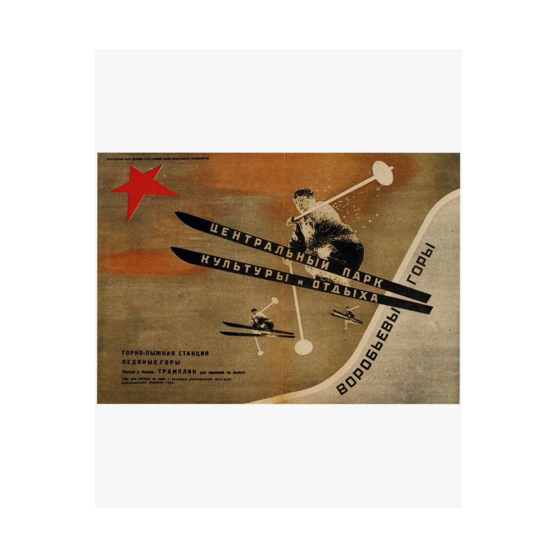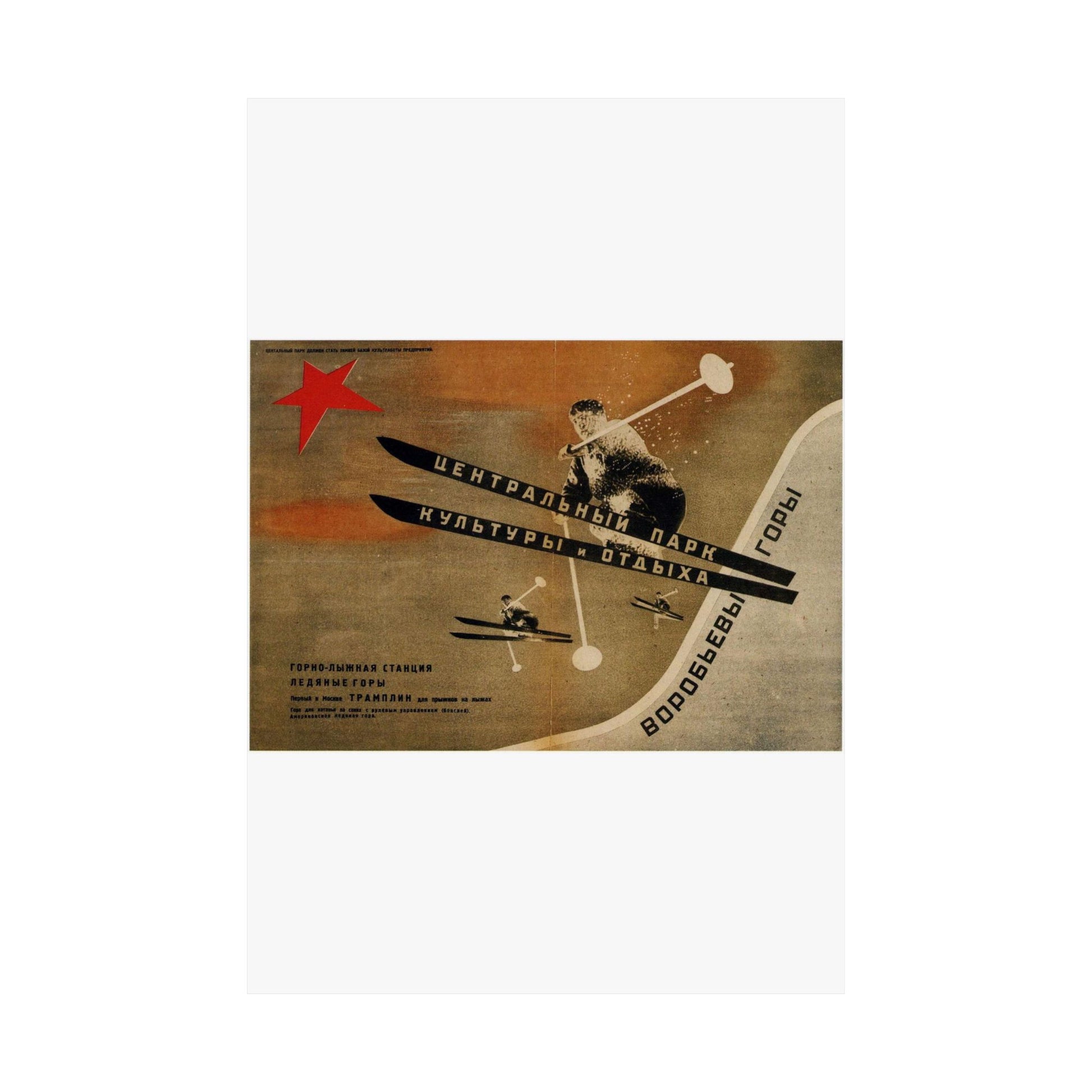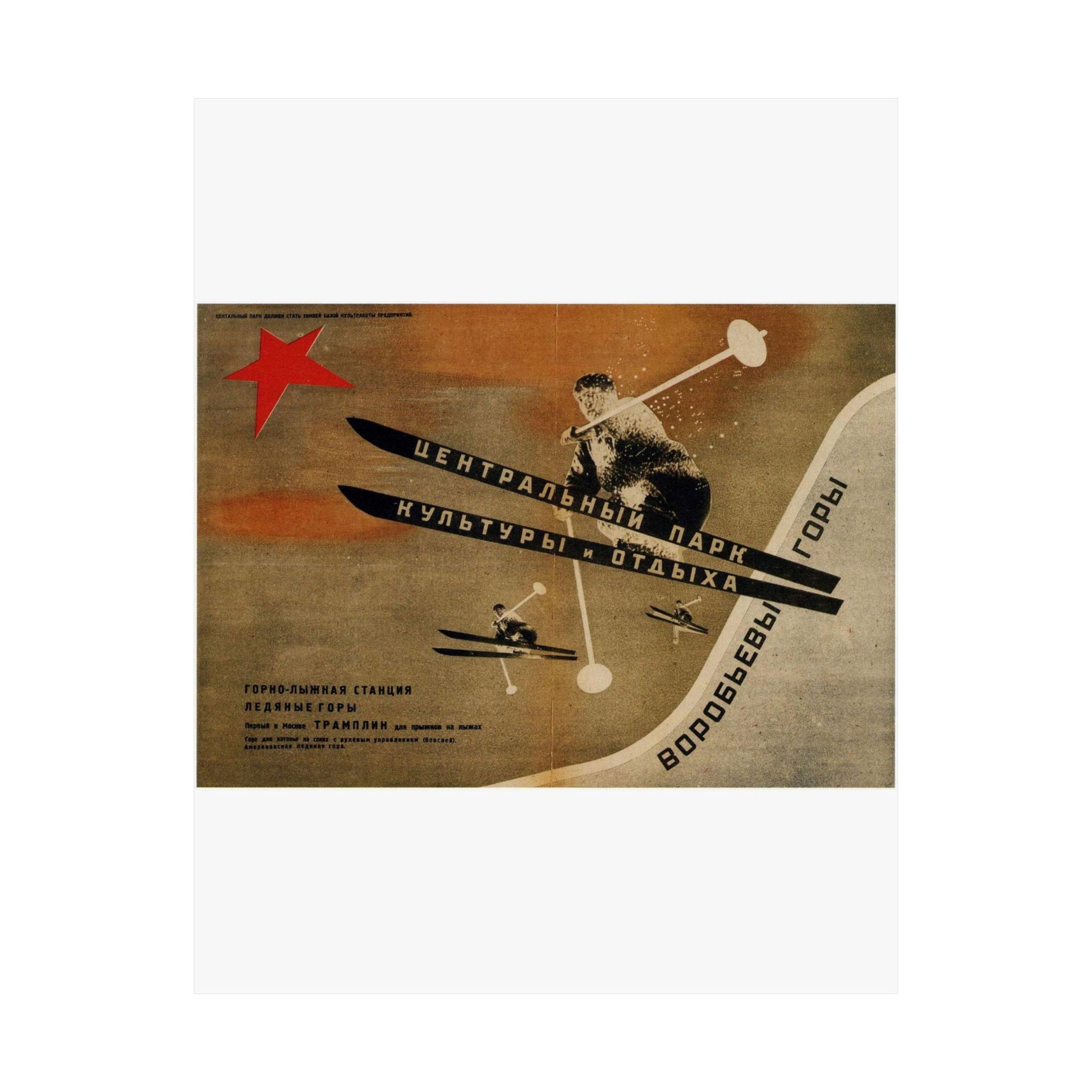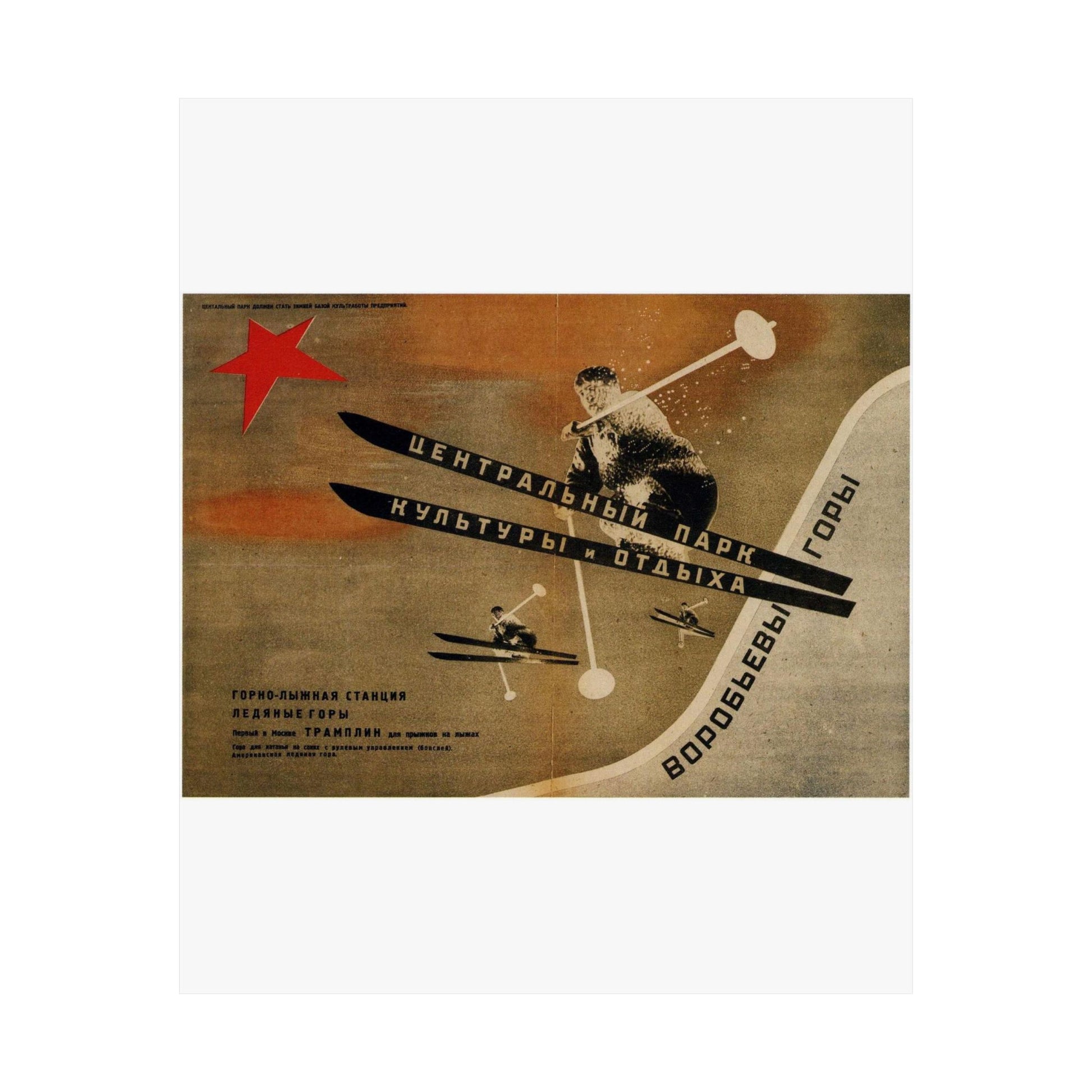 Museum-grade 175gsm paper and top-tier pigmented archival ink create this exquisite poster. Matte finish is perfect for art for indoor use. Choose your size and decorate your room, or give as a present for any occasion. Русский: 1931. Первый в Москве трамплин для прыжков на лыжах. Воробьевы горы.jpg