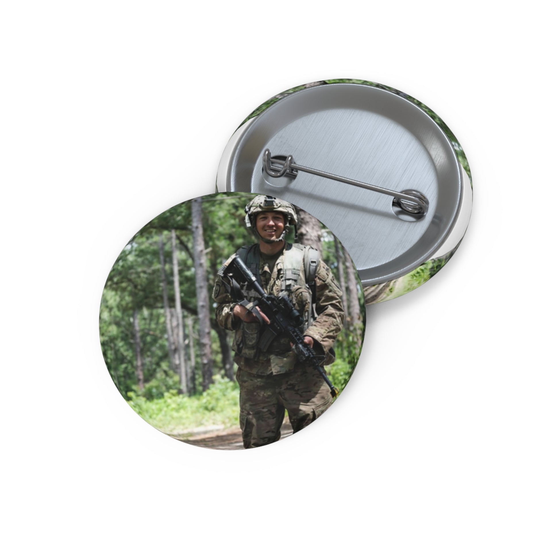 1st Lt. Jamieson Barnes an officer with Headquarters, Pin Buttons with Crisp Design