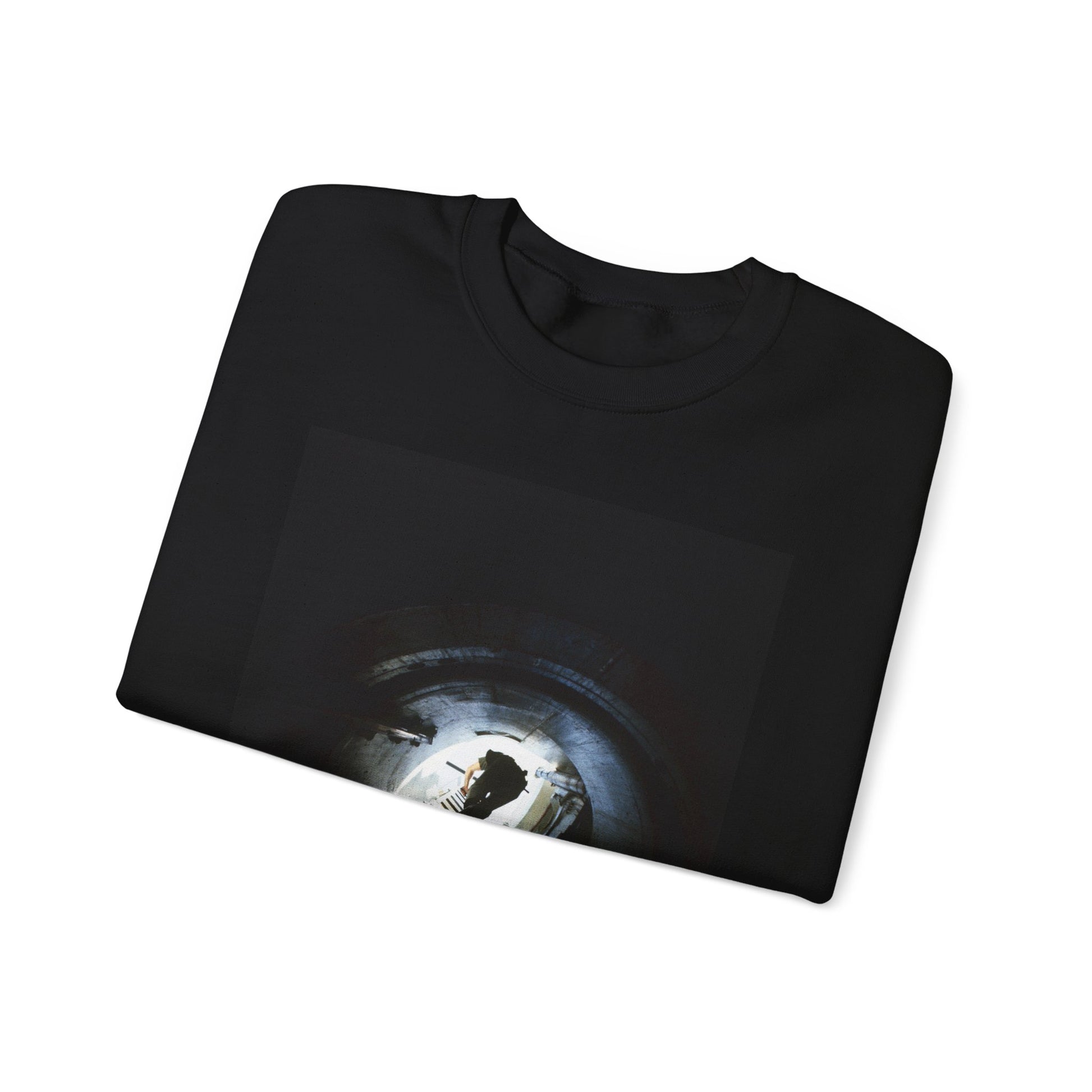 A 44th Field Missile Maintenance Squadron maintenance technician climbs down a ladder into a Minuteman missile support facility Black Heavy Blend Adult Crew Neck SweatShirt