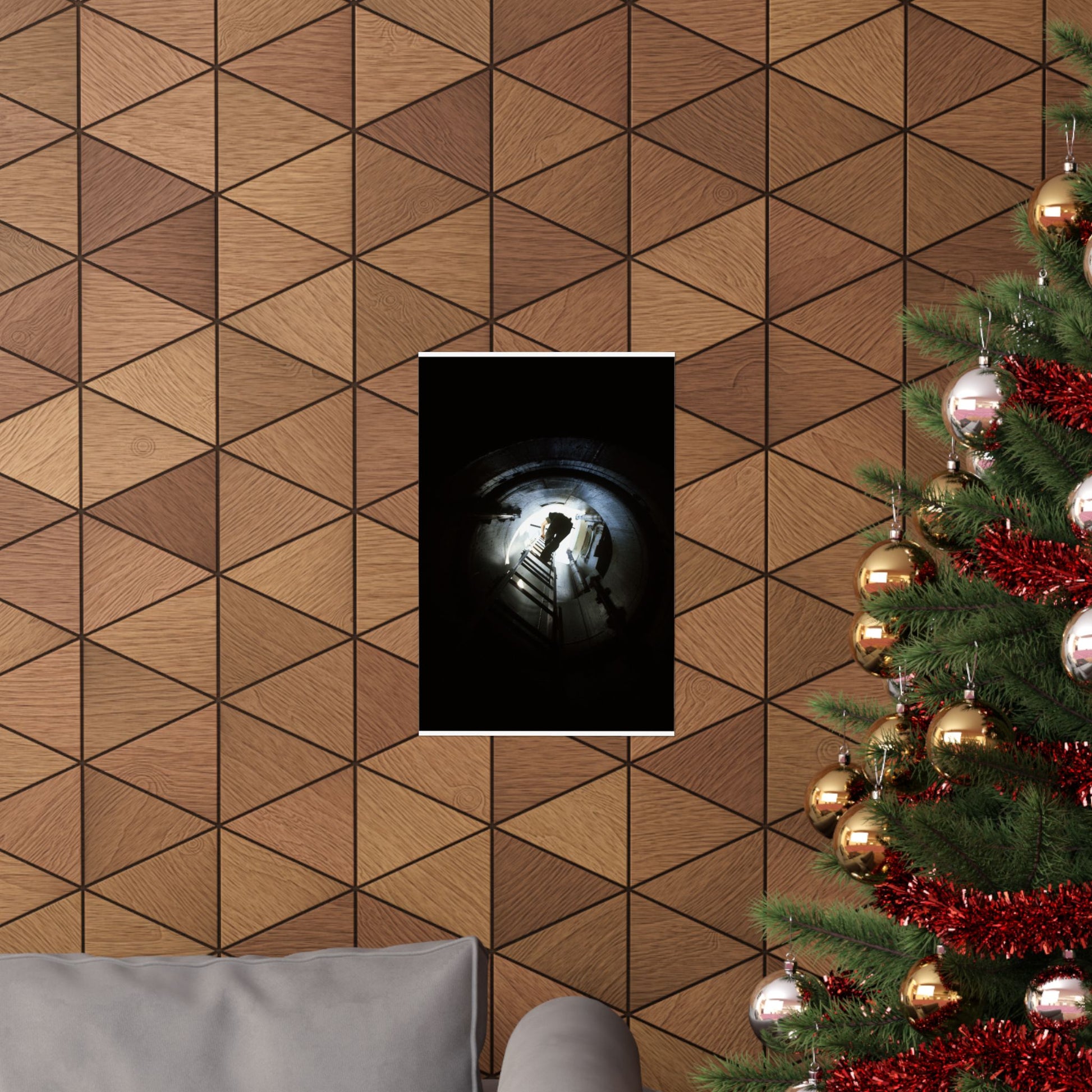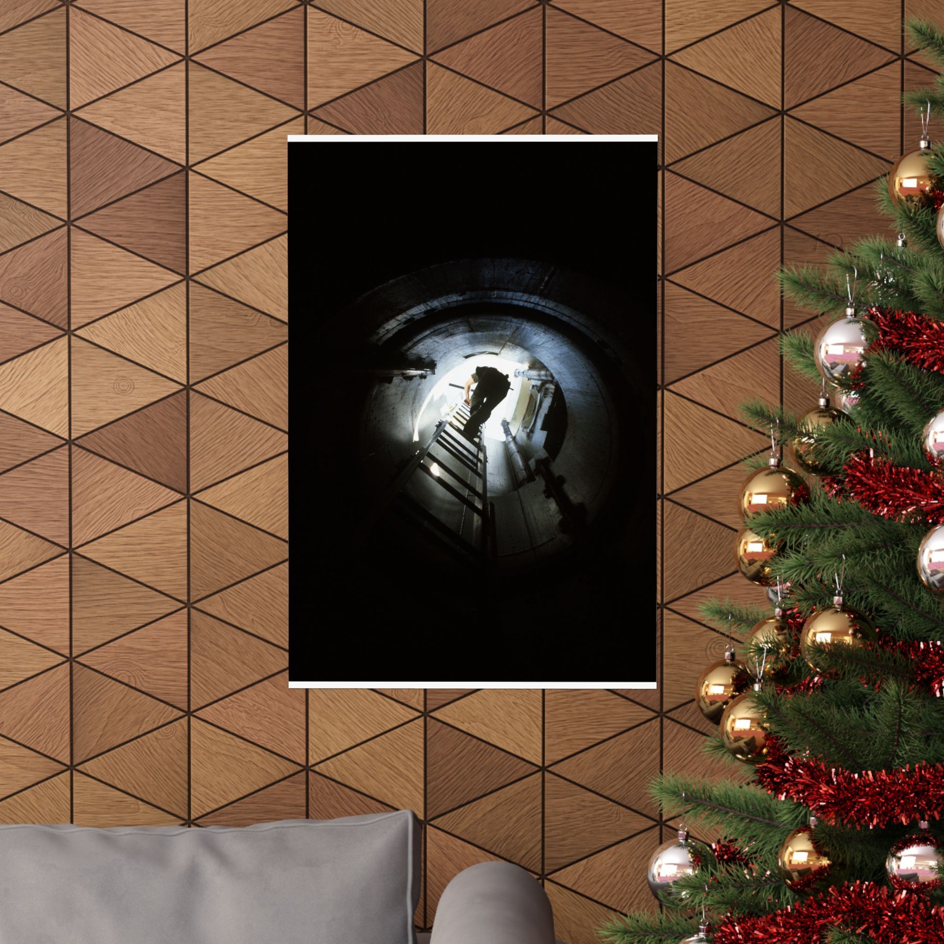 A 44th Field Missile Maintenance Squadron maintenance technician climbs down a ladder into a Minuteman missile support facility High Quality Matte Wall Art Poster for Home, Office, Classroom
