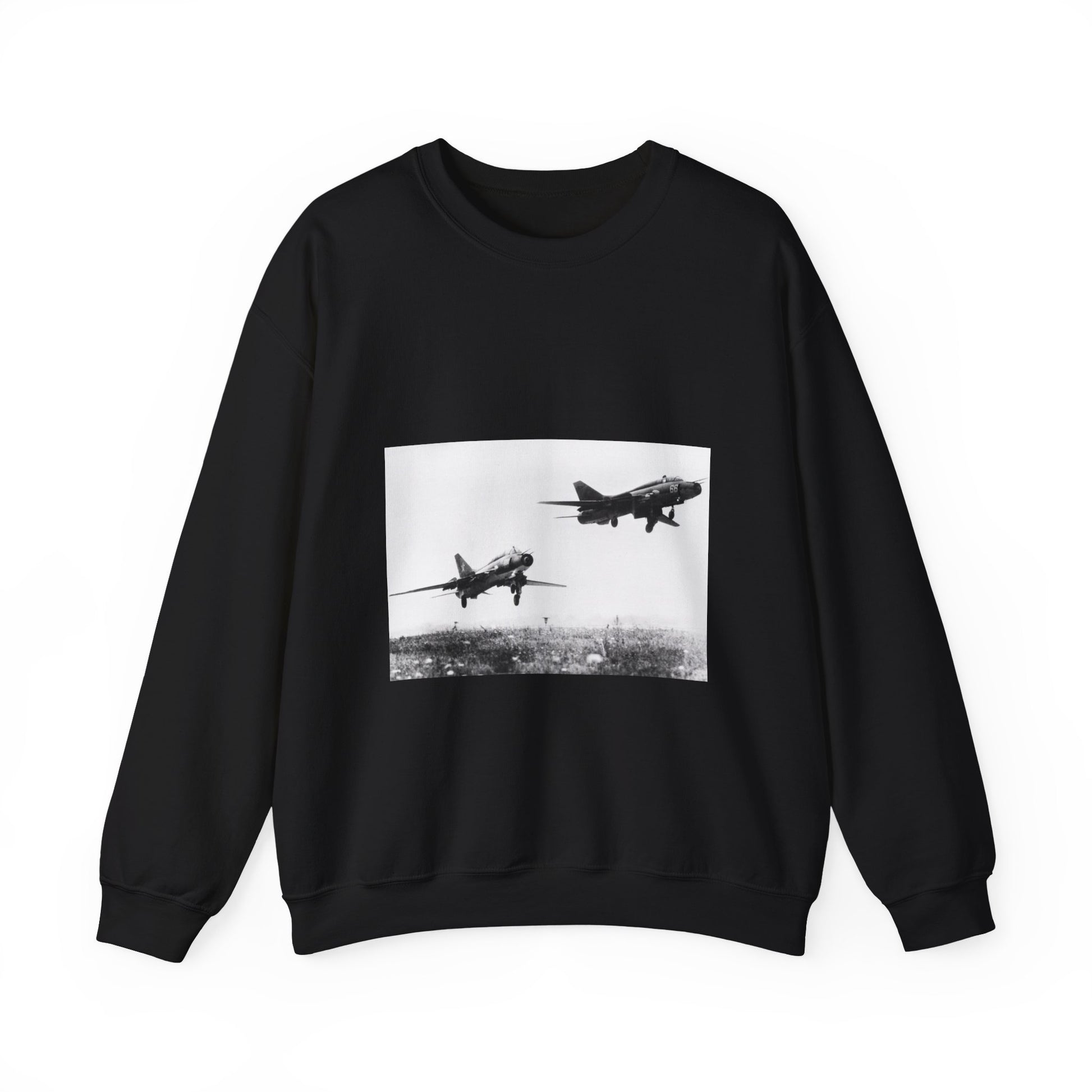 A right side view of a Soviet Su-17 Fitter-G, right, and a Fitter-H aircraft taking off together Black Heavy Blend Adult Crew Neck SweatShirt