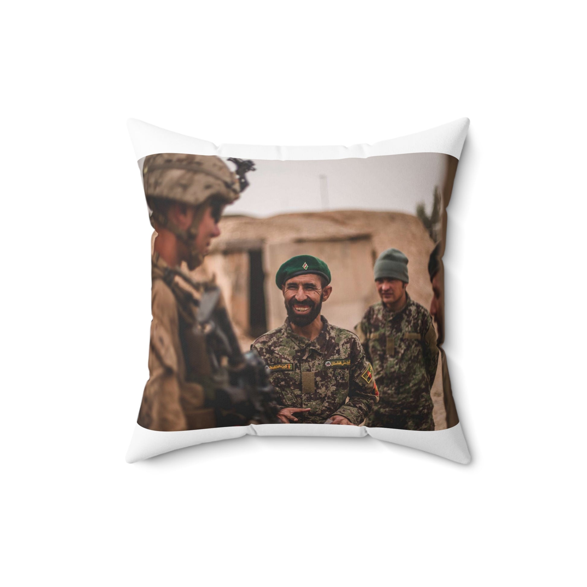 A U.S. Marine with Task Force Southwest (TFSW) converses Decorative Accent Square Pillow