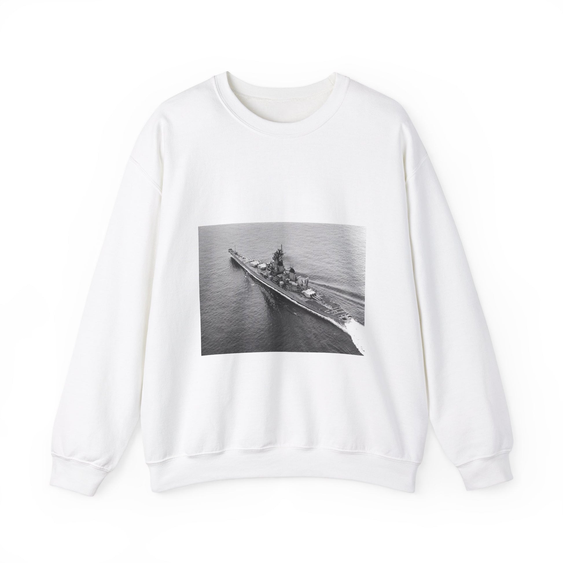 An elevated port quarter view of the battleship USS IOWA (BB 61) underway during sea trials White Heavy Blend Adult Crew Neck SweatShirt