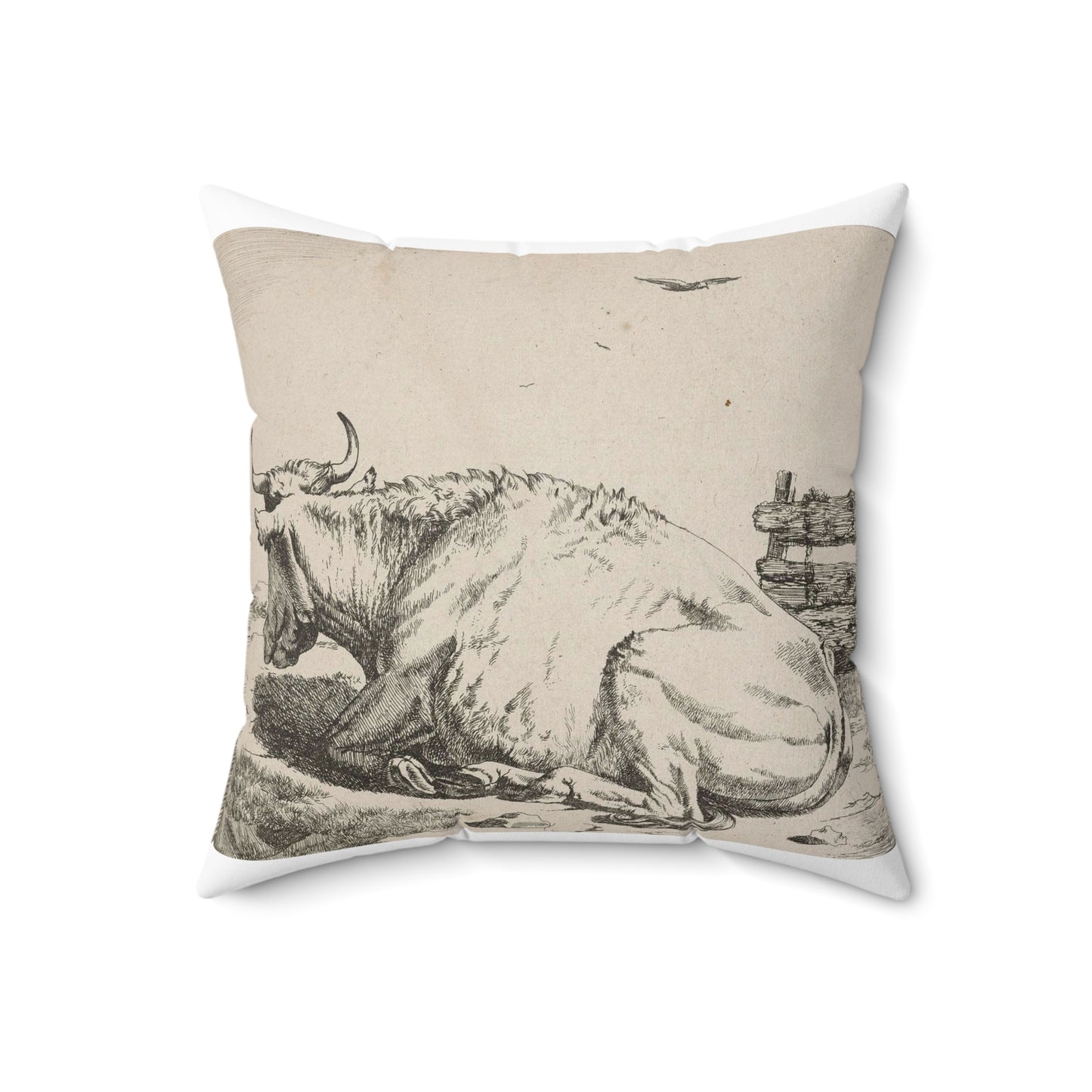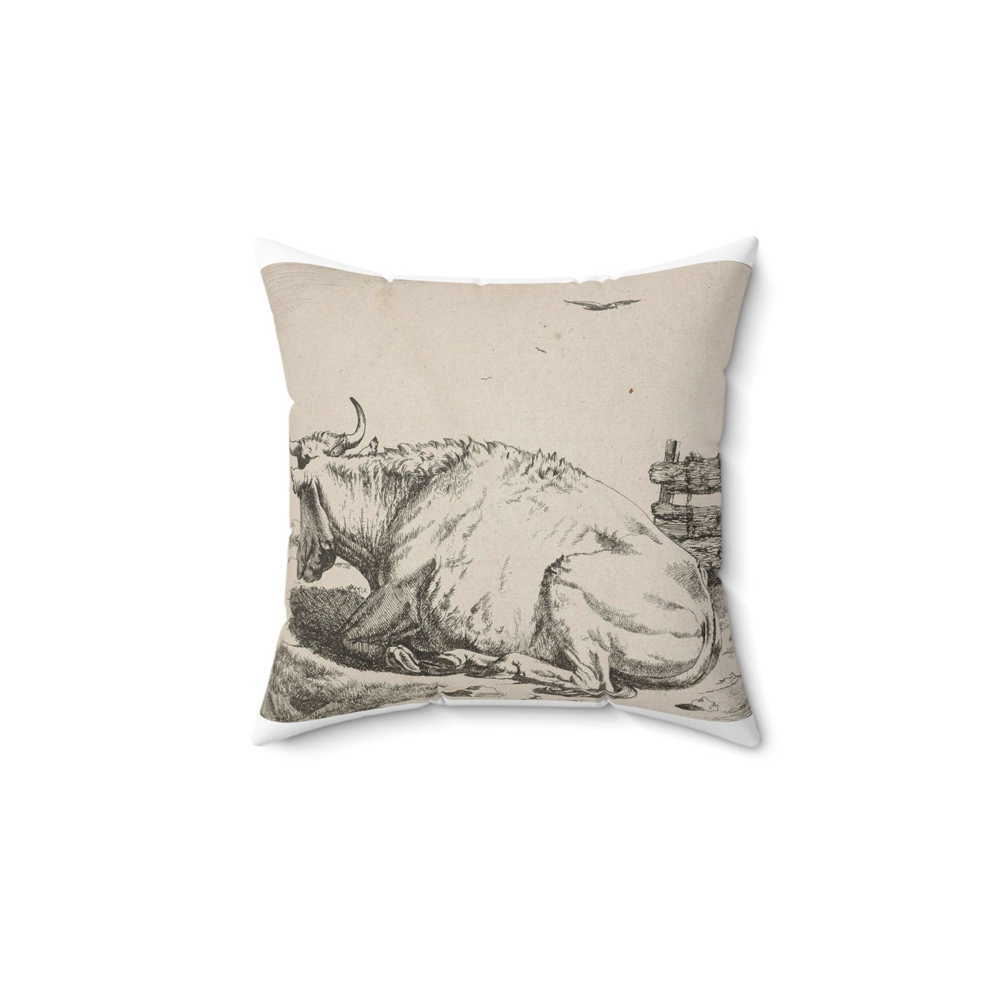 Another series of cows. Plate 3: A recumbent cow, in profile to left. Decorative Accent Square Pillow