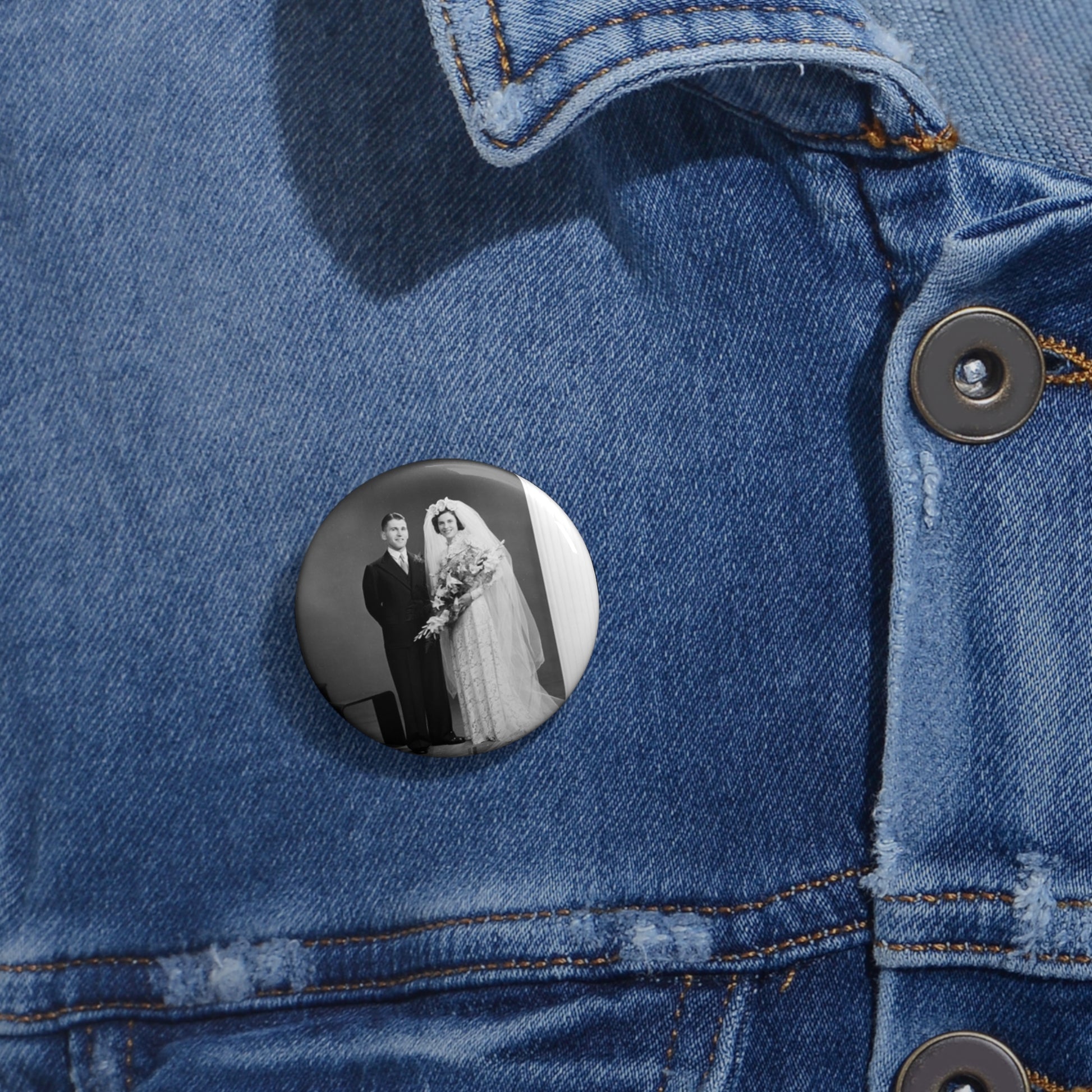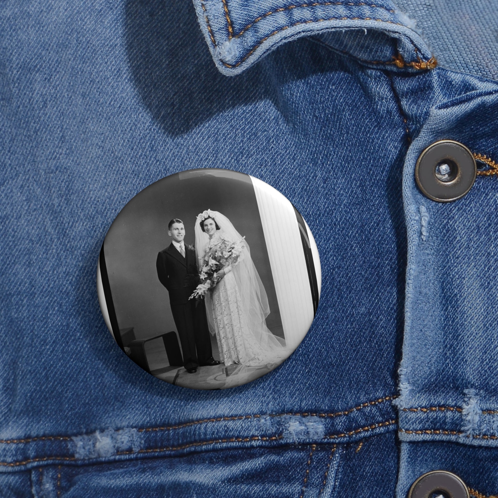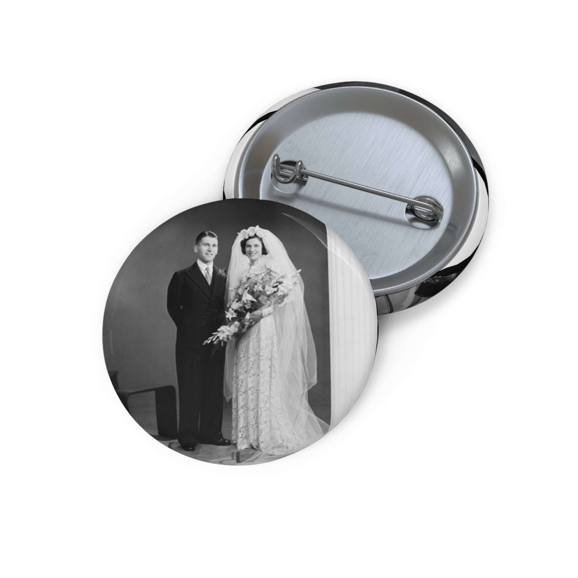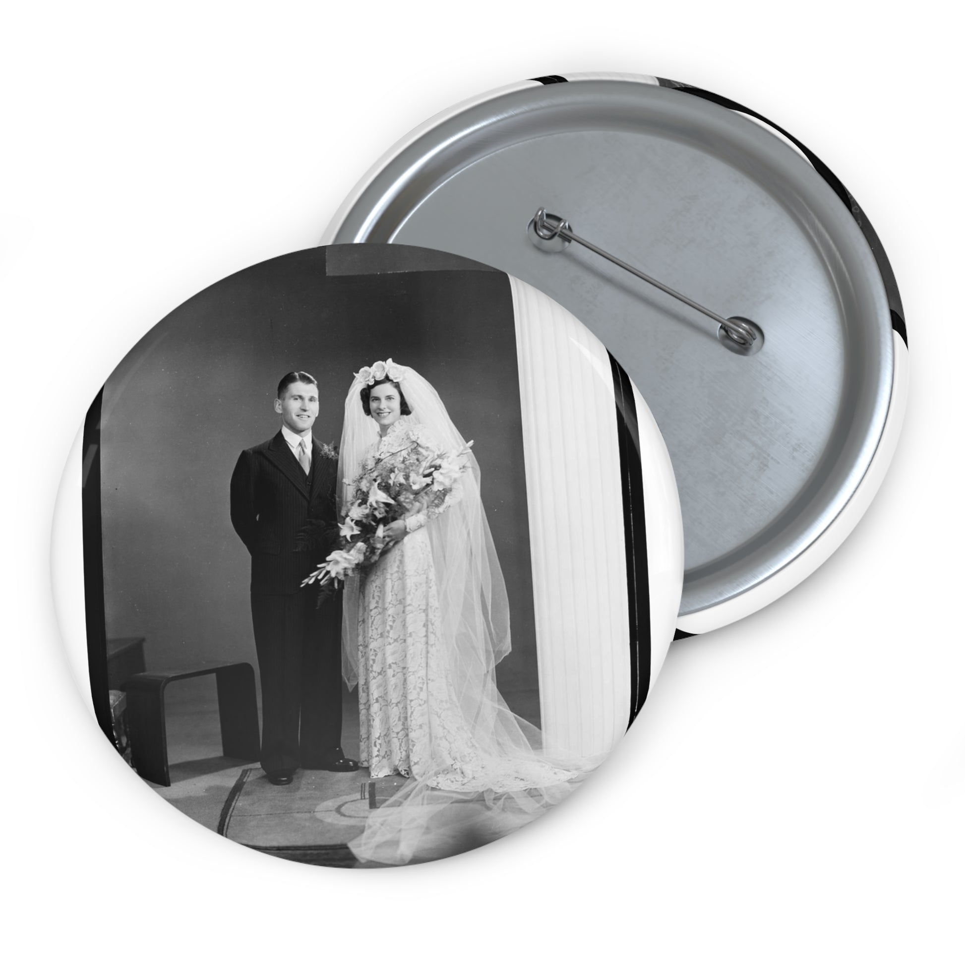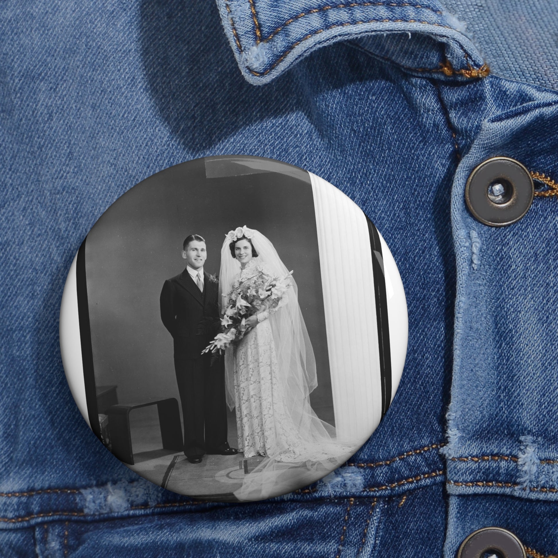 Atkins-Plummer wedding: the bride and groom Pin Buttons with Crisp Design
