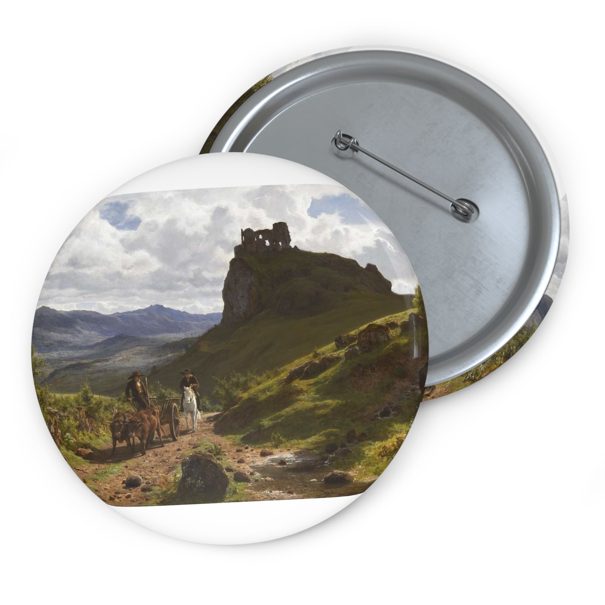 Auguste Bonheur - Les ruines du château d'Apchon Pin Buttons with Crisp Design