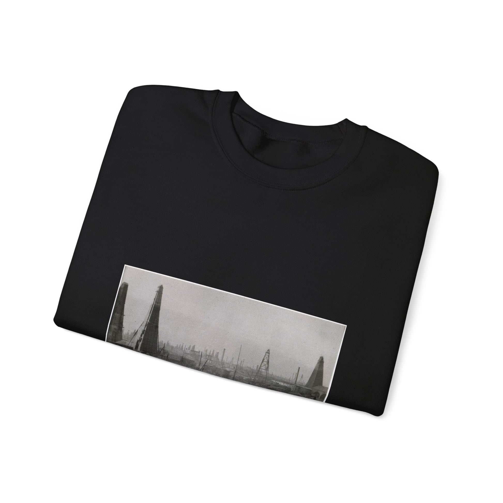 Baku. Oil production. - Drawing. Public domain image. Black Heavy Blend Adult Crew Neck SweatShirt