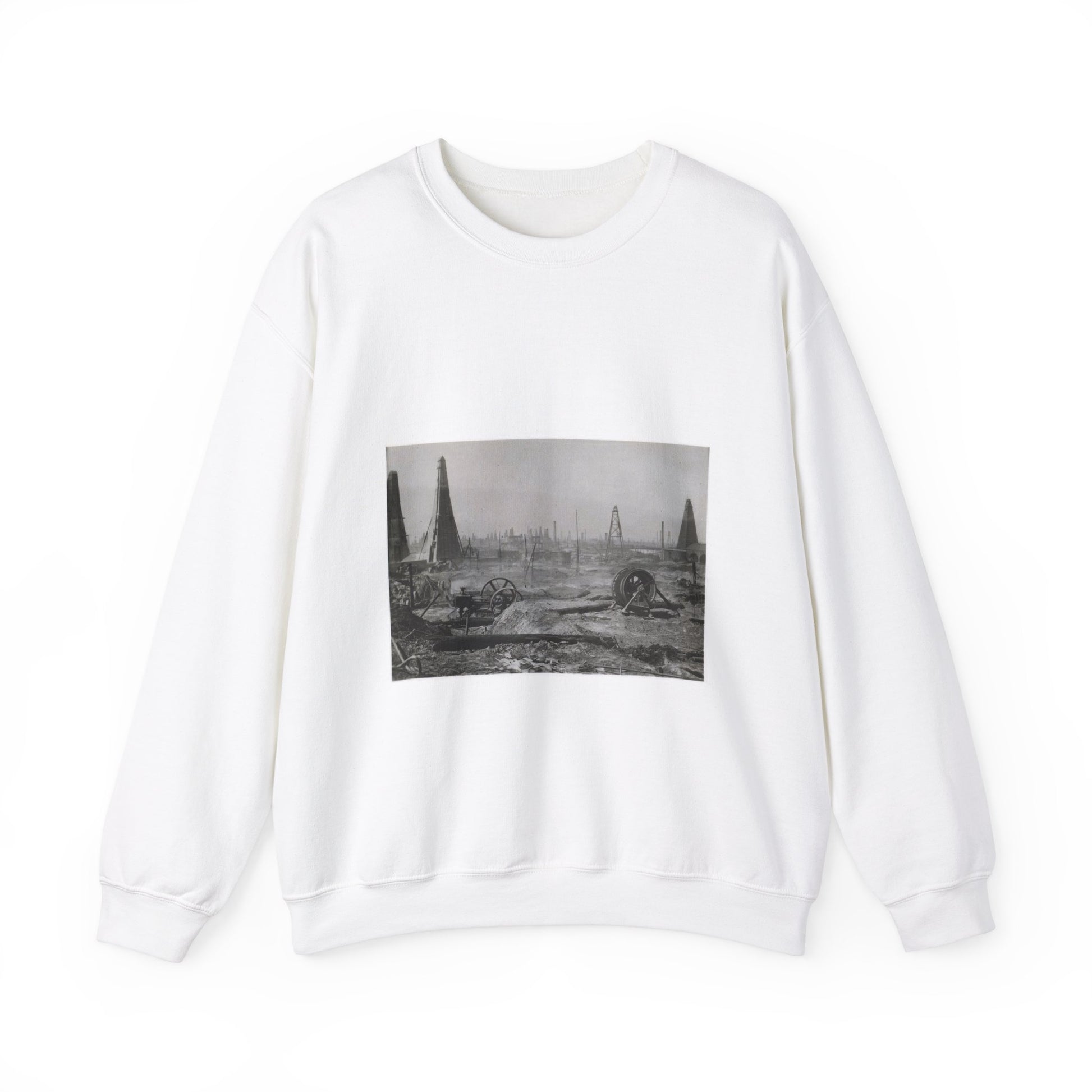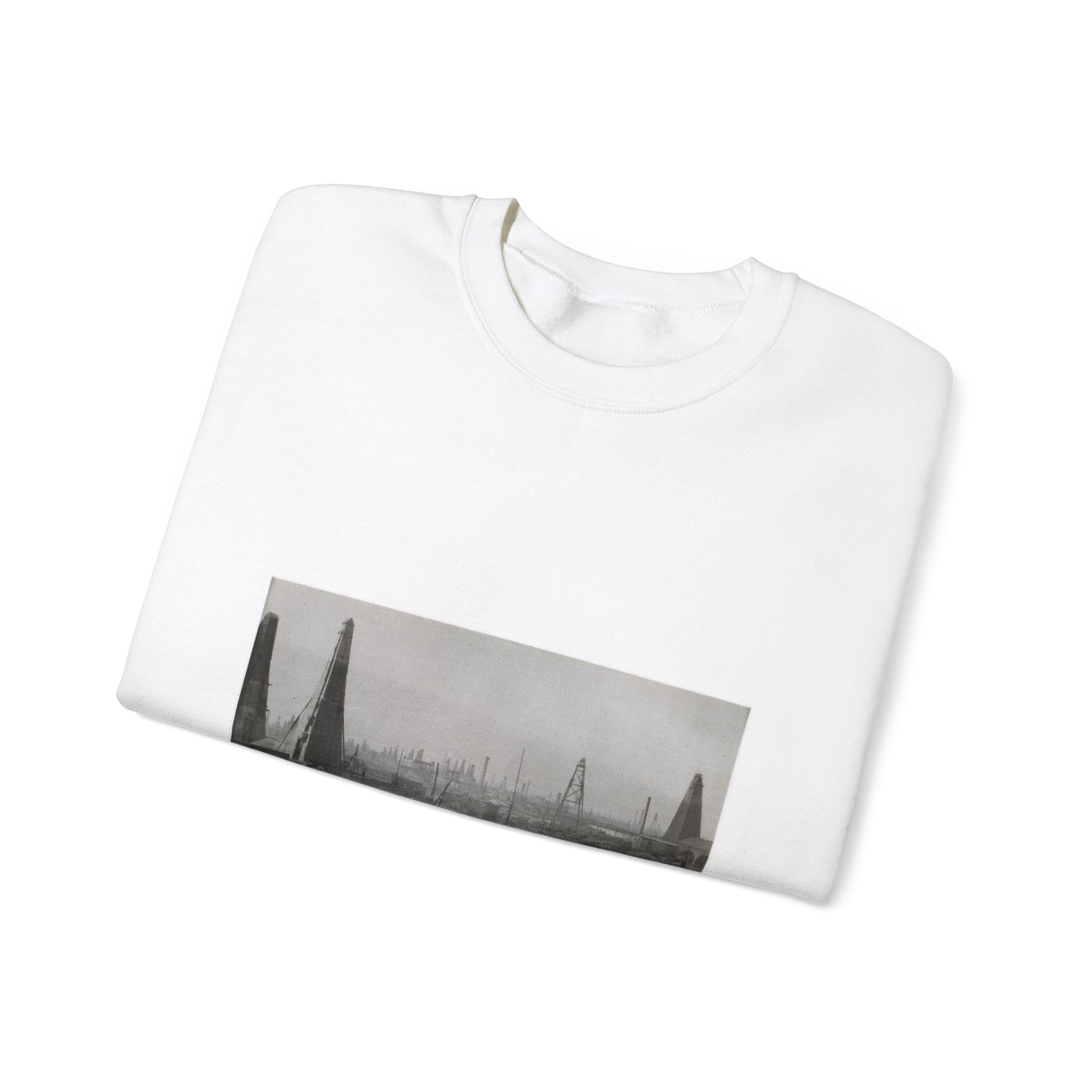 Baku. Oil production. - Drawing. Public domain image. White Heavy Blend Adult Crew Neck SweatShirt