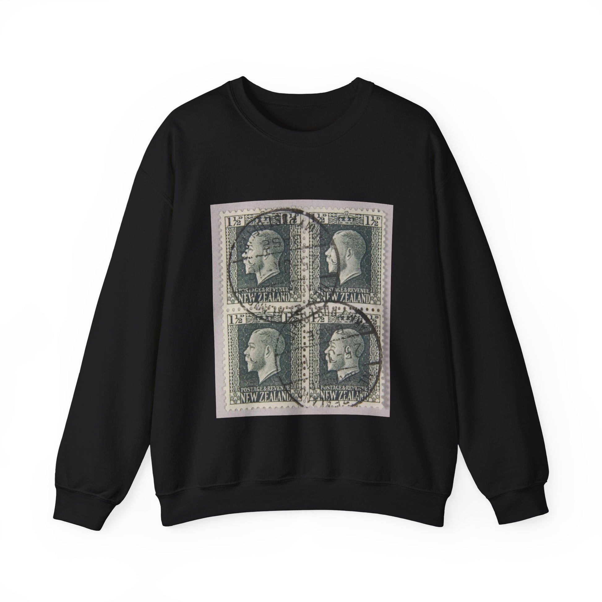 Block of one and a half penny 'King George V' definitive stamps in grey slate Black Heavy Blend Adult Crew Neck SweatShirt