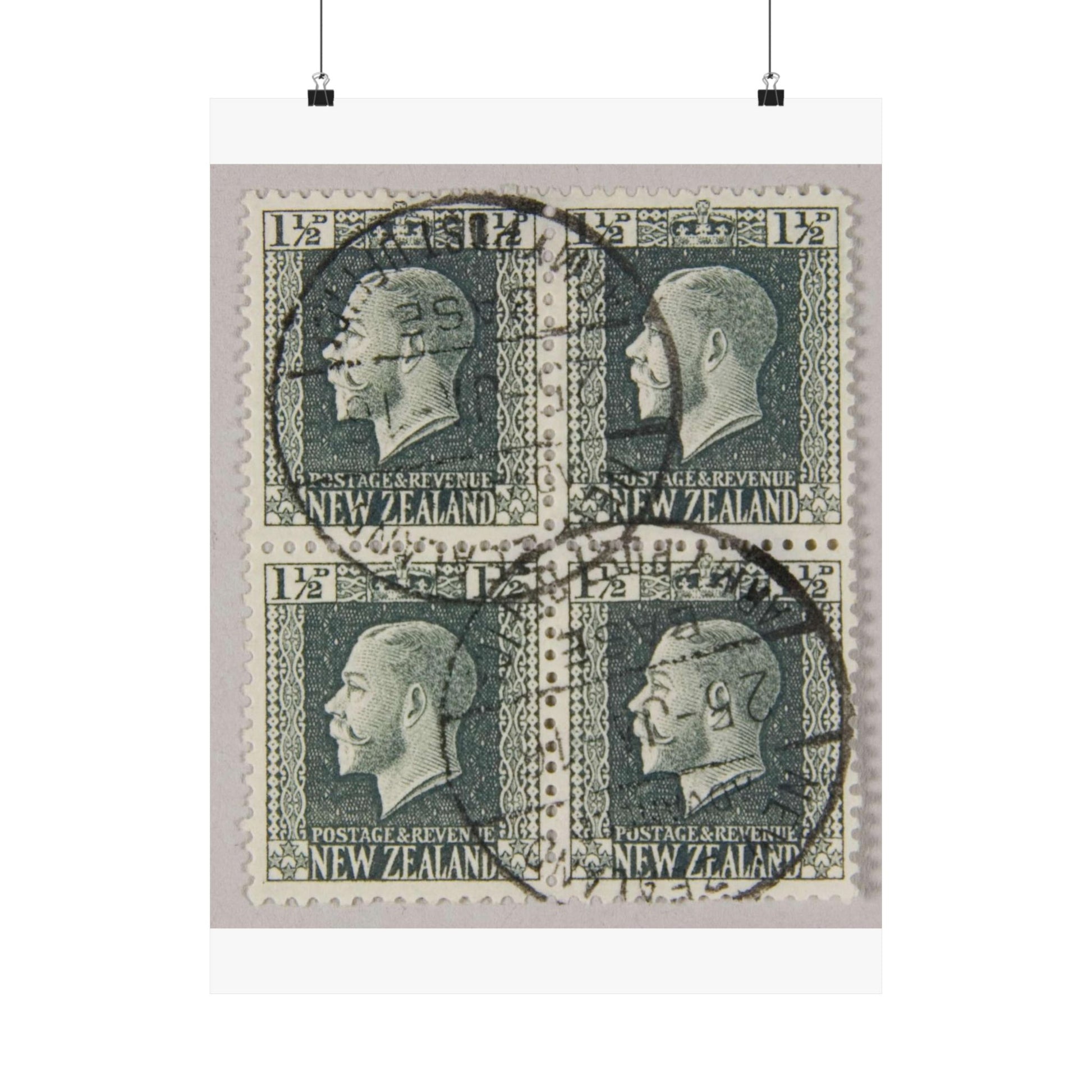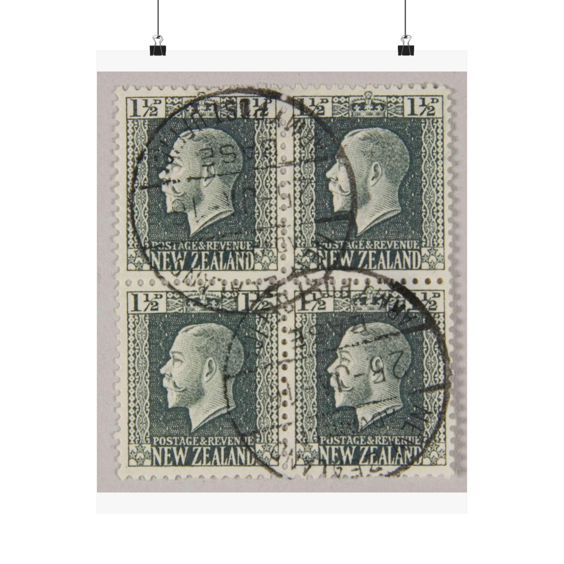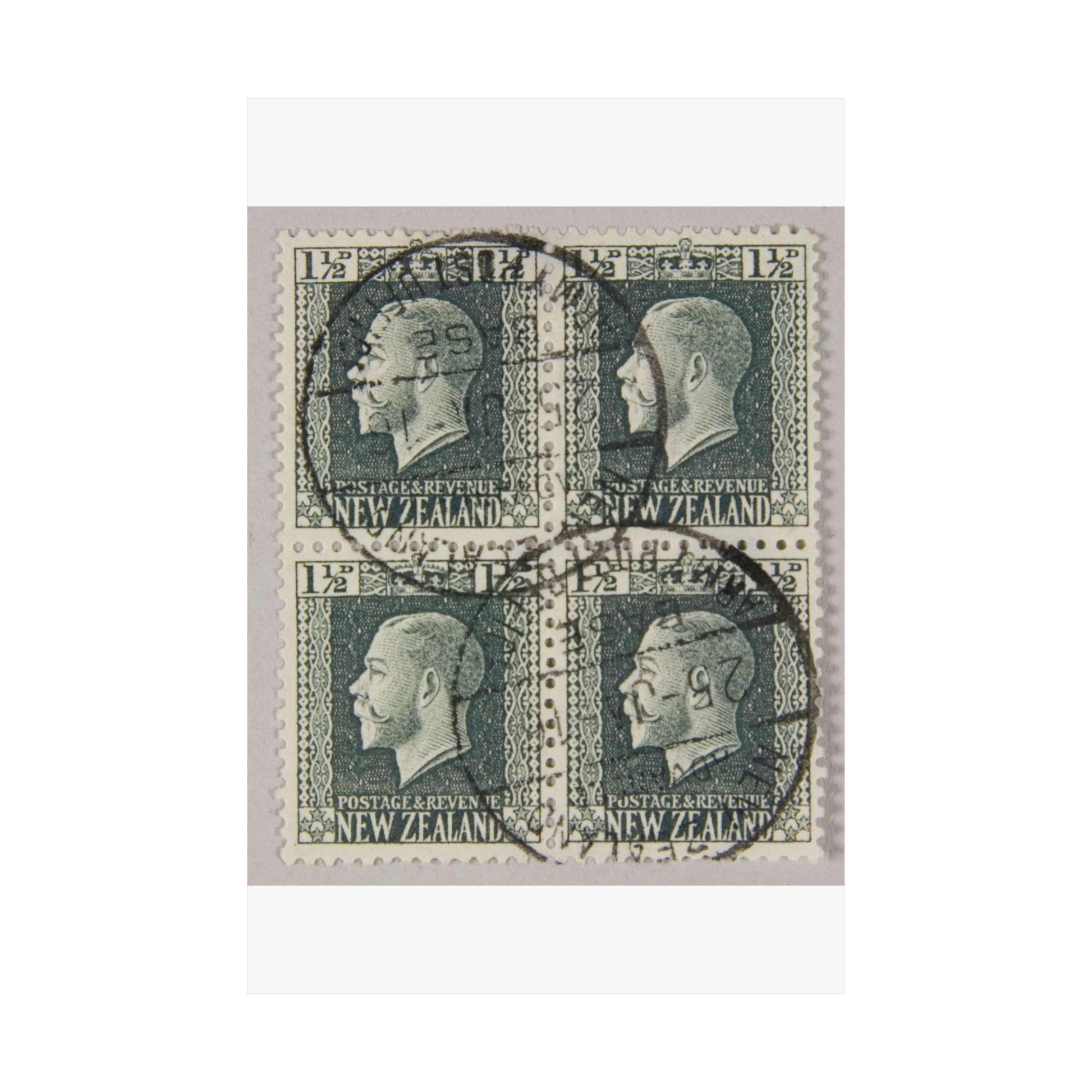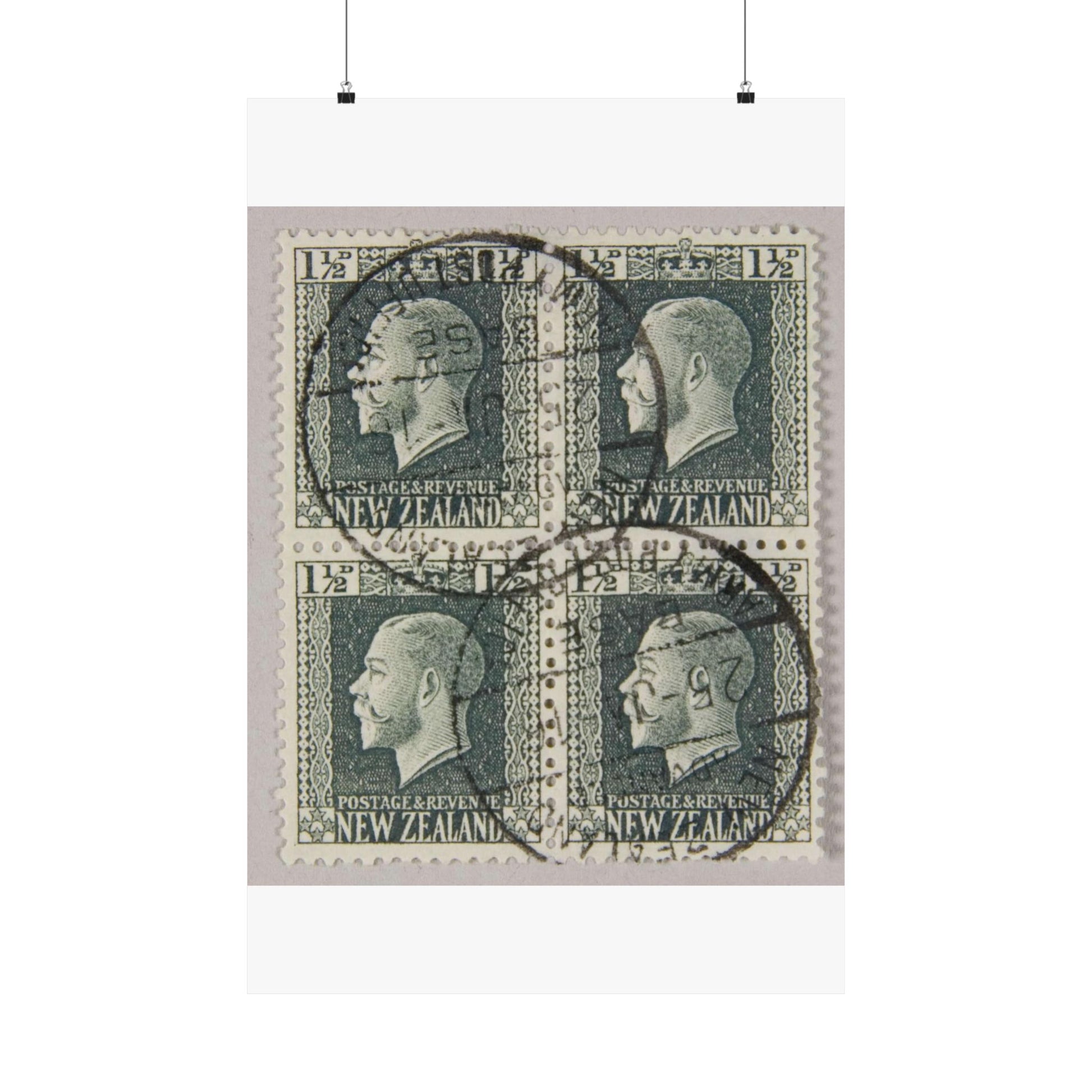 Block of one and a half penny 'King George V' definitive stamps in grey slate High Quality Matte Wall Art Poster for Home, Office, Classroom