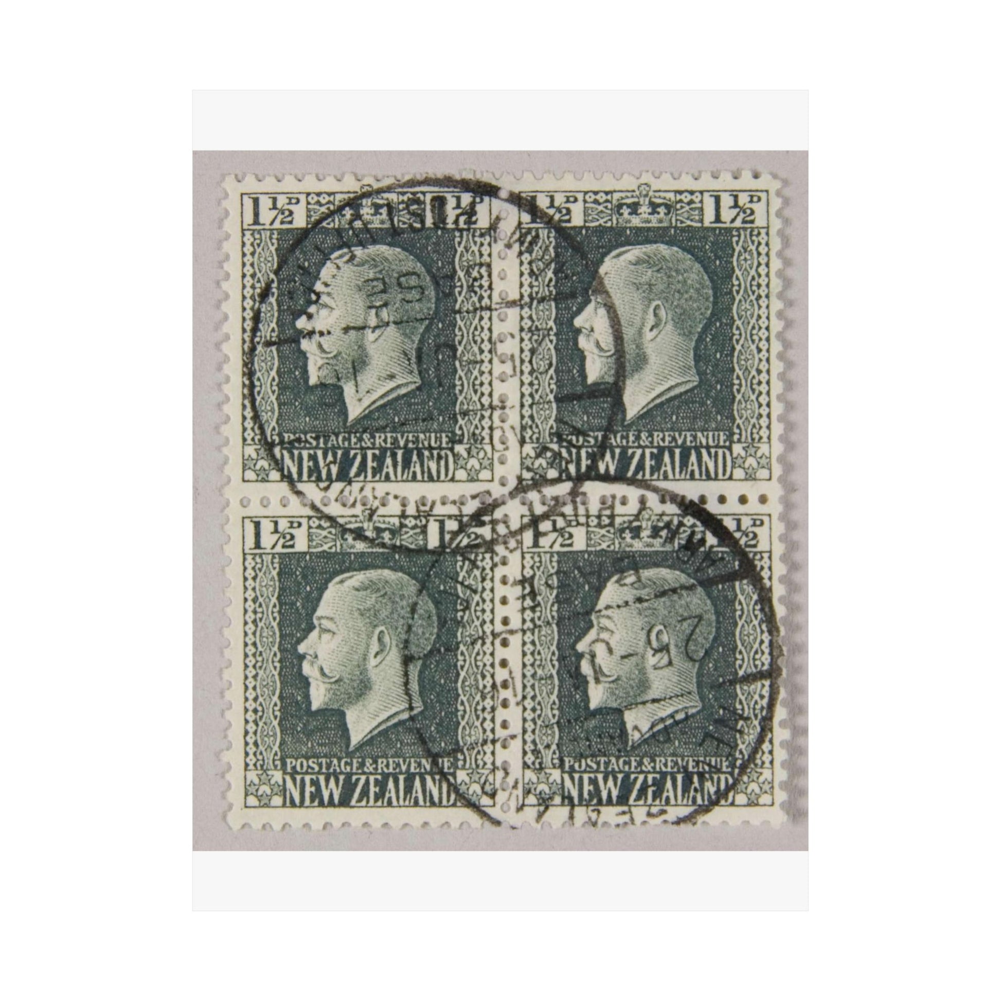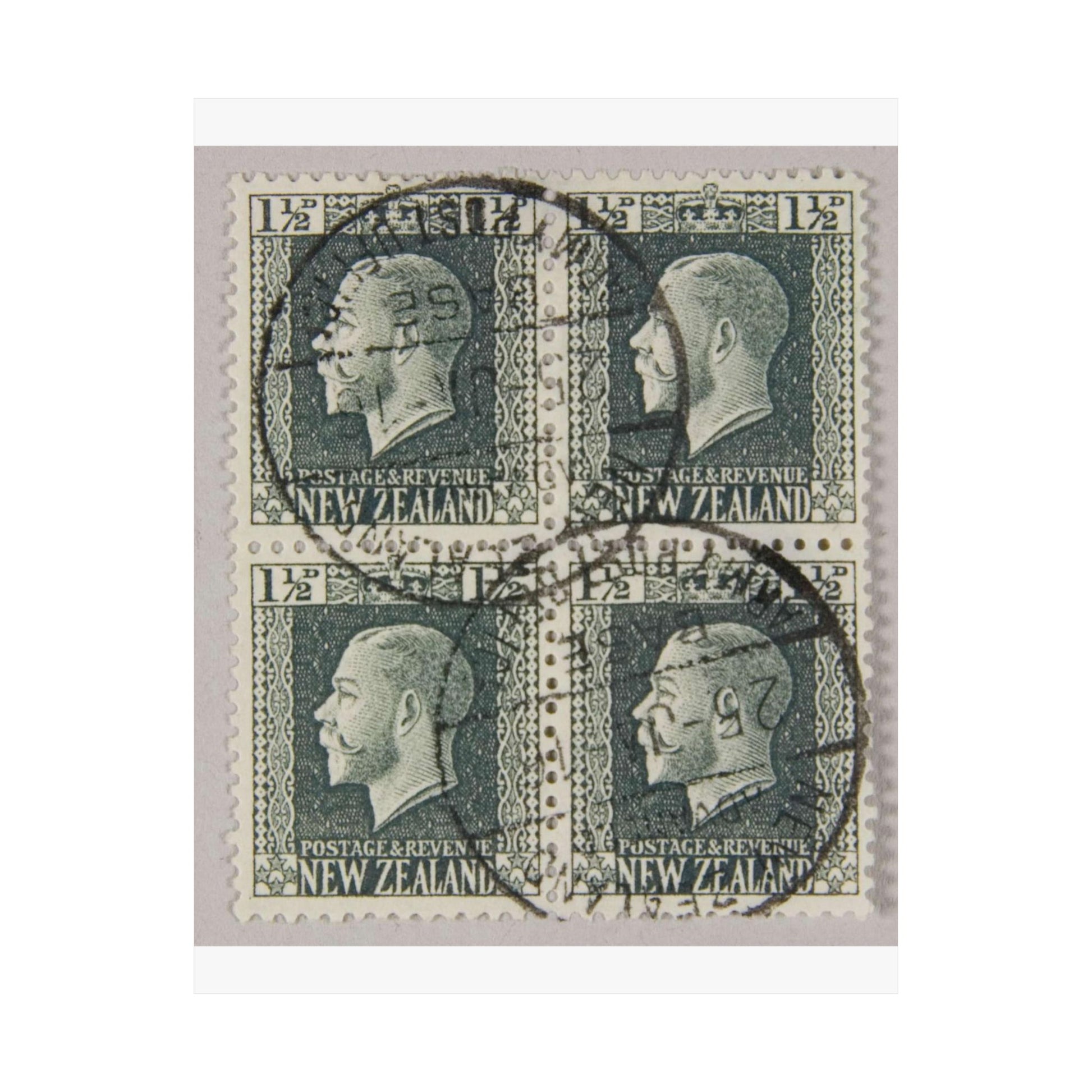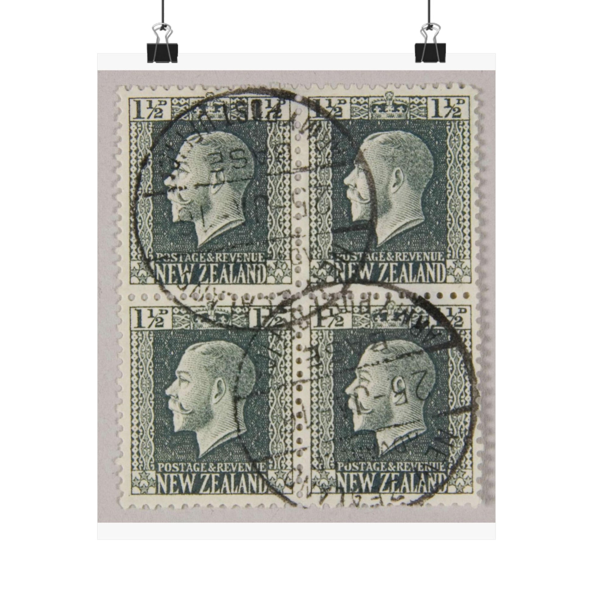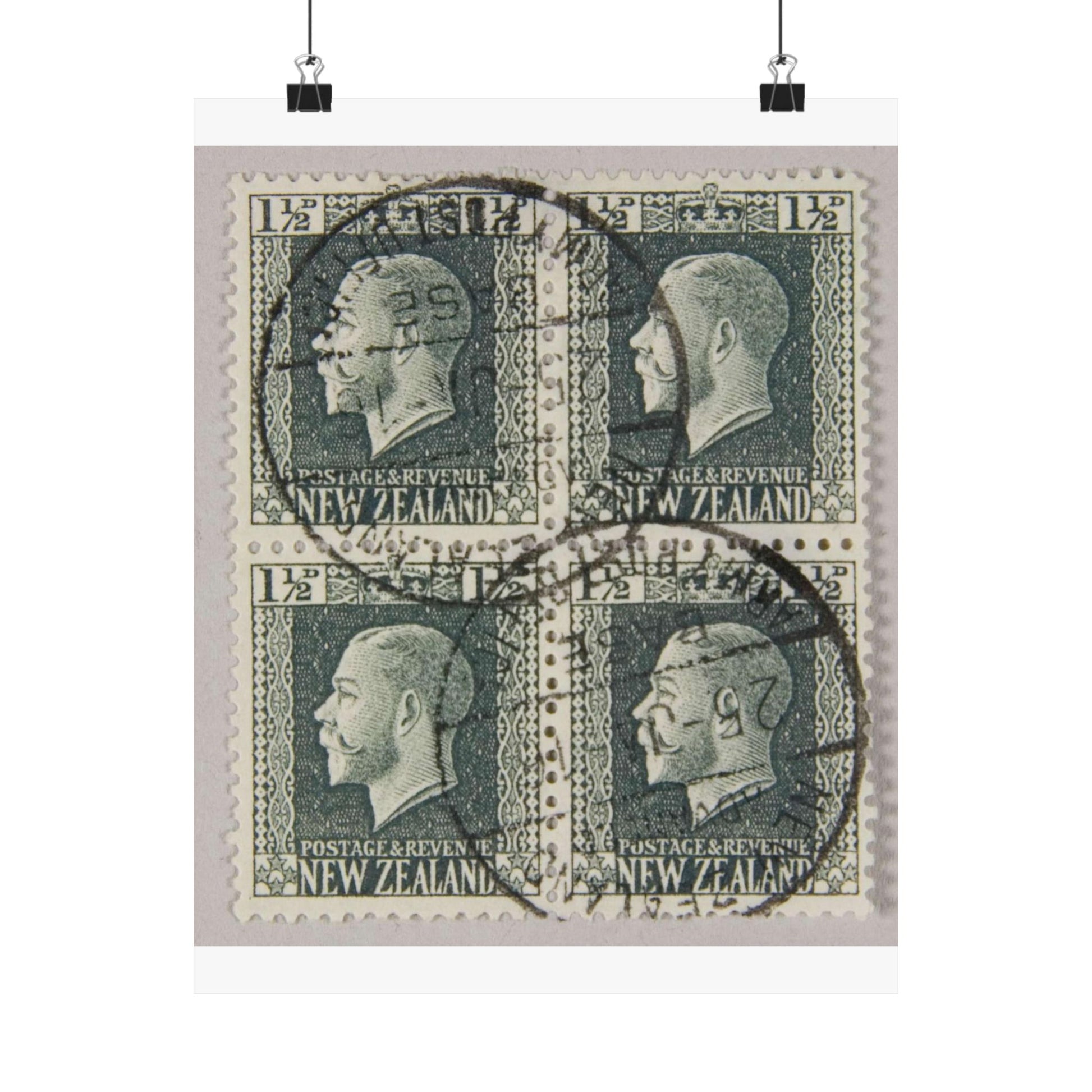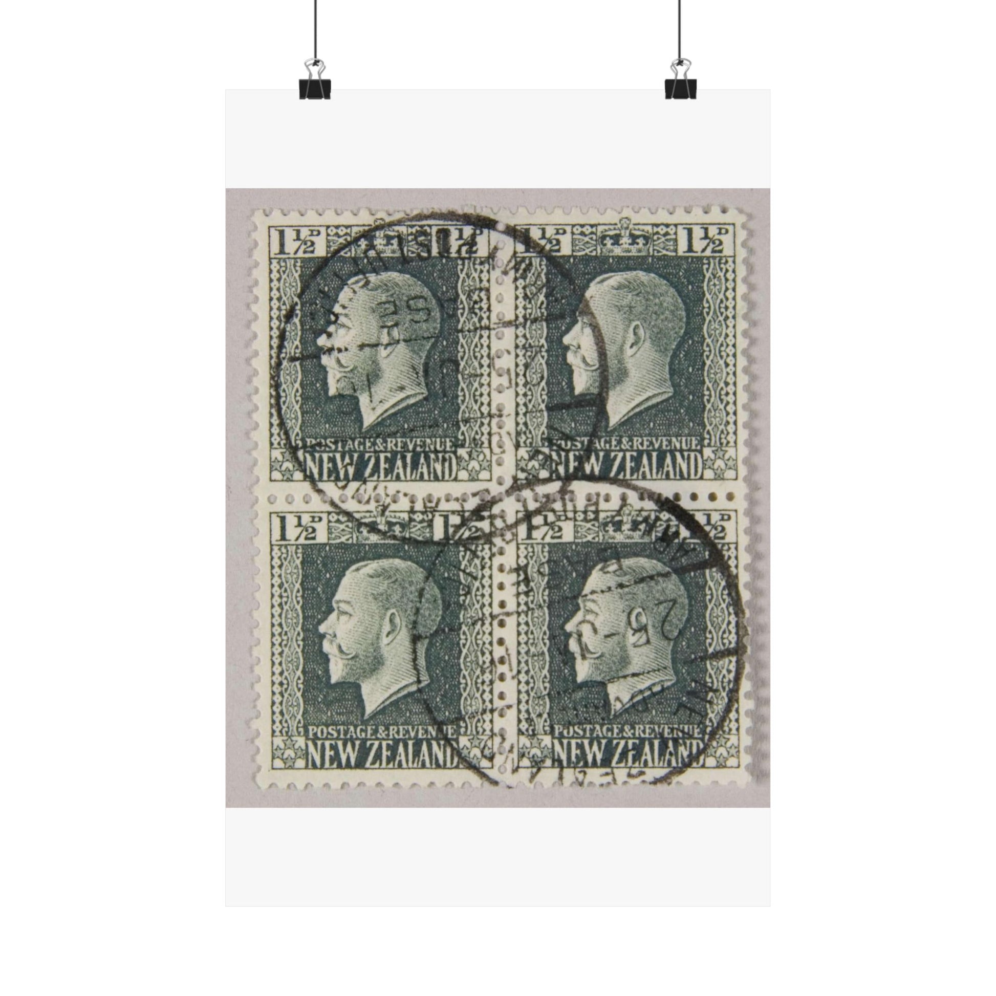 Block of one and a half penny 'King George V' definitive stamps in grey slate High Quality Matte Wall Art Poster for Home, Office, Classroom