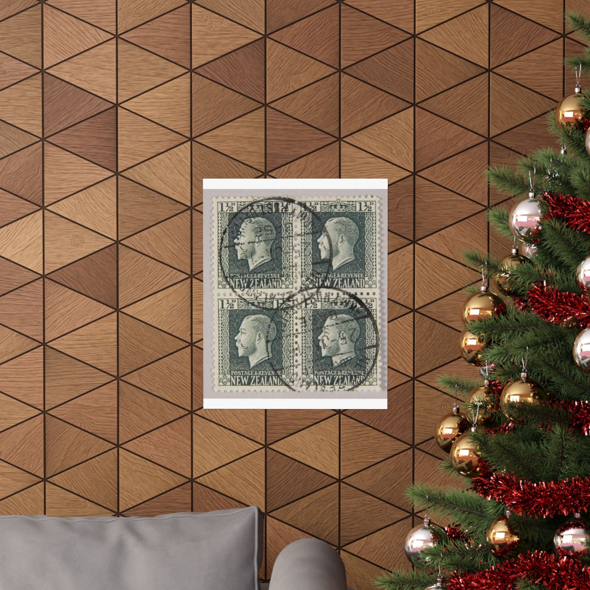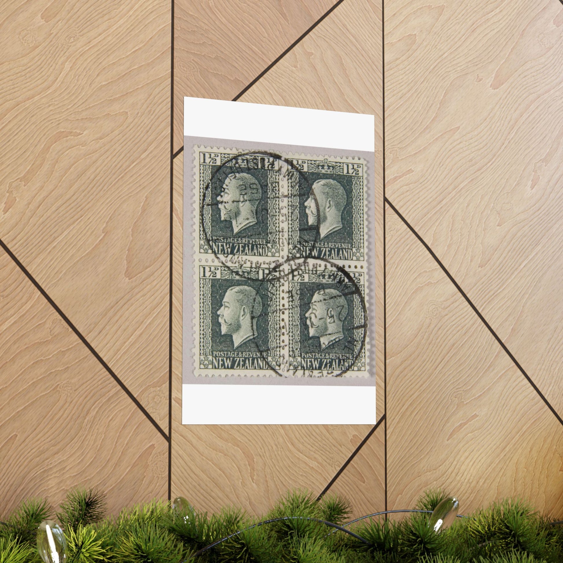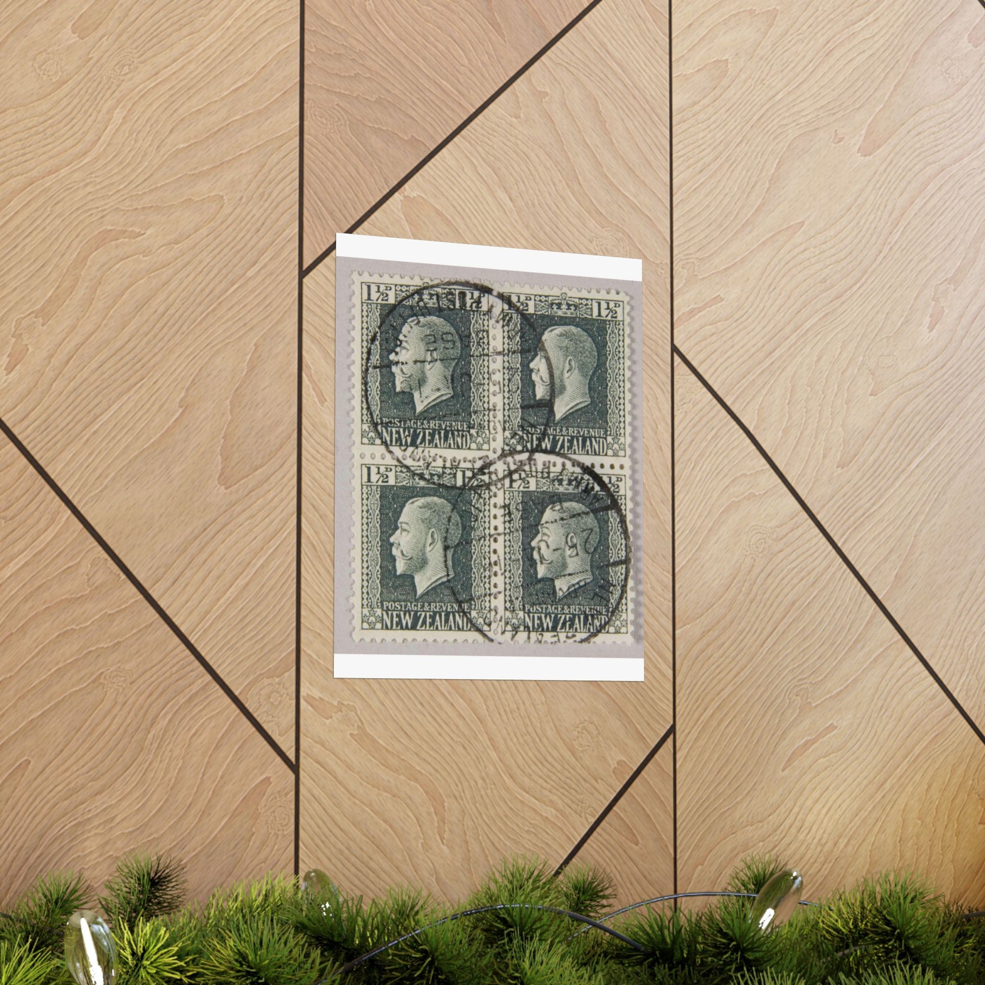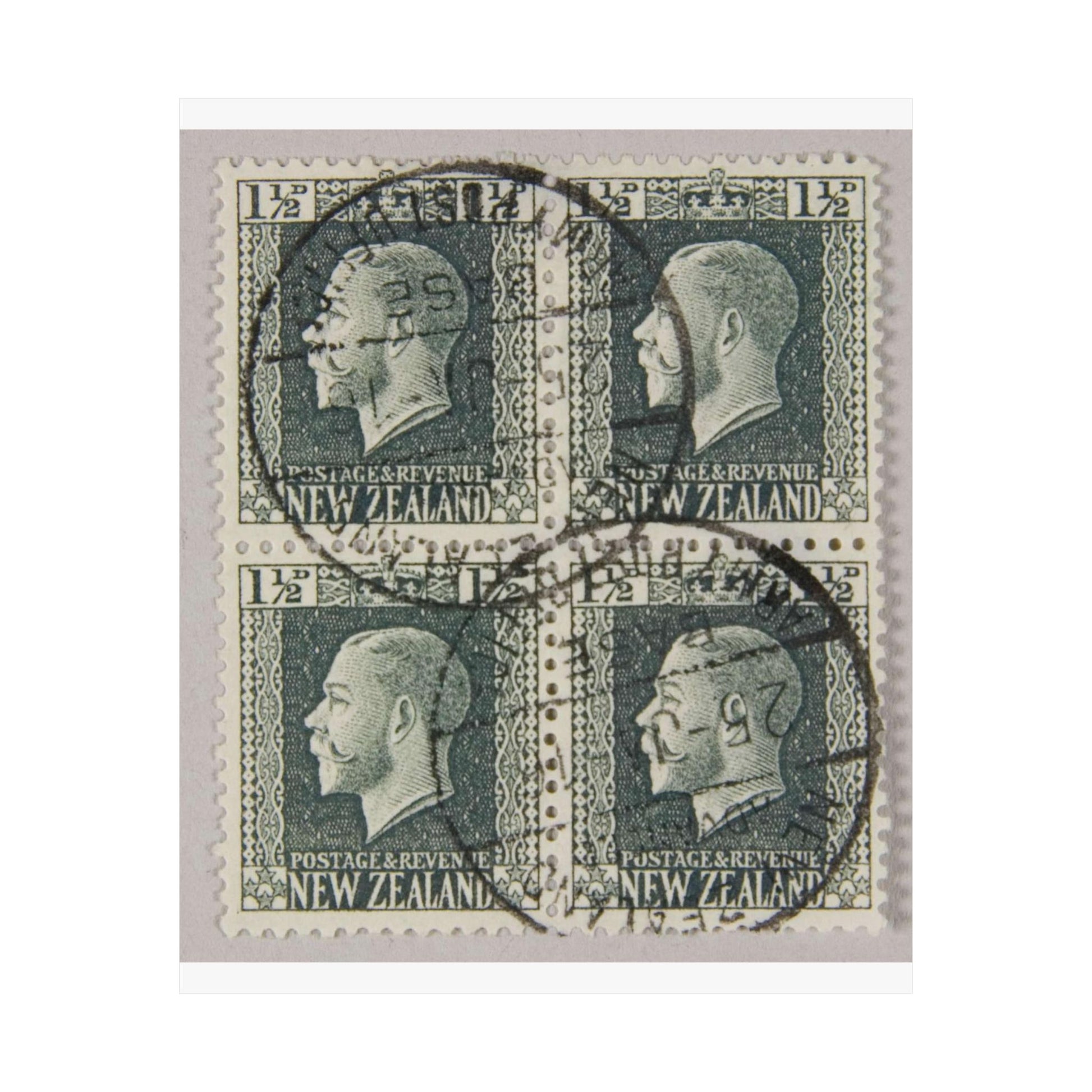 Block of one and a half penny 'King George V' definitive stamps in grey slate High Quality Matte Wall Art Poster for Home, Office, Classroom