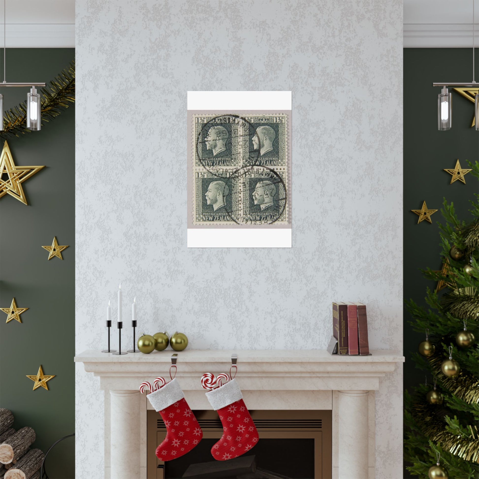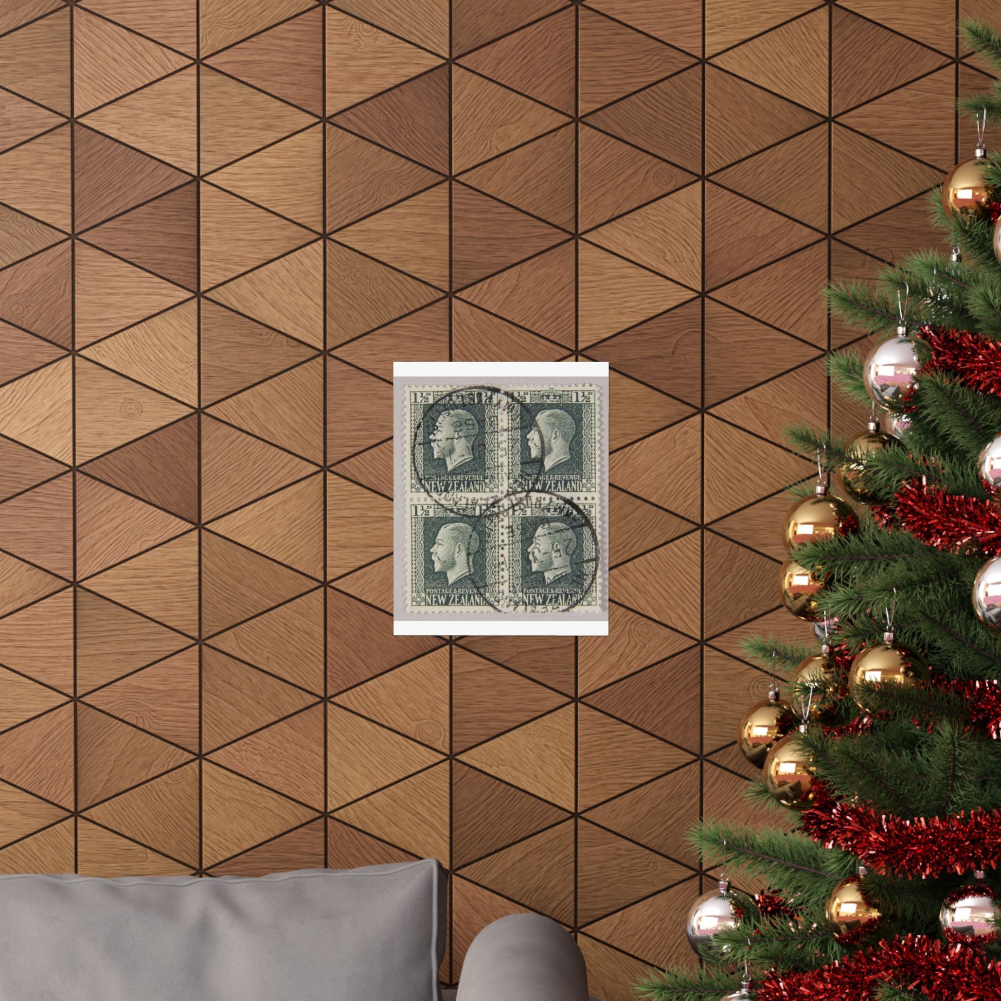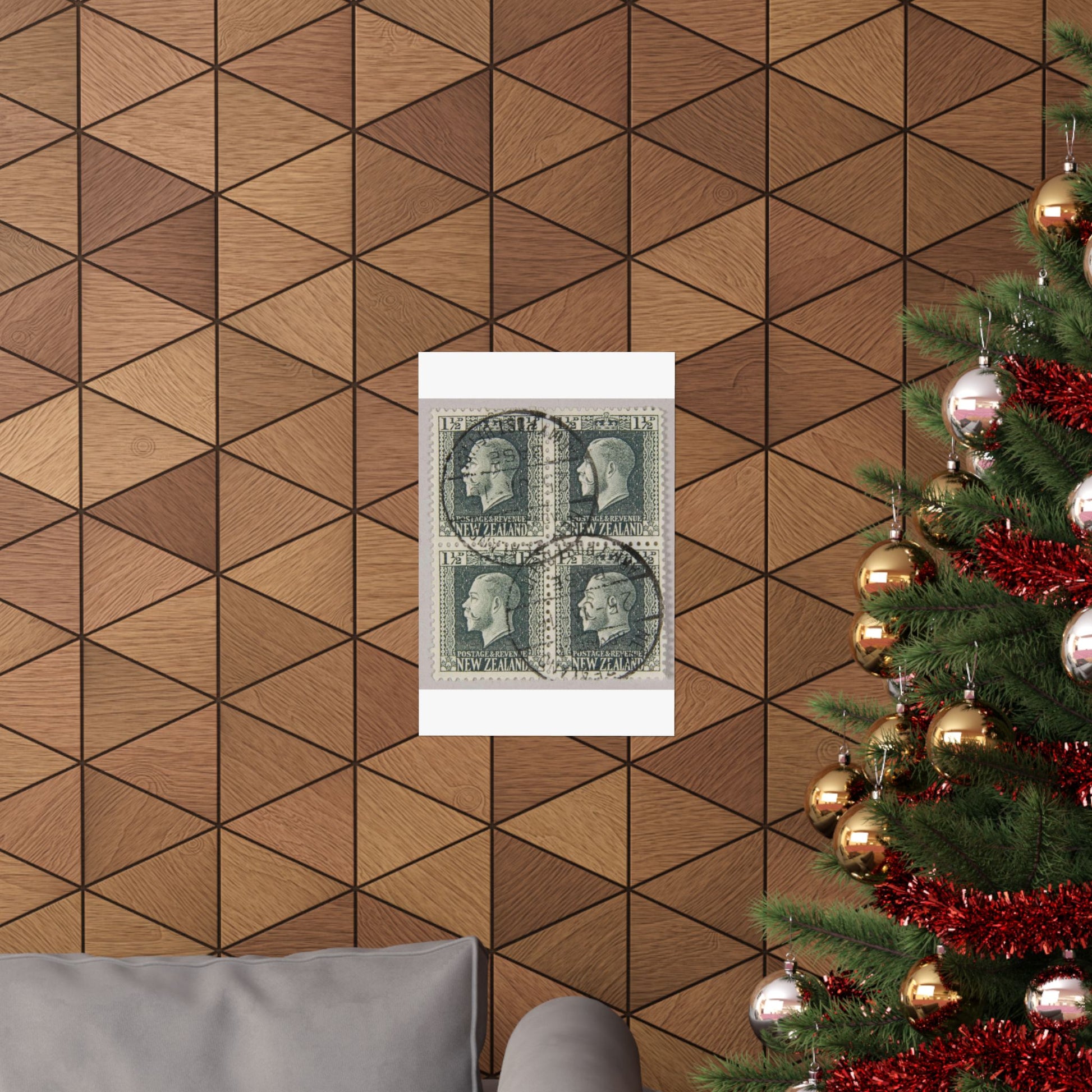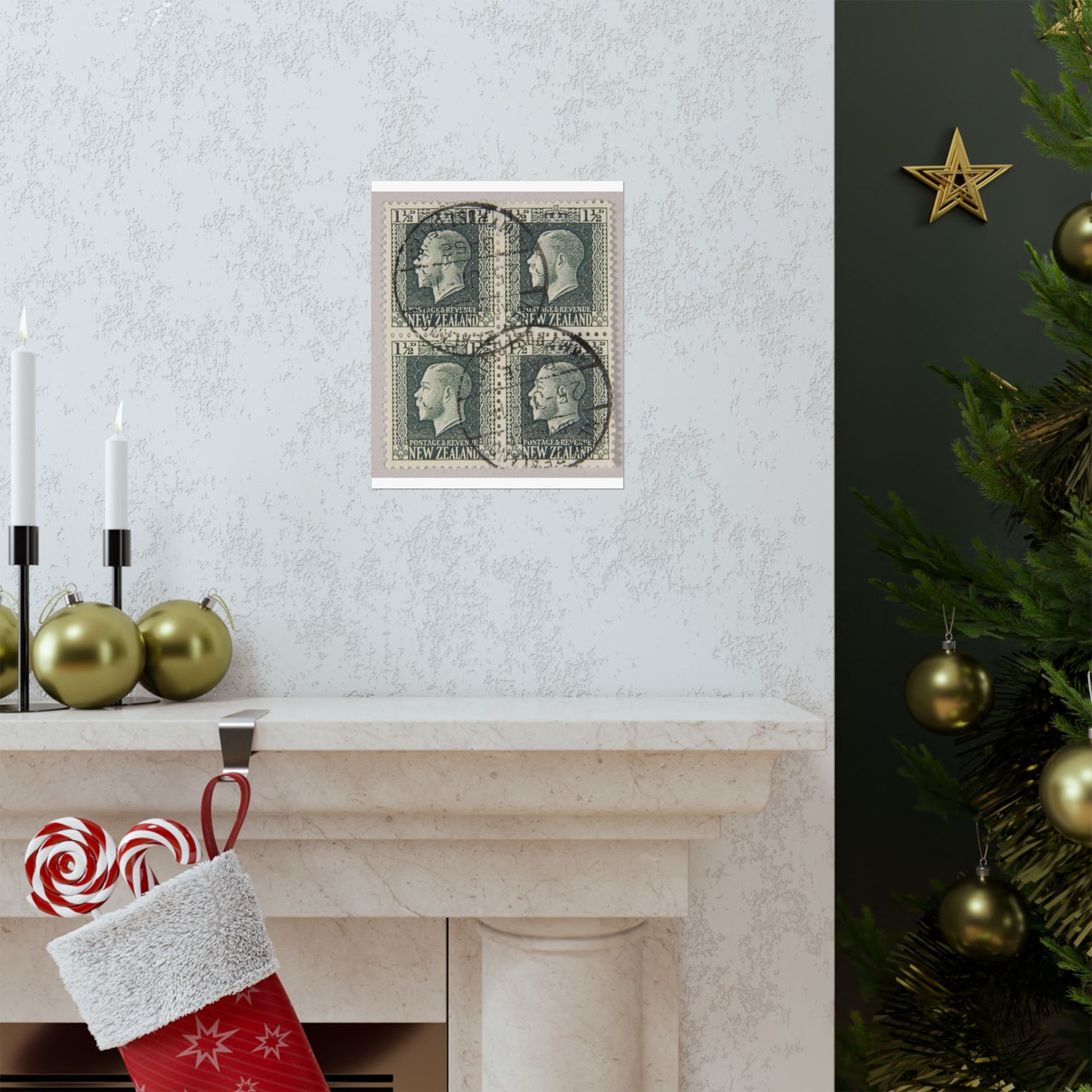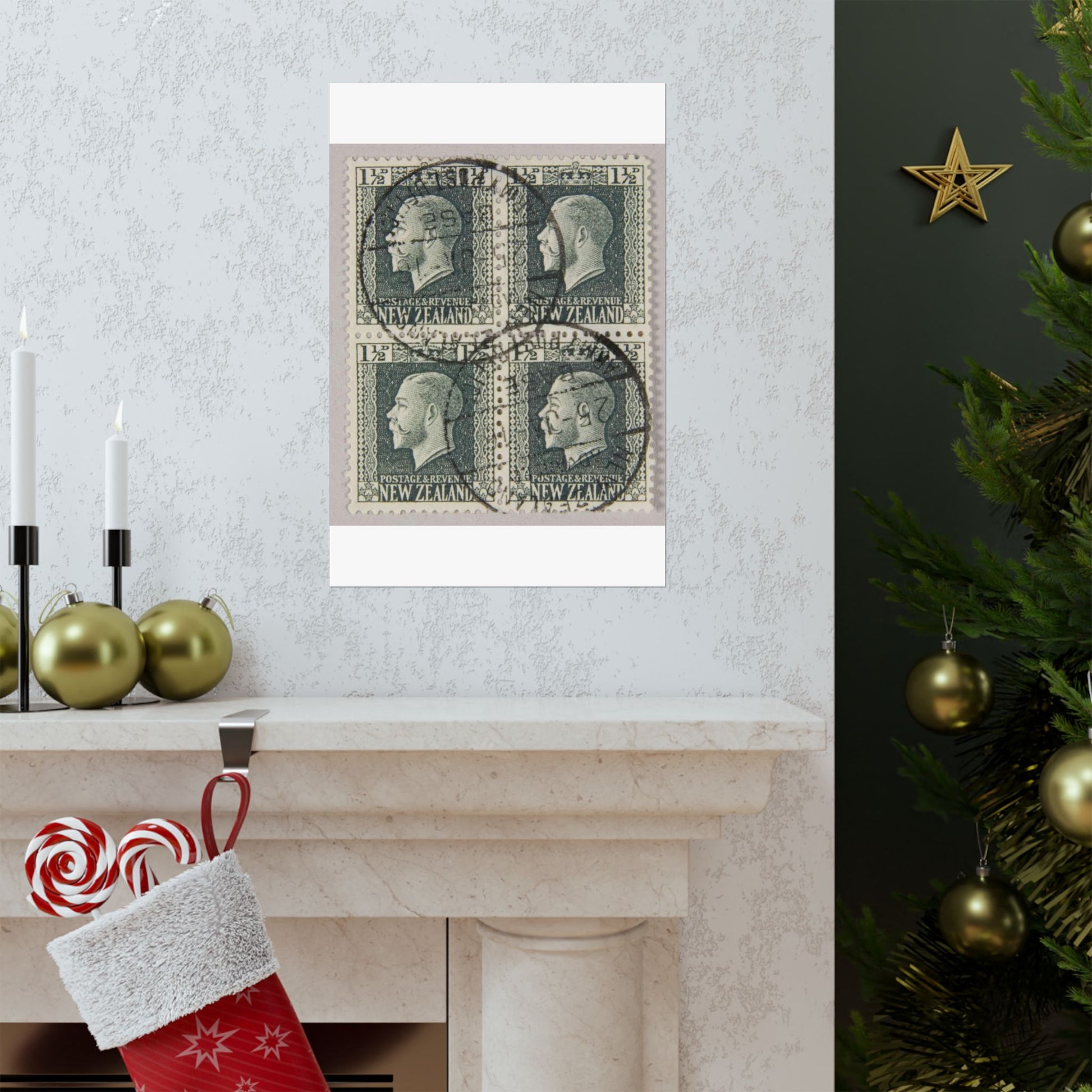 Block of one and a half penny 'King George V' definitive stamps in grey slate High Quality Matte Wall Art Poster for Home, Office, Classroom