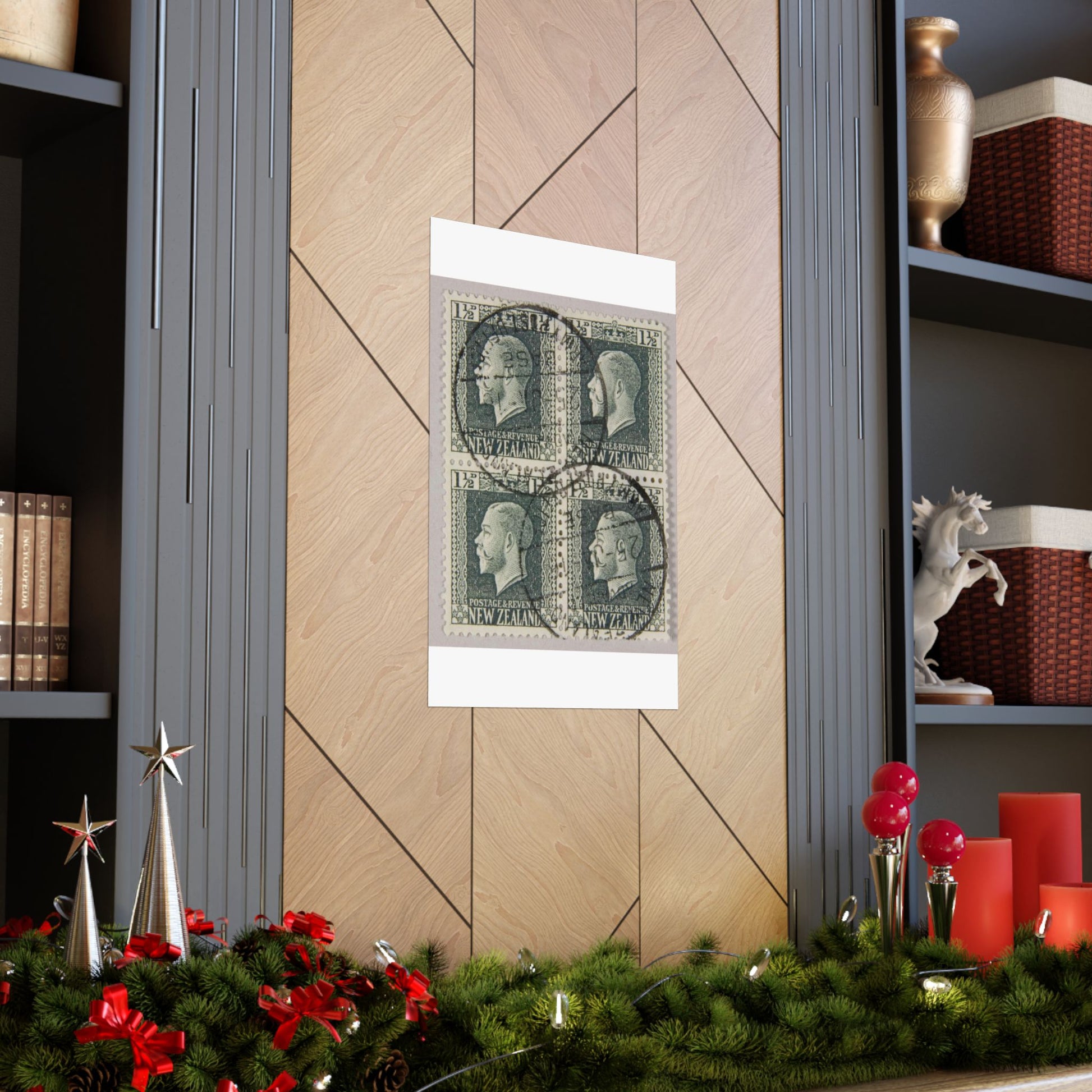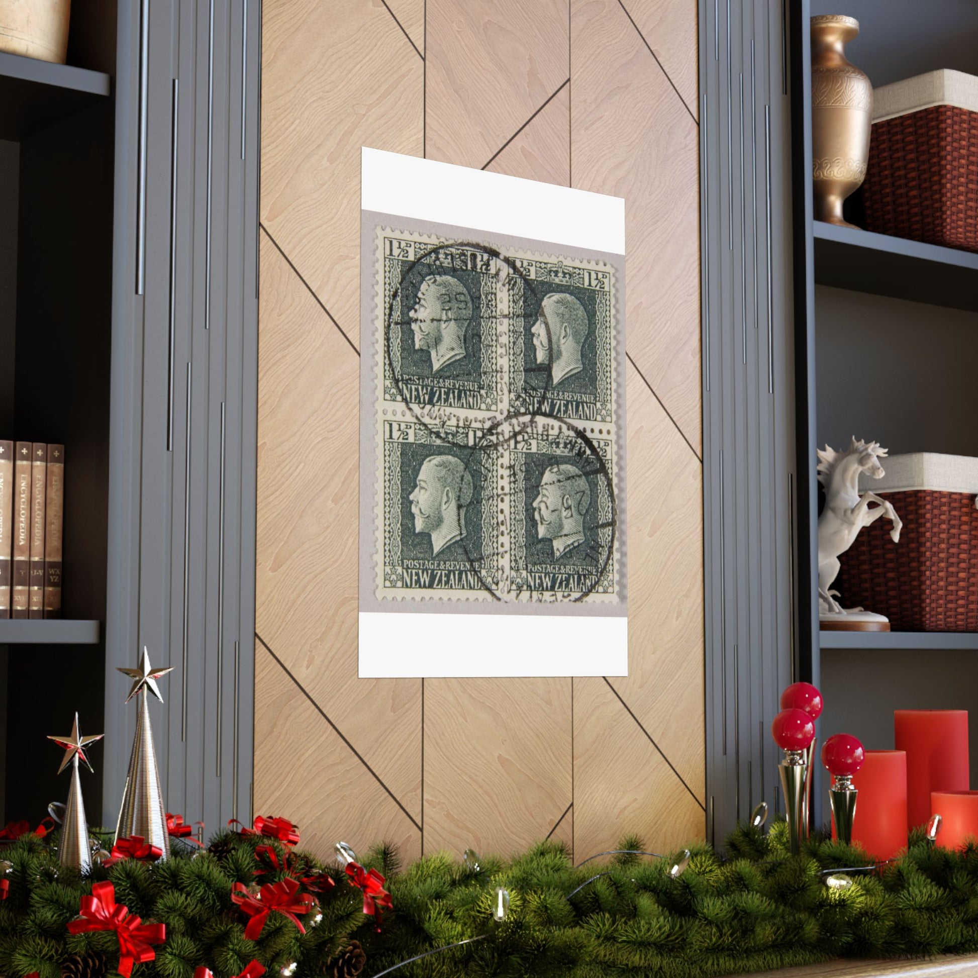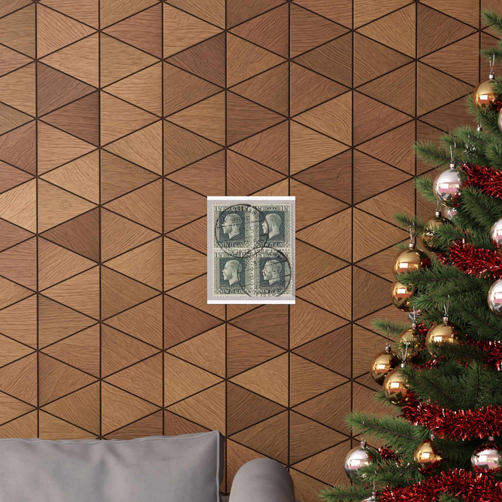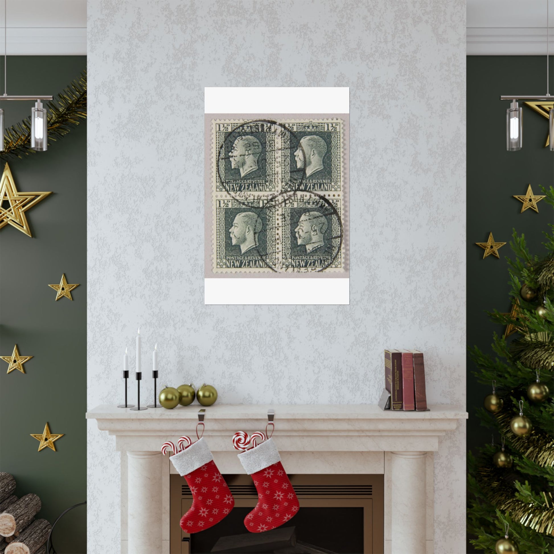 Block of one and a half penny 'King George V' definitive stamps in grey slate High Quality Matte Wall Art Poster for Home, Office, Classroom