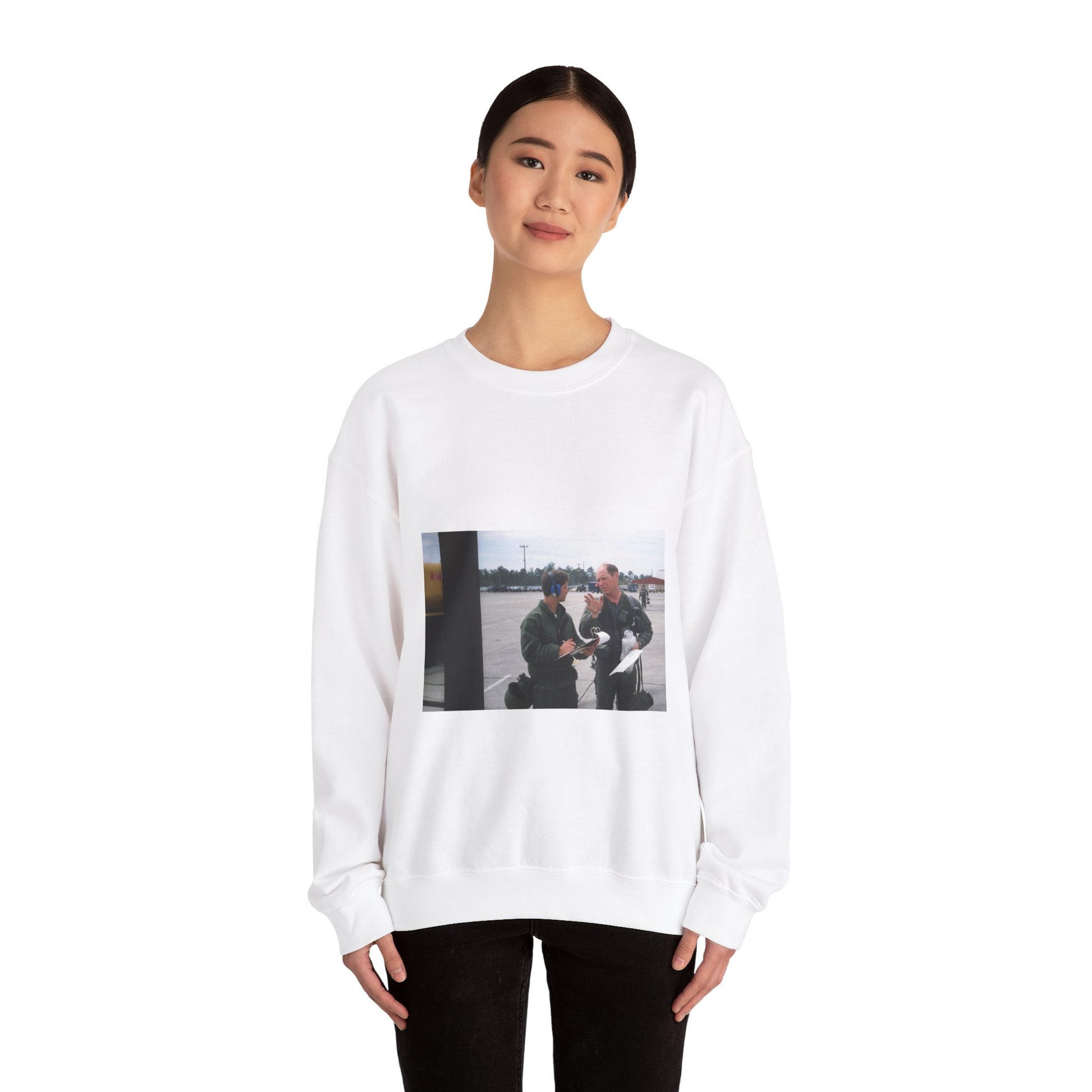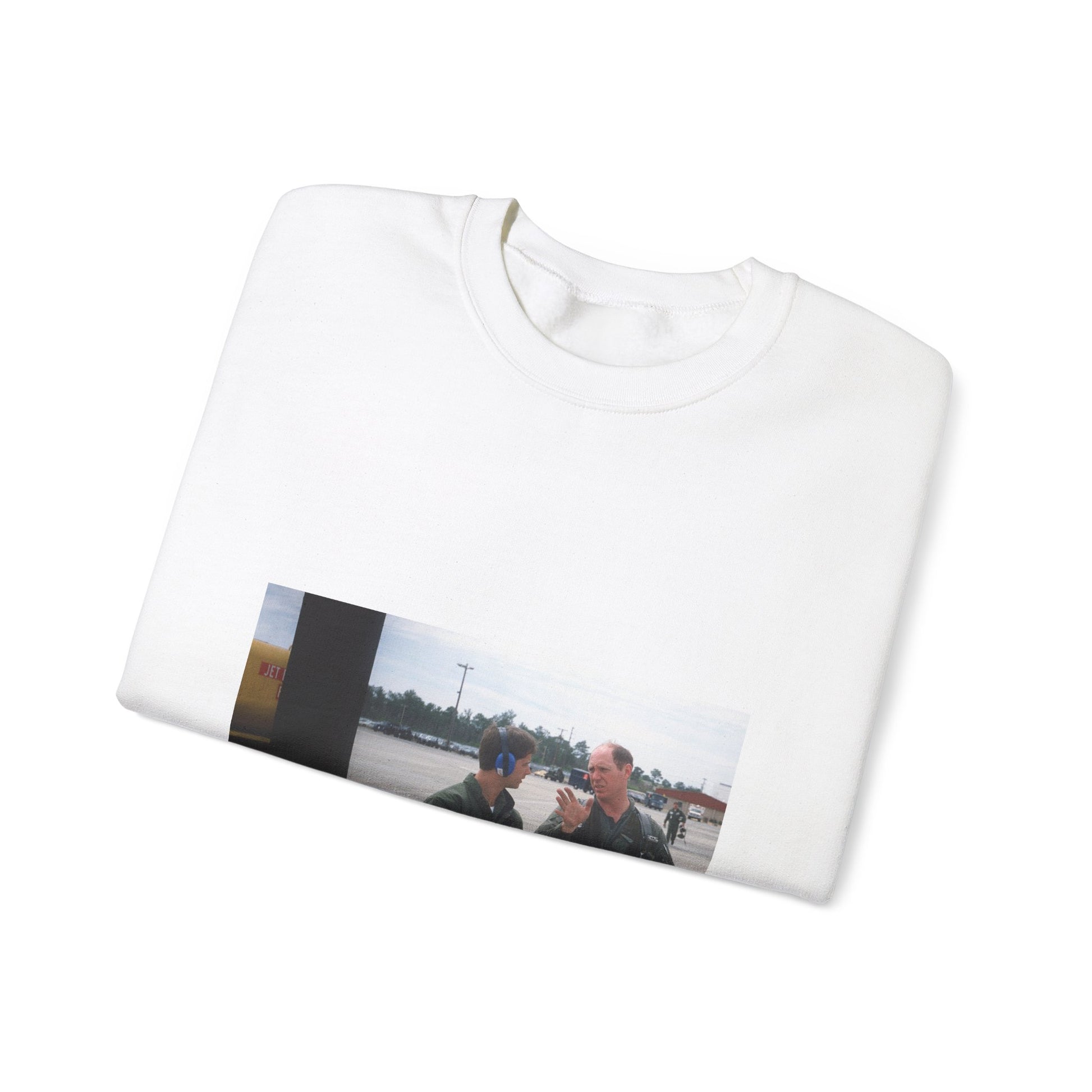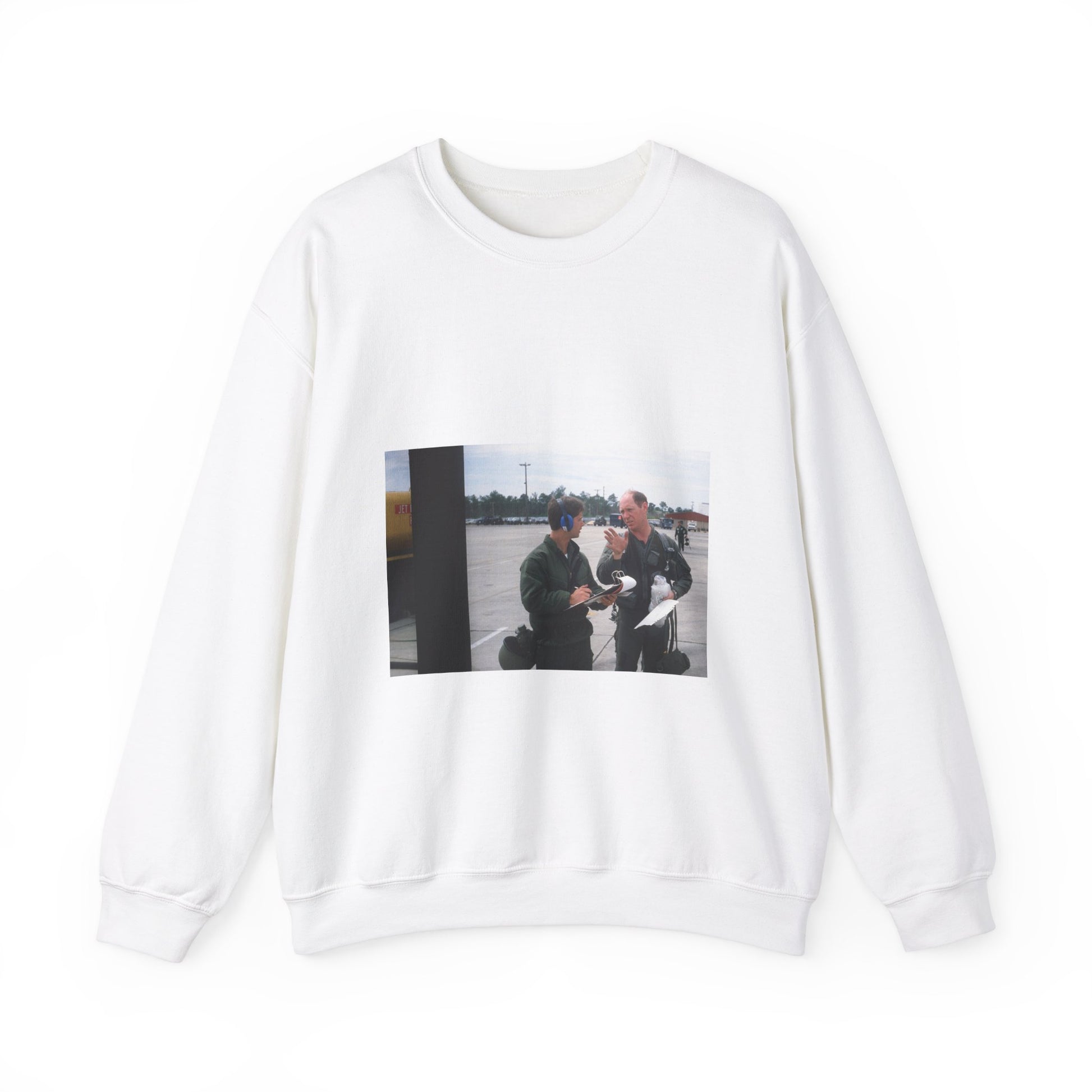 Colonel Tom Barber (right), director of operations, 33rd Tactical Fighter Wing (33rd TFW) is debriefed by First Lieutenant Robert M. Haire (left), intelligence officer, 33rd TFW White Heavy Blend Adult Crew Neck SweatShirt
