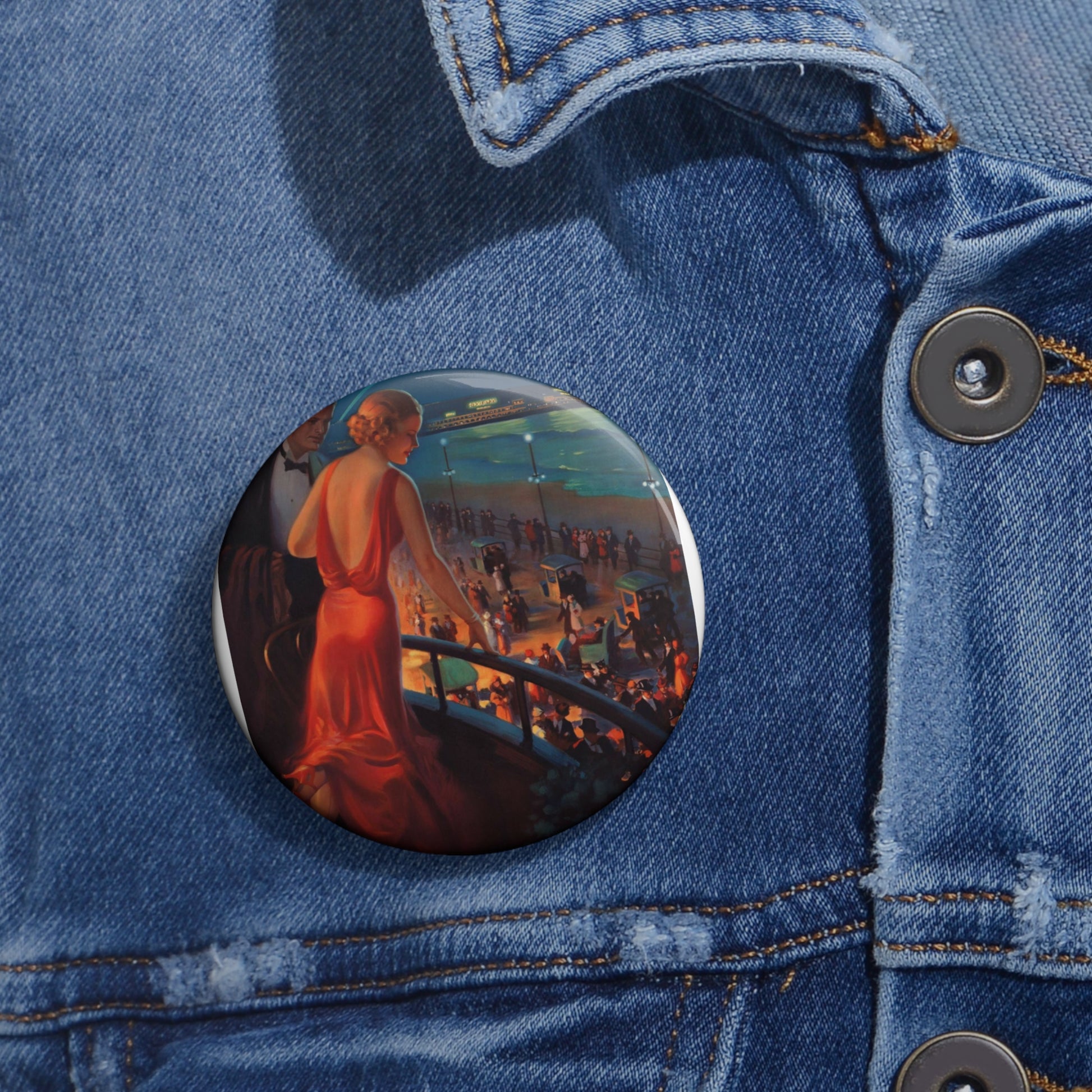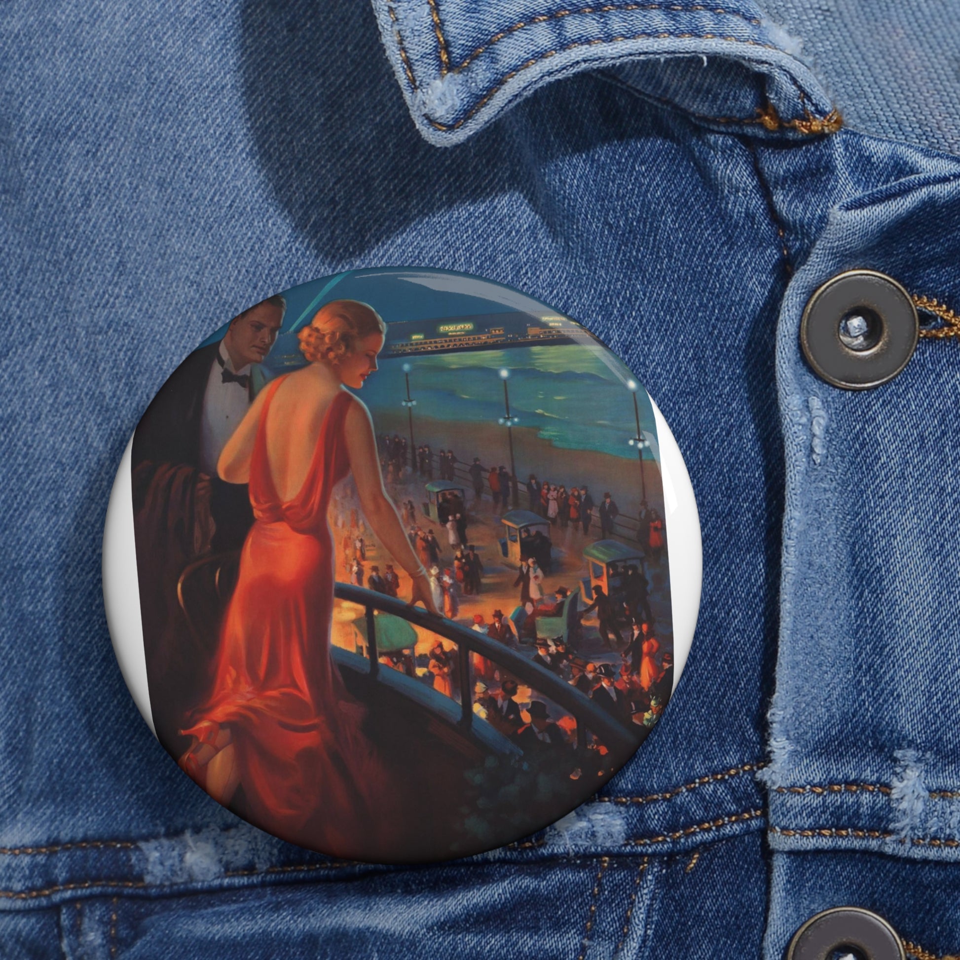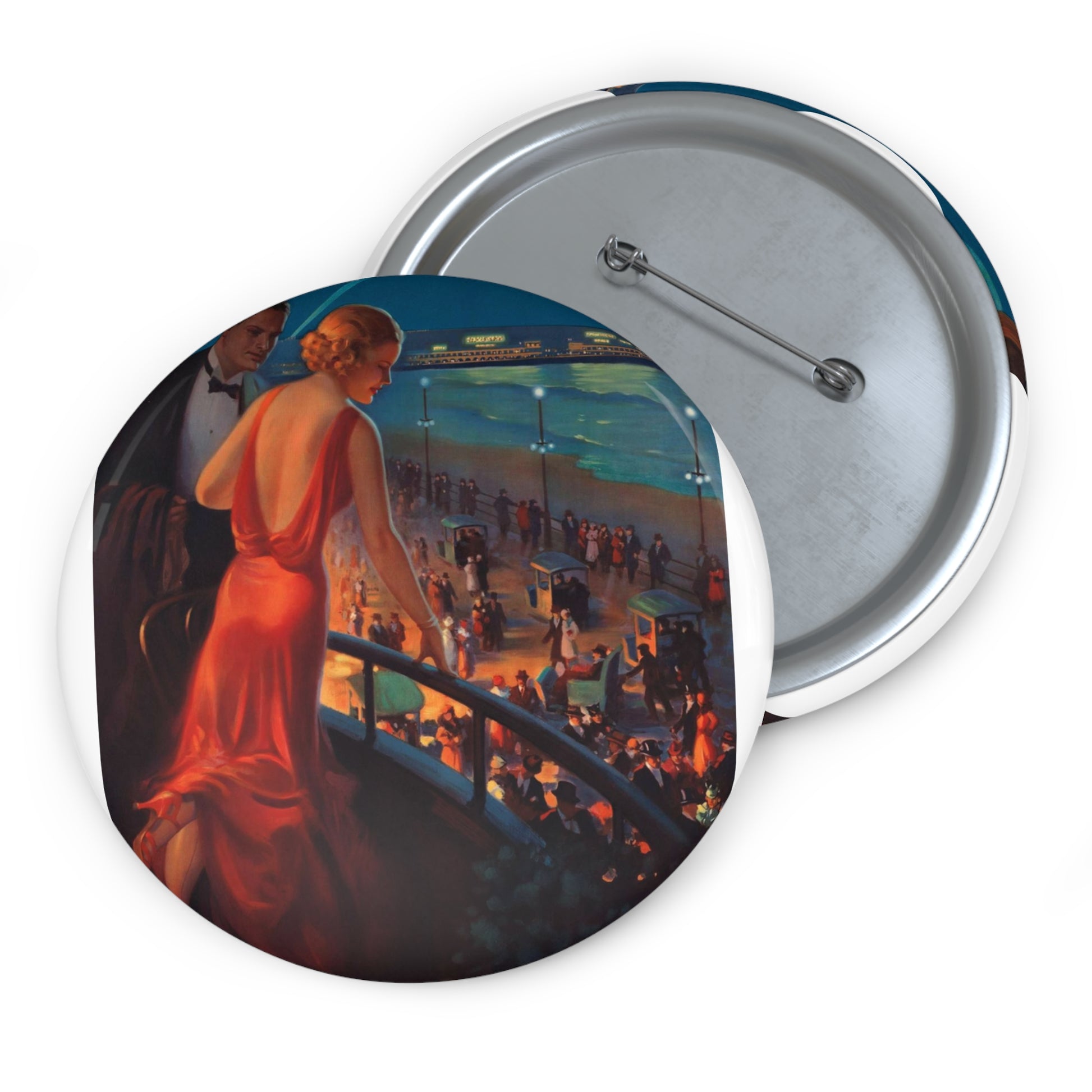 Detail, Atlantic City—America's Great All Year Resort, Pennsylvania Railroad, painting by Edward Mason Eggleston (cropped) Pin Buttons with Crisp Design