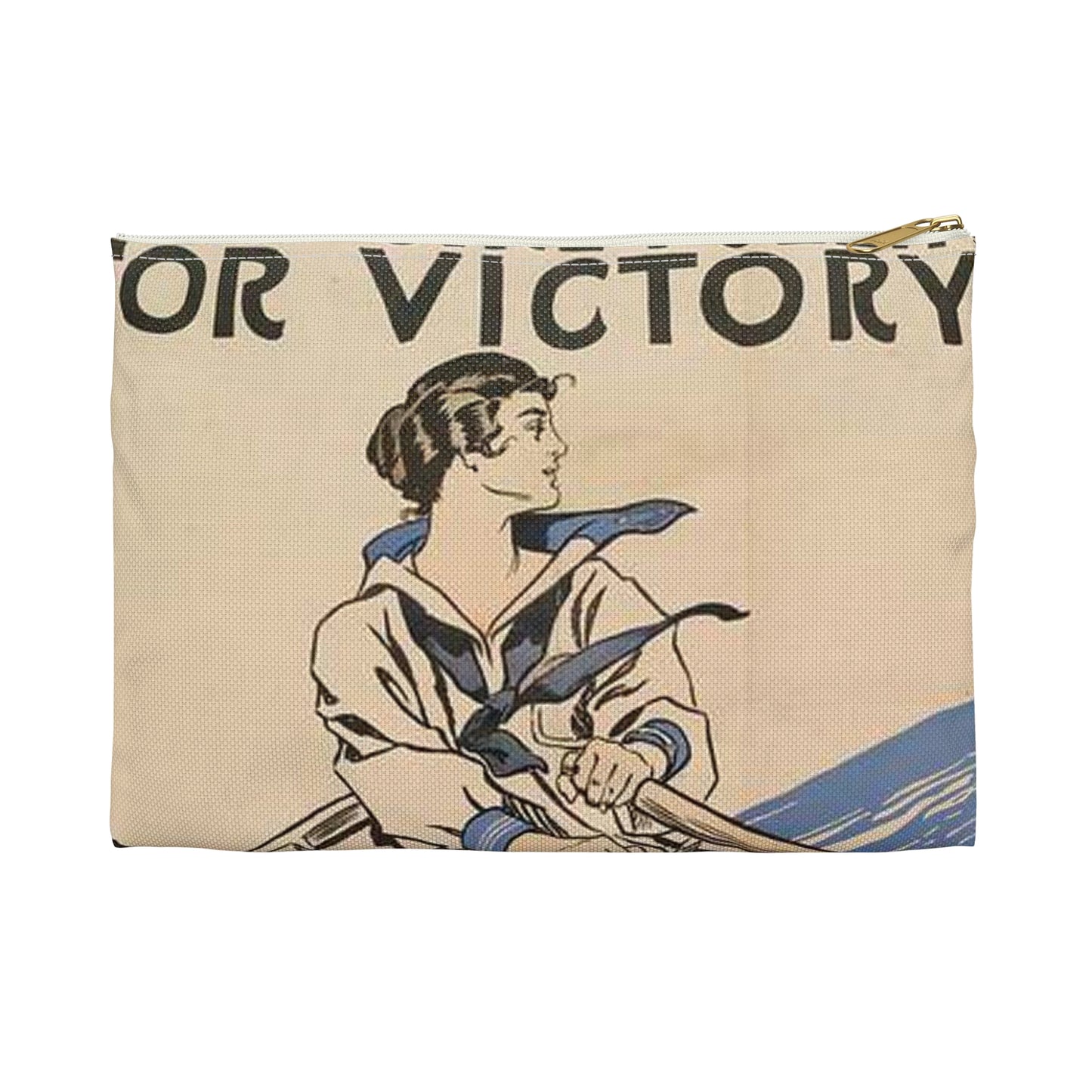 Every Girl Pulling for Victory, Victory Girls United War Work Campaign Large Organizer Pouch with Black Zipper