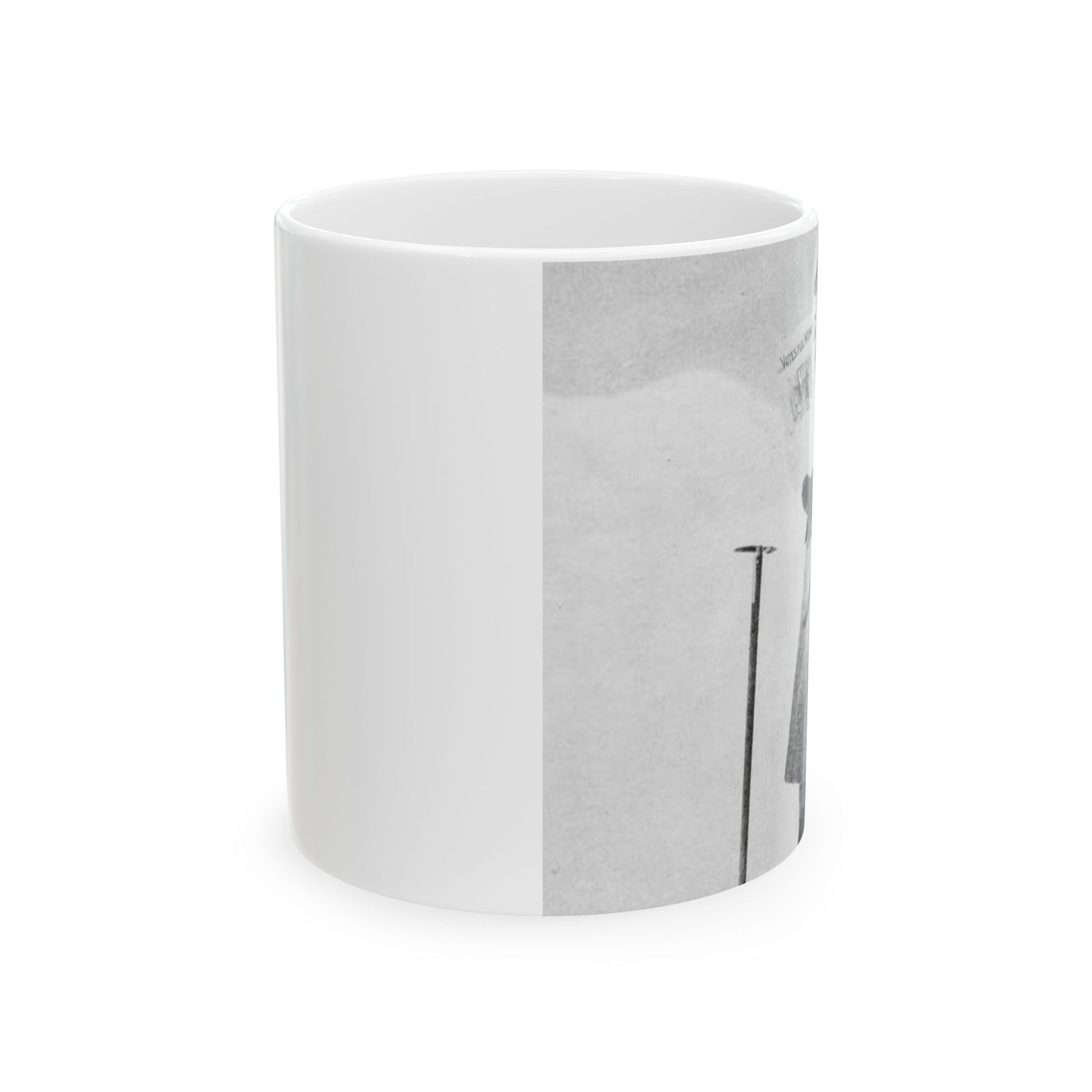 FannyBullockWorkmanVotesWomen - A woman standing in the snow holding a sign Beautiful Novelty Ceramic Coffee Mug 11oz