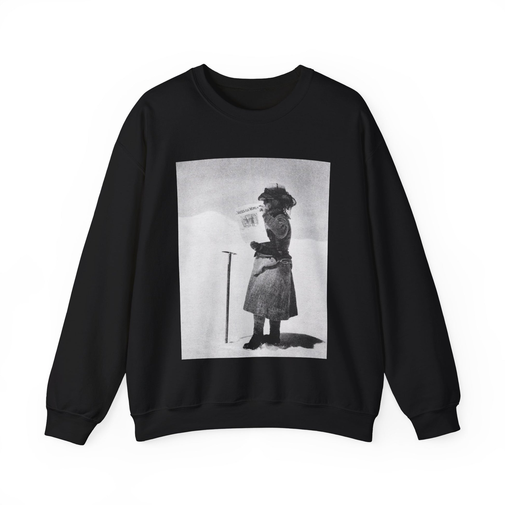 FannyBullockWorkmanVotesWomen - A woman standing in the snow holding a sign Black Heavy Blend Adult Crew Neck SweatShirt