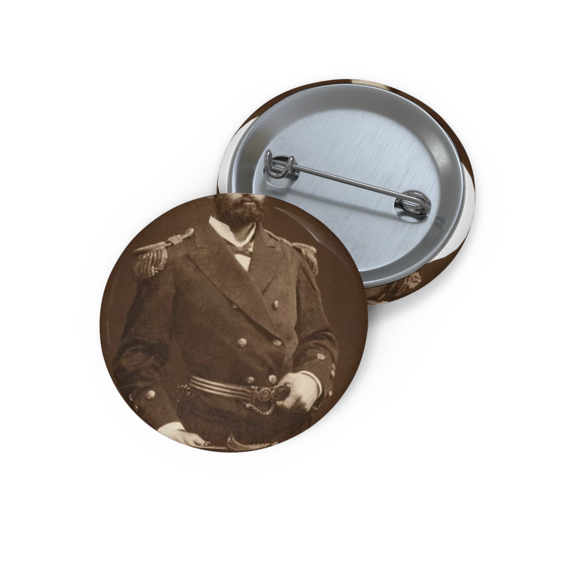 Foto A.Prat - A black and white photo of a man in uniform Pin Buttons with Crisp Design