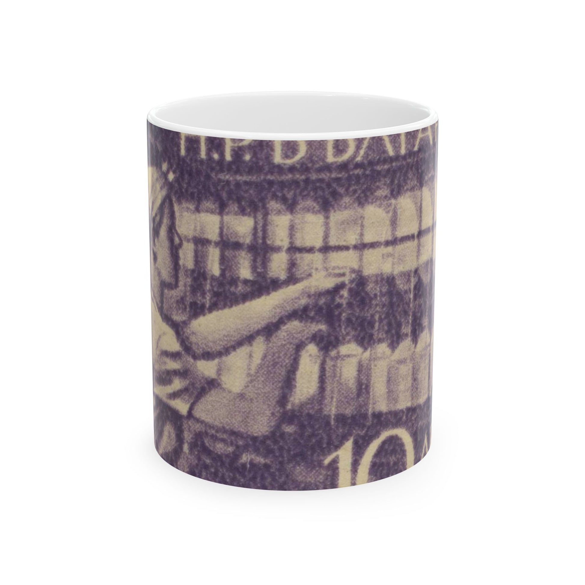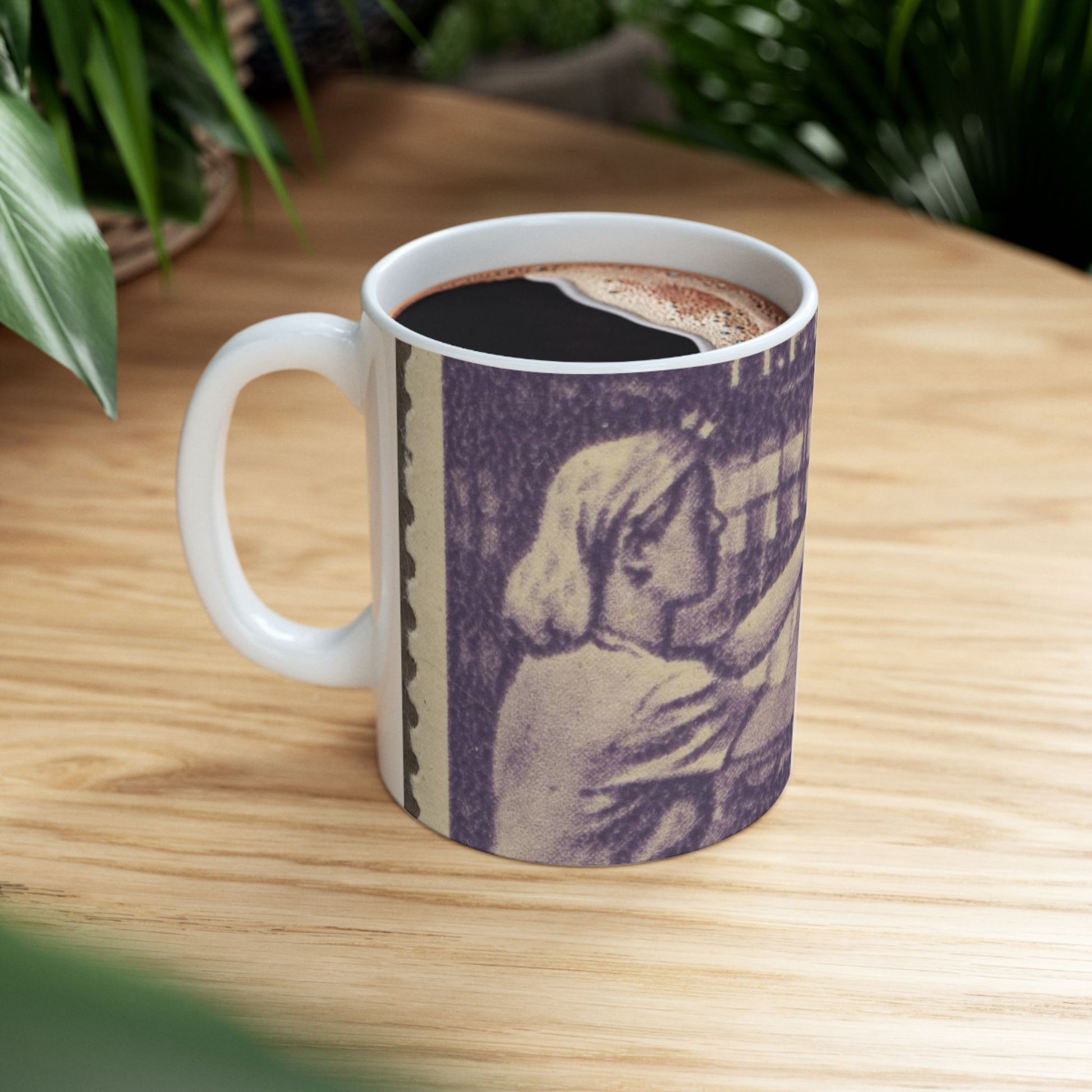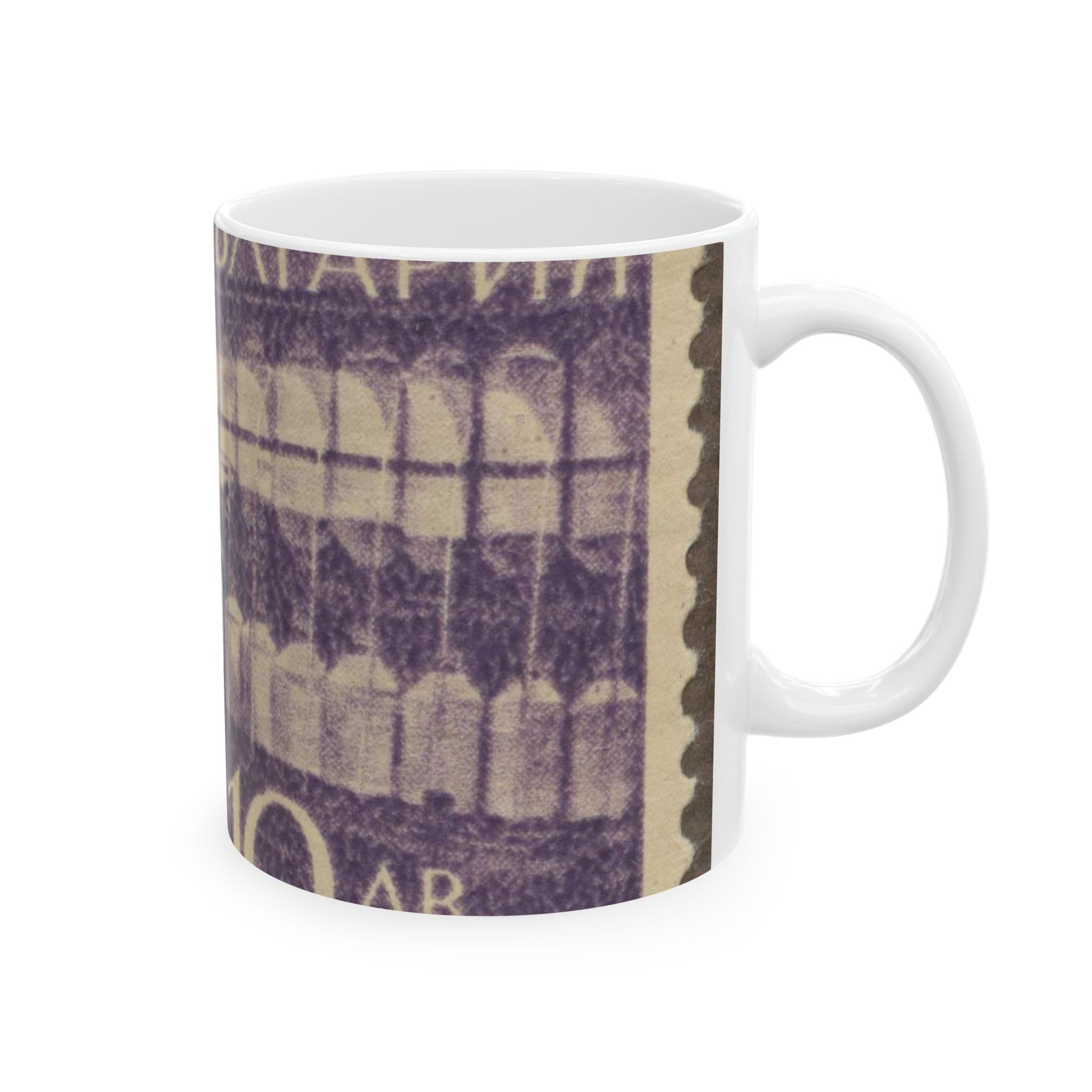 Frimärke ur Gösta Bodmans filatelistiska motivsamling, påbörjad 1950.Frimärke från Bulgarien, 1949. Motiv av textilarbetare vid spinnmaskin. "Serie: Honör för unga yrkesarbetare". Beautiful Novelty Ceramic Coffee Mug 11oz
