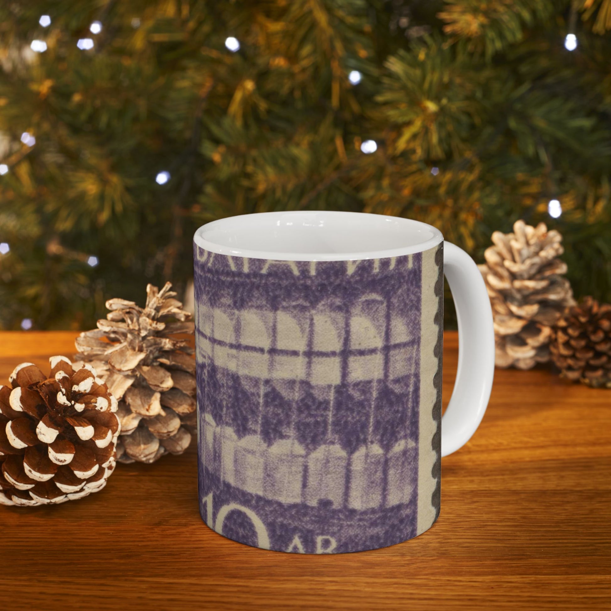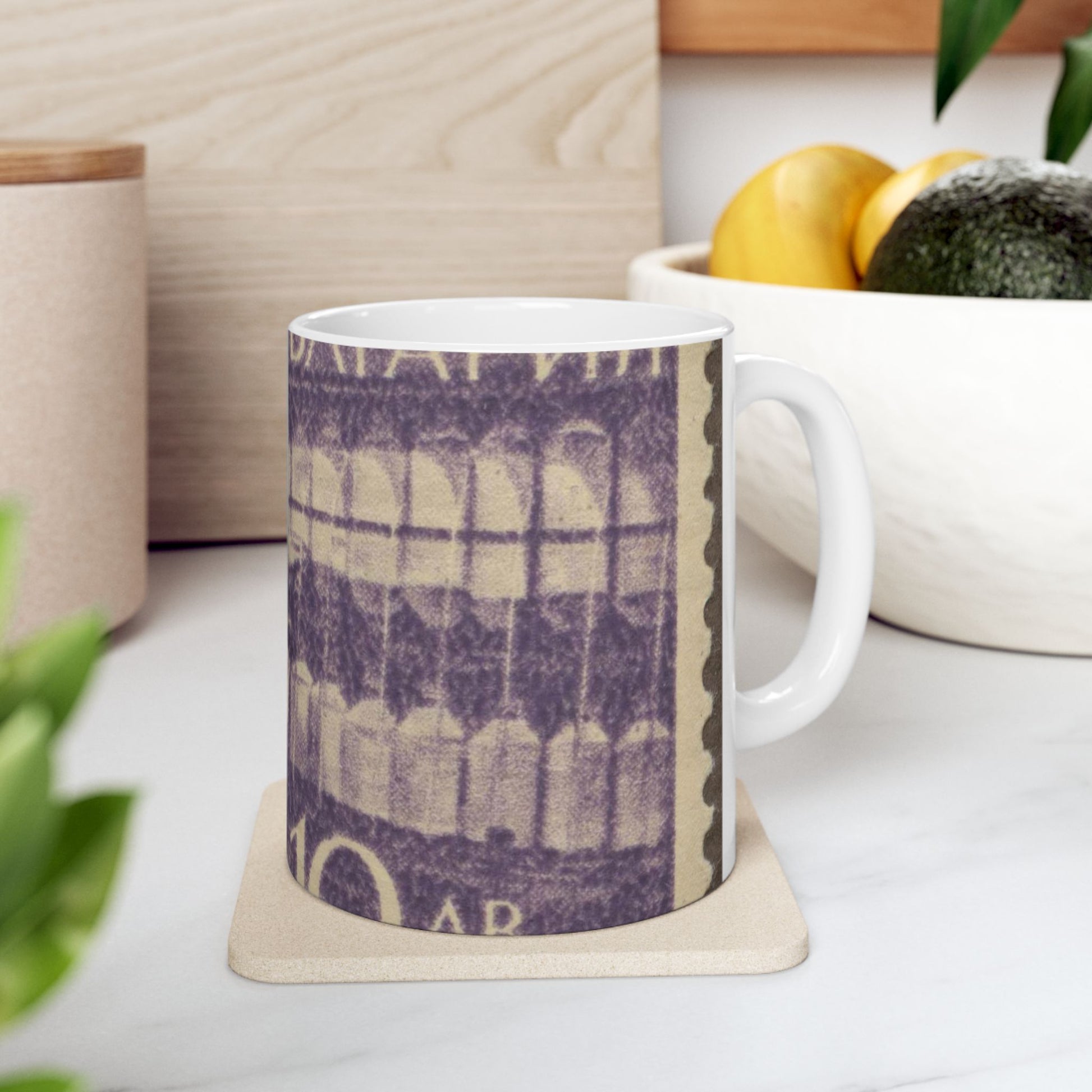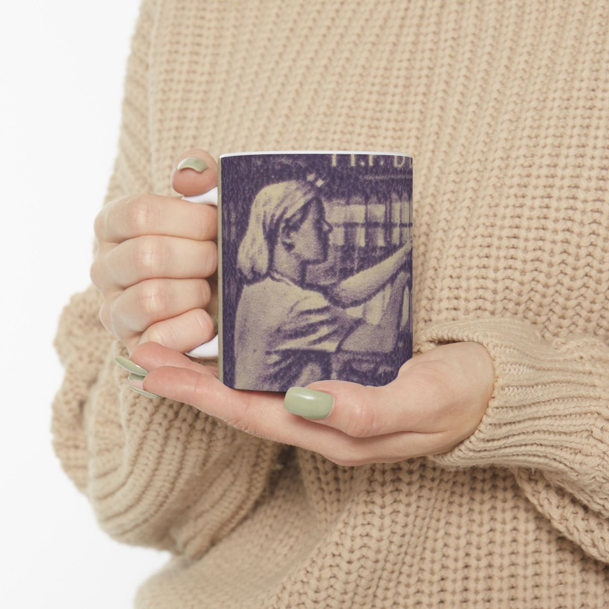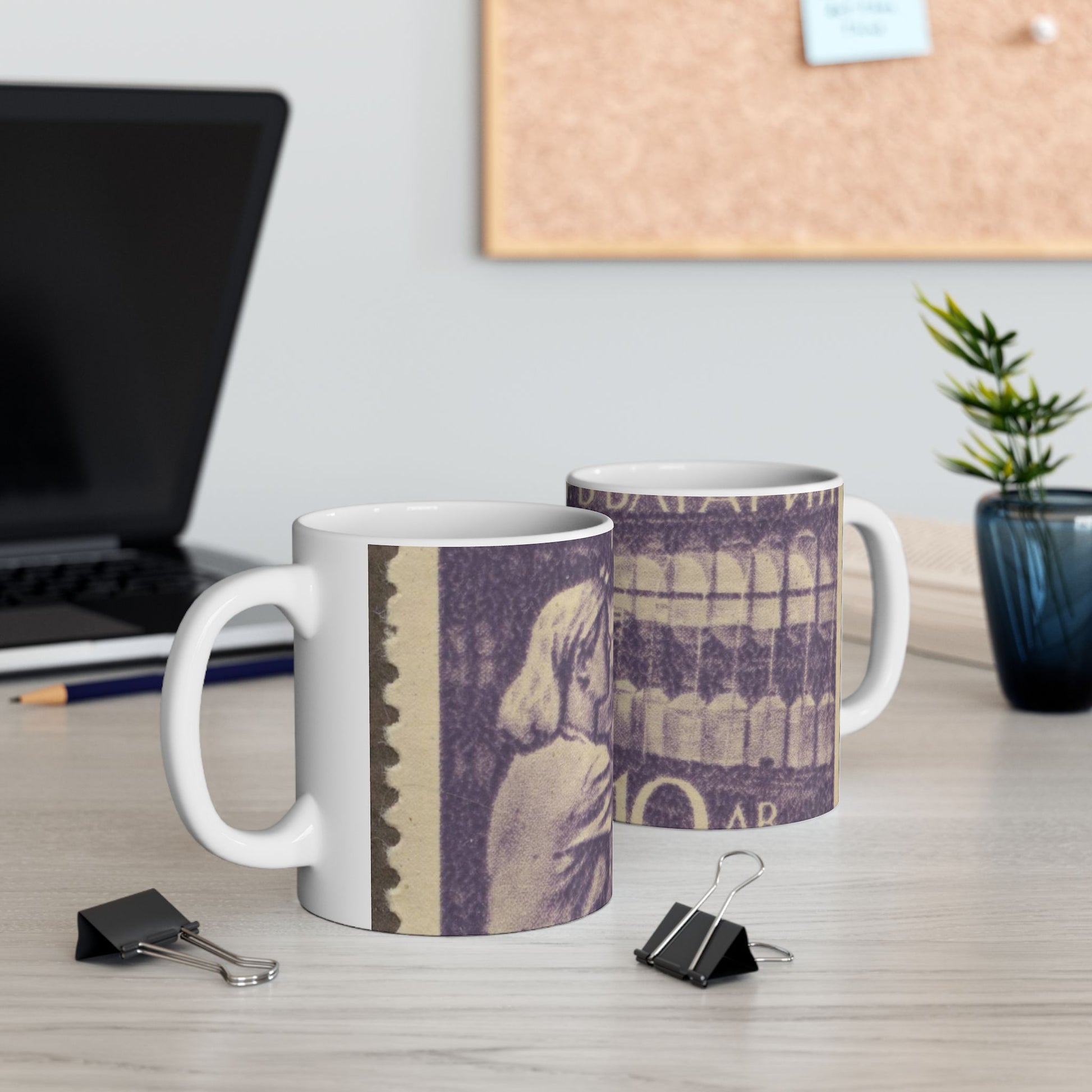 Frimärke ur Gösta Bodmans filatelistiska motivsamling, påbörjad 1950.Frimärke från Bulgarien, 1949. Motiv av textilarbetare vid spinnmaskin. "Serie: Honör för unga yrkesarbetare". Beautiful Novelty Ceramic Coffee Mug 11oz