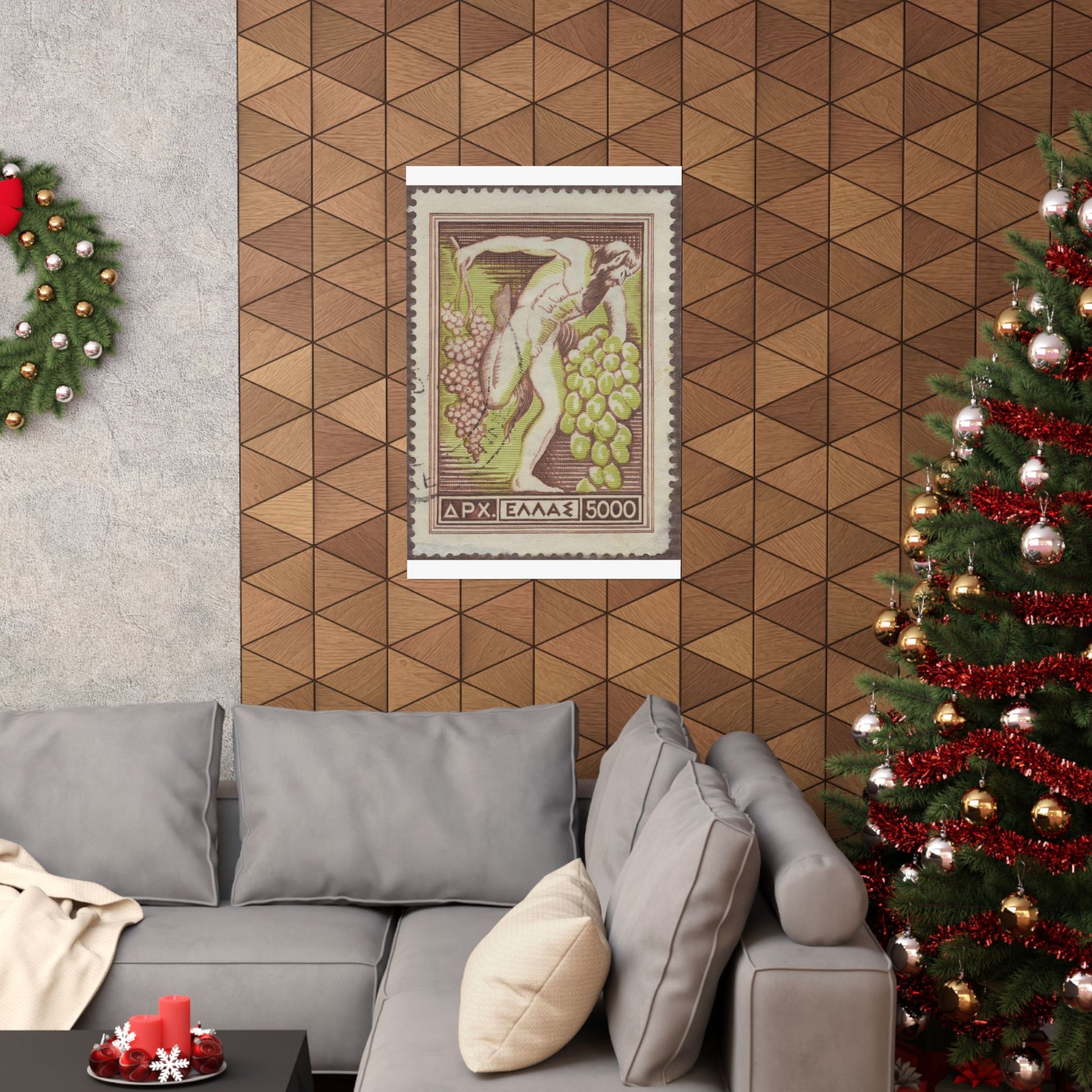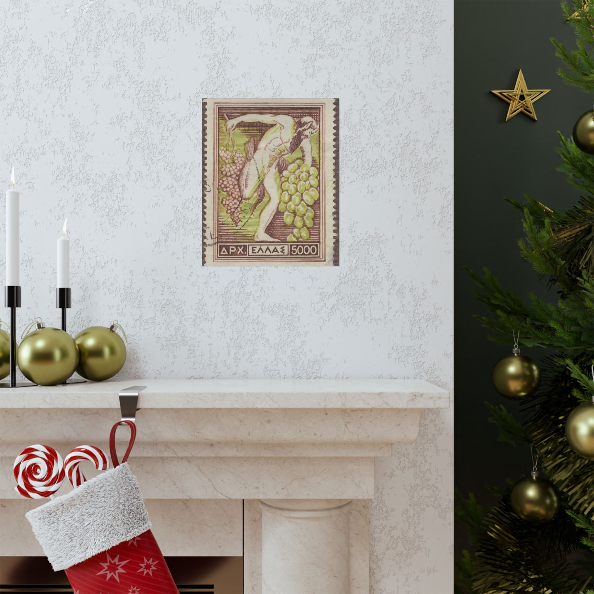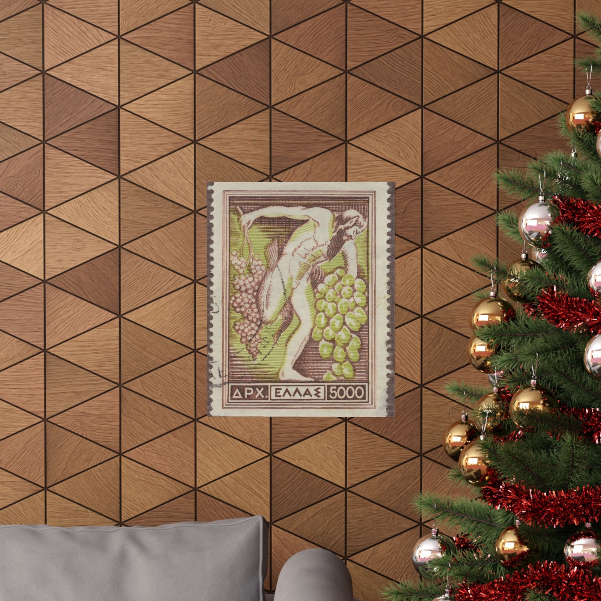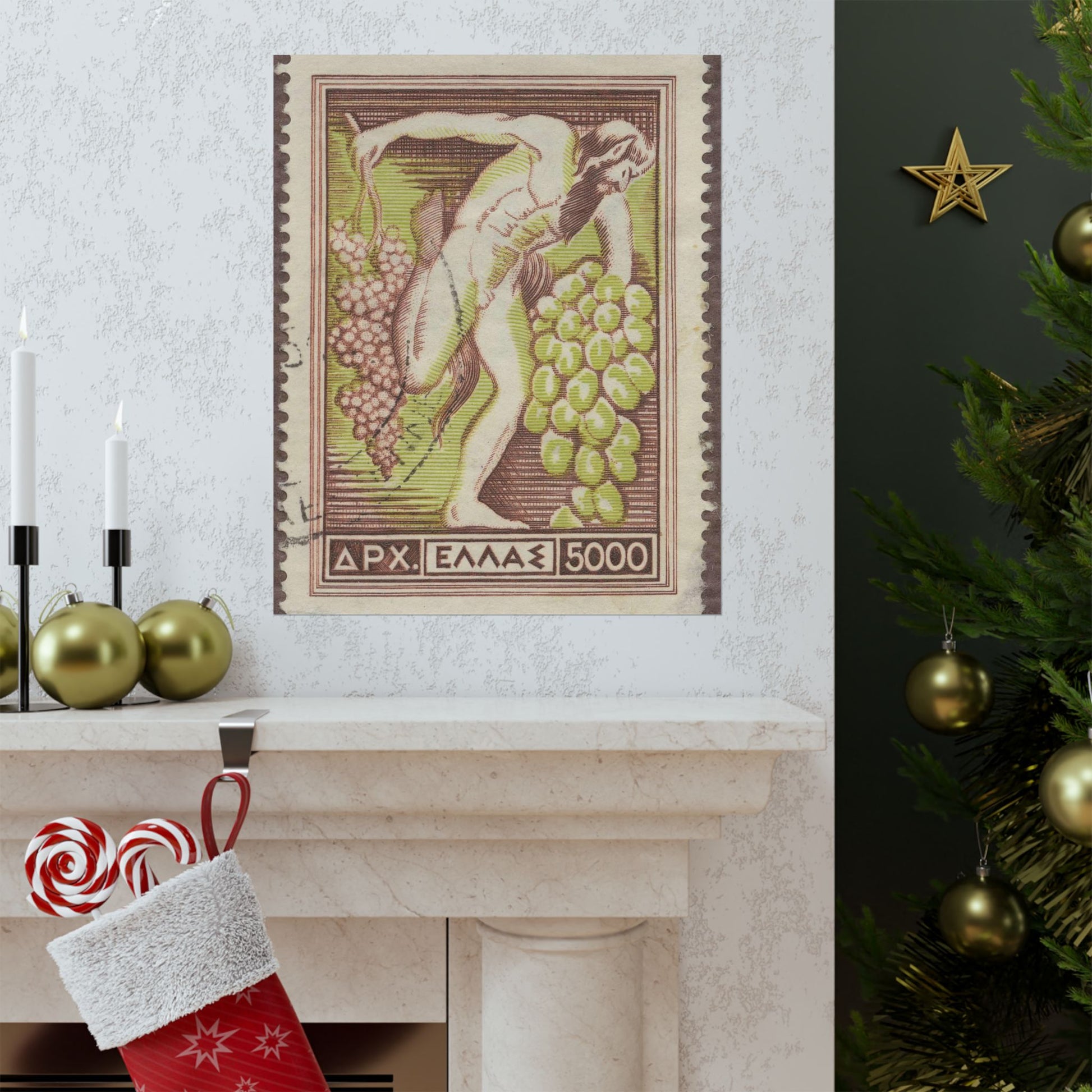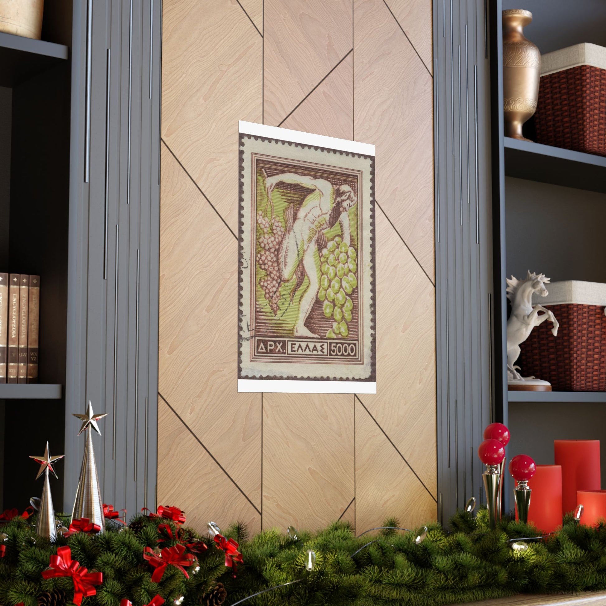 Frimärke ur Gösta Bodmans filatelistiska motivsamling, påbörjad 1950.Frimärke från Grekland, 1953. Motiv av Bacchus med vindruvsklasar. High Quality Matte Wall Art Poster for Home, Office, Classroom