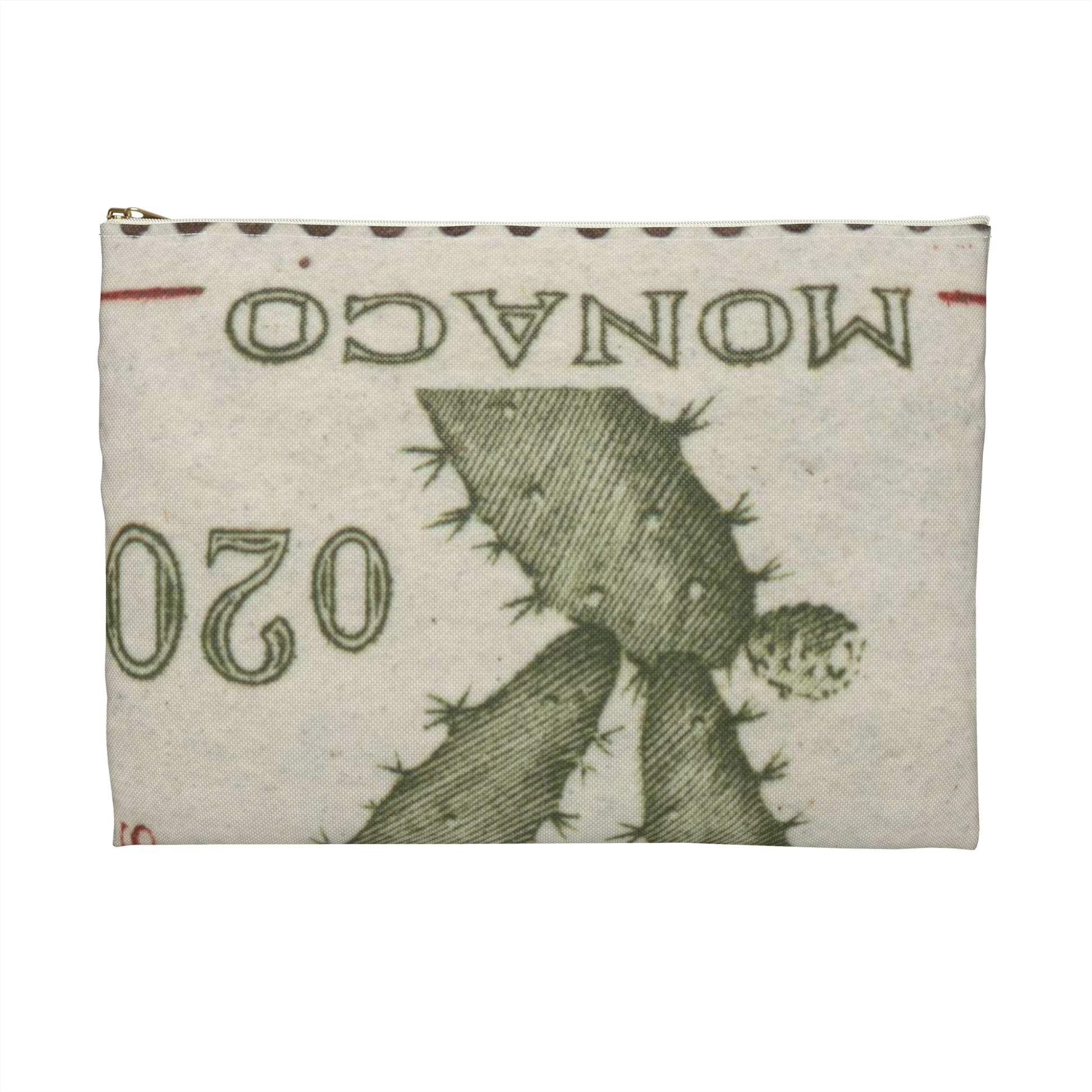 Frimärke ur Gösta Bodmans filatelistiska motivsamling, påbörjad 1950.Frimärke från Monaco, 1960-62. Motiv av kaktus. "Rainer III serie: diverse". Large Organizer Pouch with Black Zipper