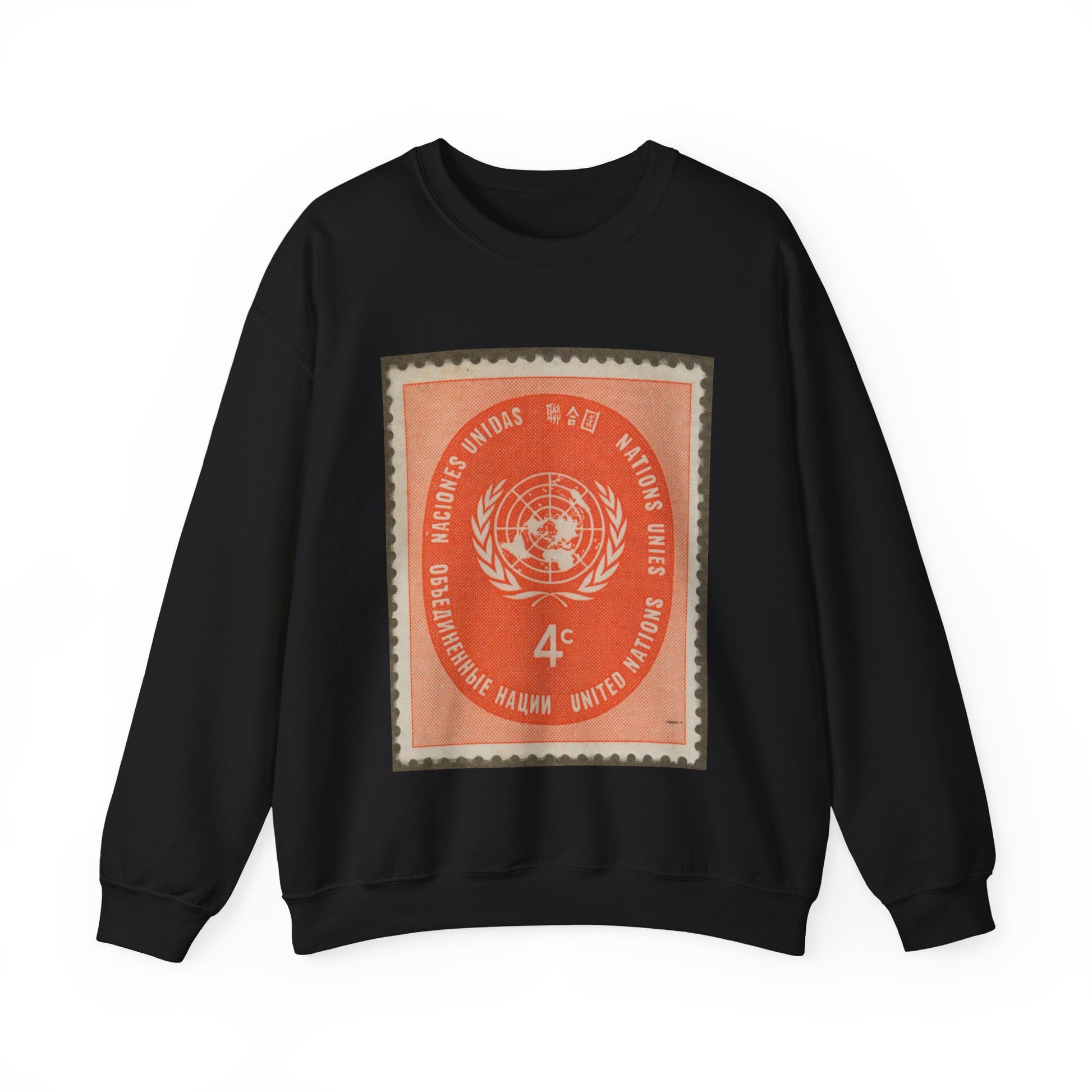 Frimärke ur Gösta Bodmans filatelistiska motivsamling, påbörjad 1950.Frimärke från Nations Unies 1958. Motiv av F. N.- märket. Black Heavy Blend Adult Crew Neck SweatShirt