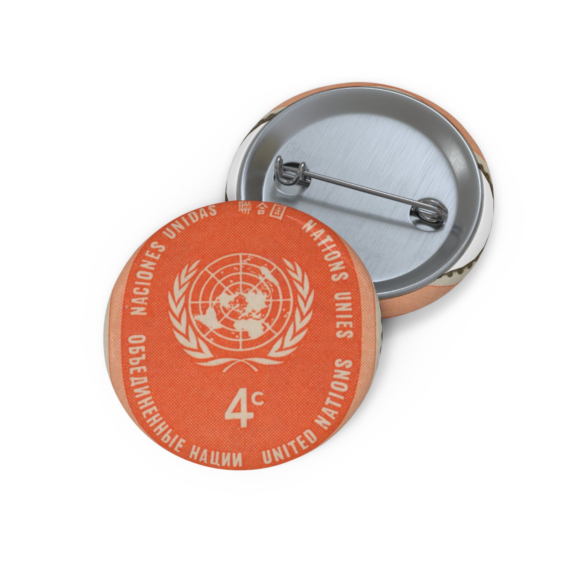 Frimärke ur Gösta Bodmans filatelistiska motivsamling, påbörjad 1950.Frimärke från Nations Unies 1958. Motiv av F. N.- märket. Pin Buttons with Crisp Design