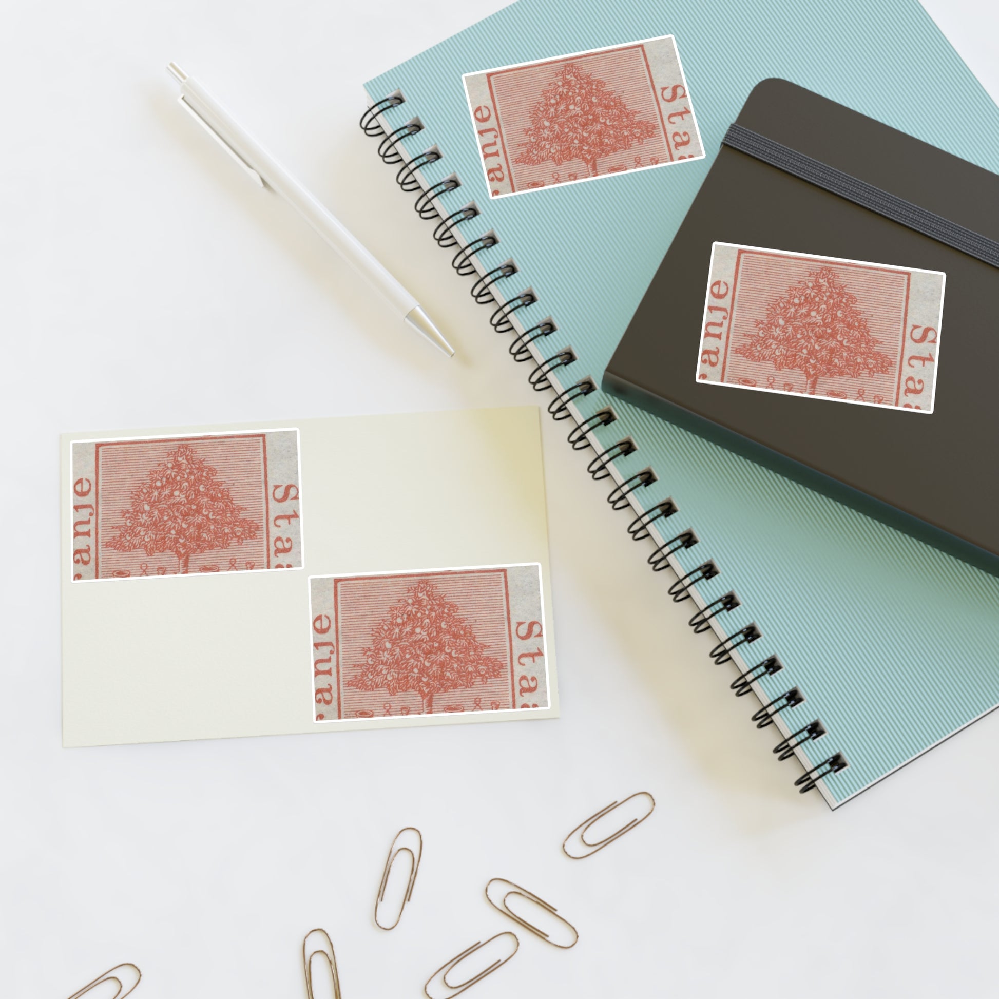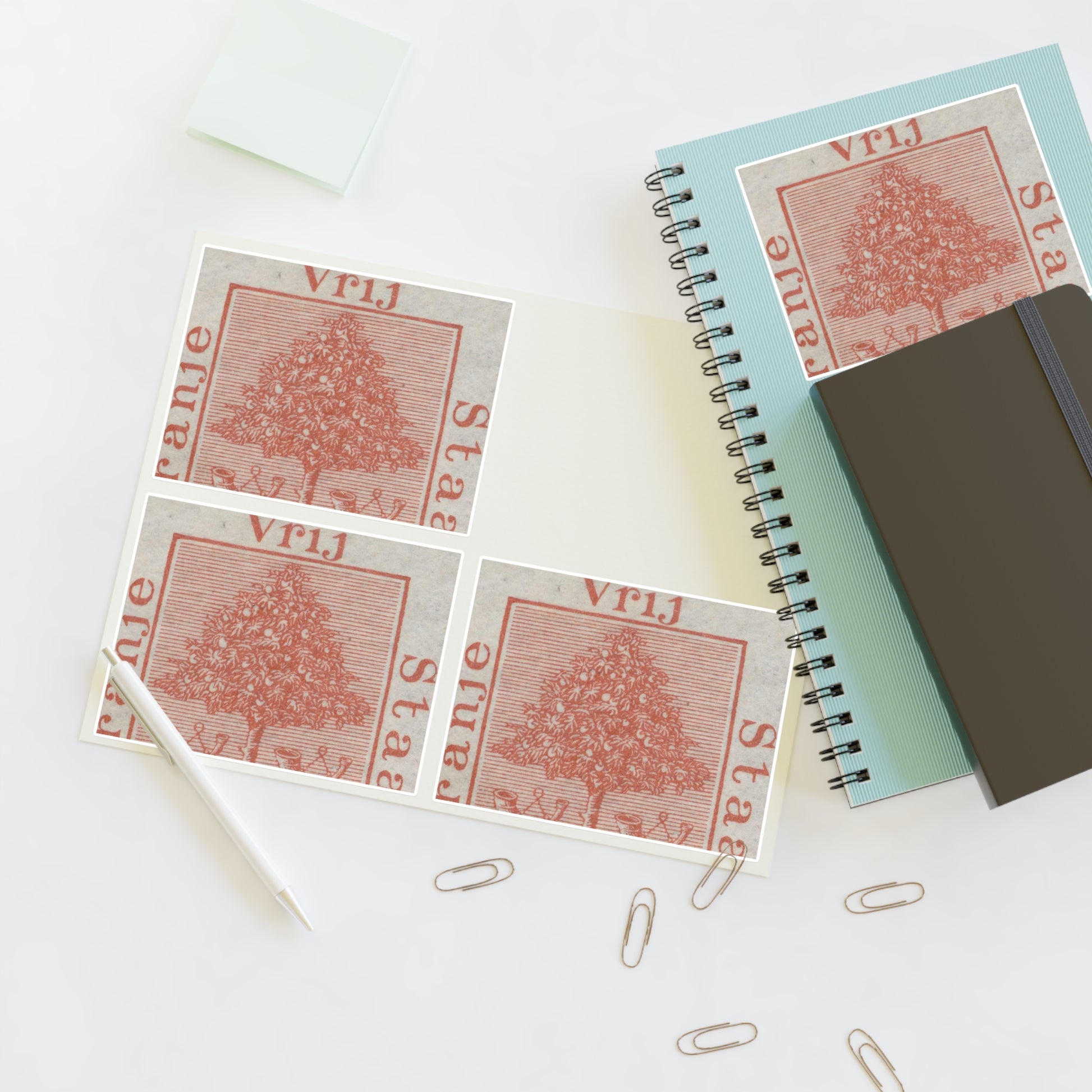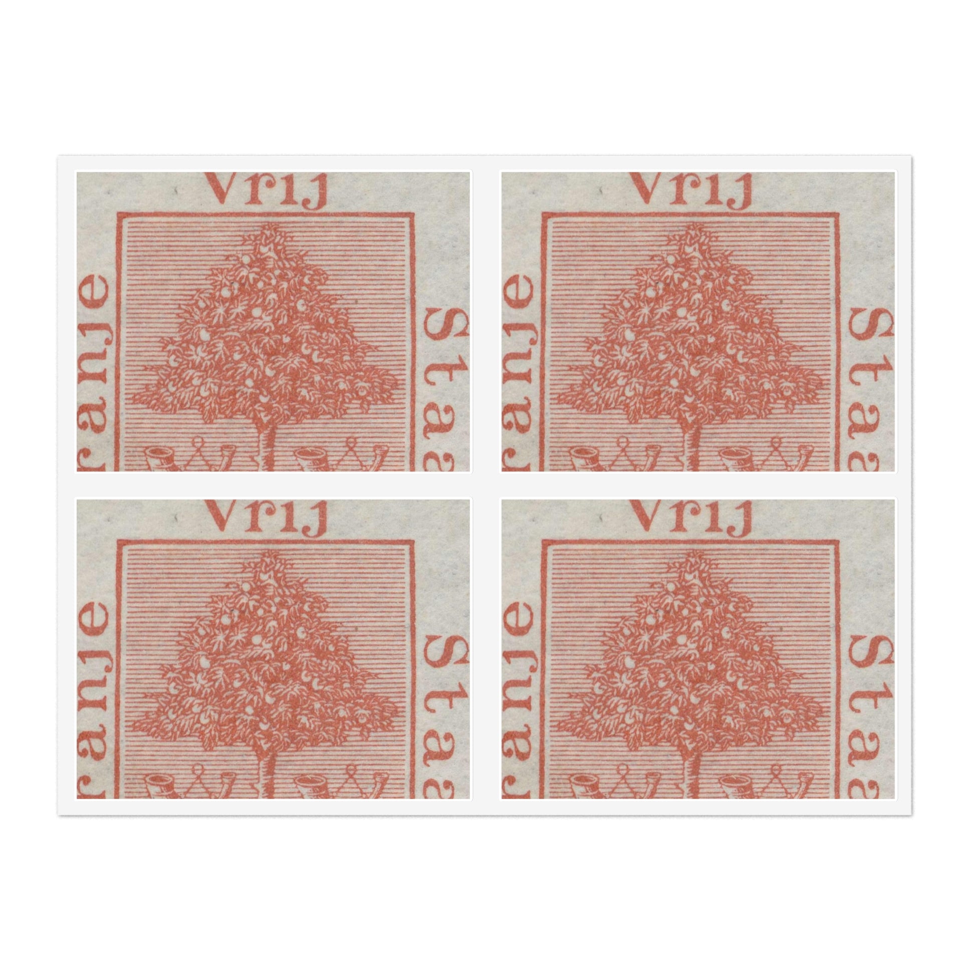 Frimärke ur Gösta Bodmans filatelistiska motivsamling, påbörjad 1950.Frimärke från Oranje -Fristaten. Motiv av apelsinträd med frukter och posthorn. Laminated UV Protective Vinyl Stickers