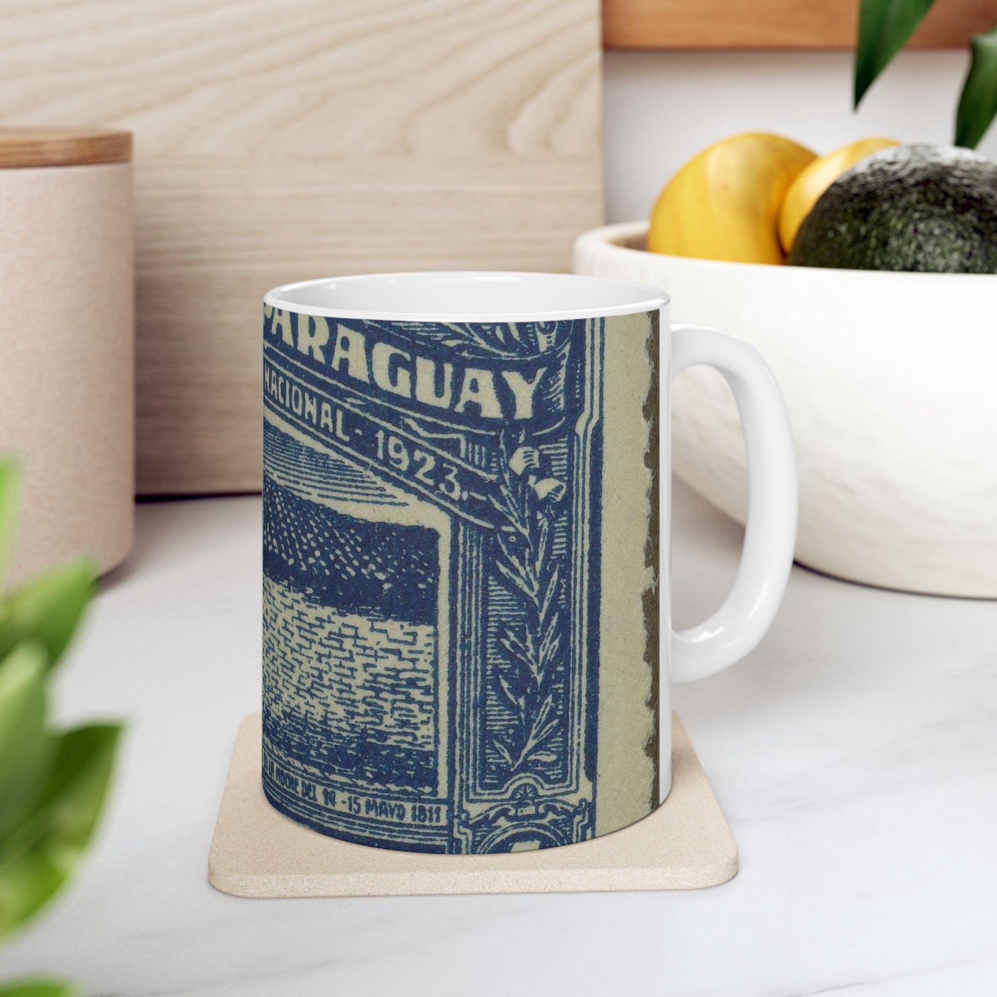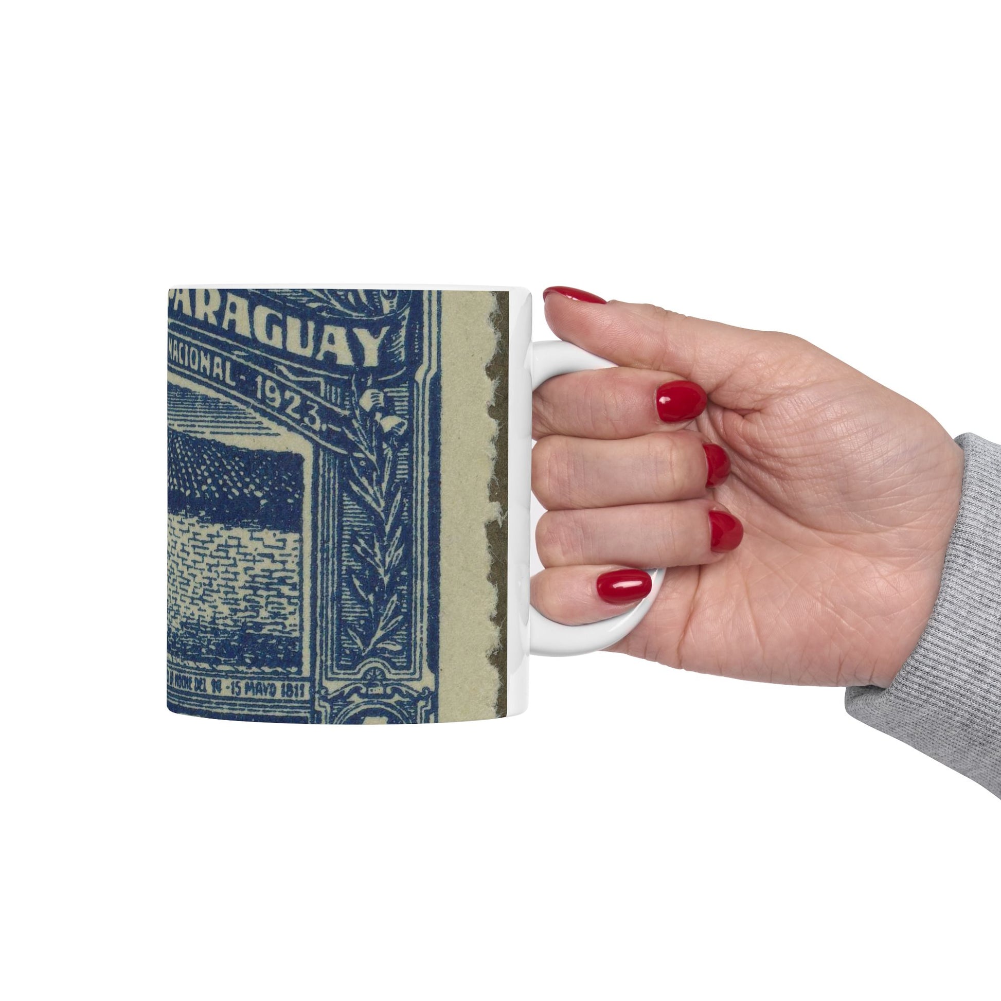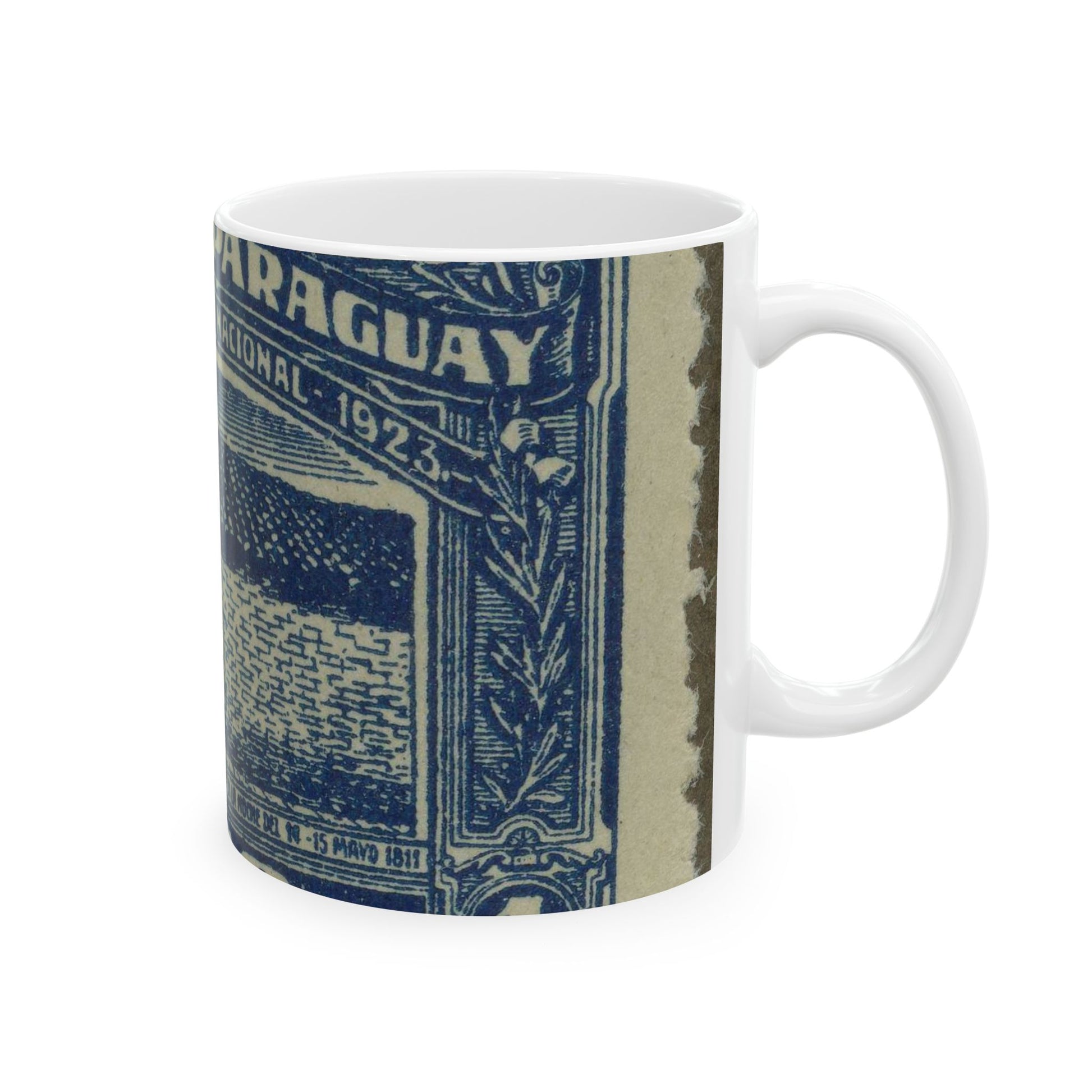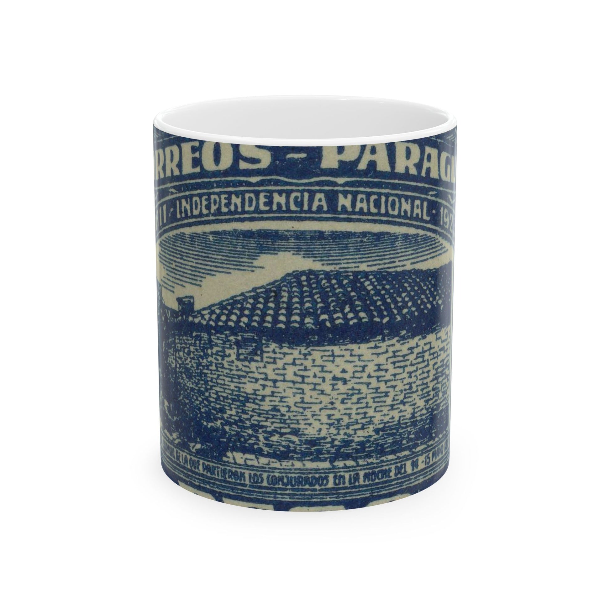 Frimärke ur Gösta Bodmans filatelistiska motivsamling, påbörjad 1950.Frimärke från Paraguay, 1923. Motiv av sammansvärjningsbyggnad. "112-årsminne 15 maj 1811, Paraguays självstyre". Beautiful Novelty Ceramic Coffee Mug 11oz