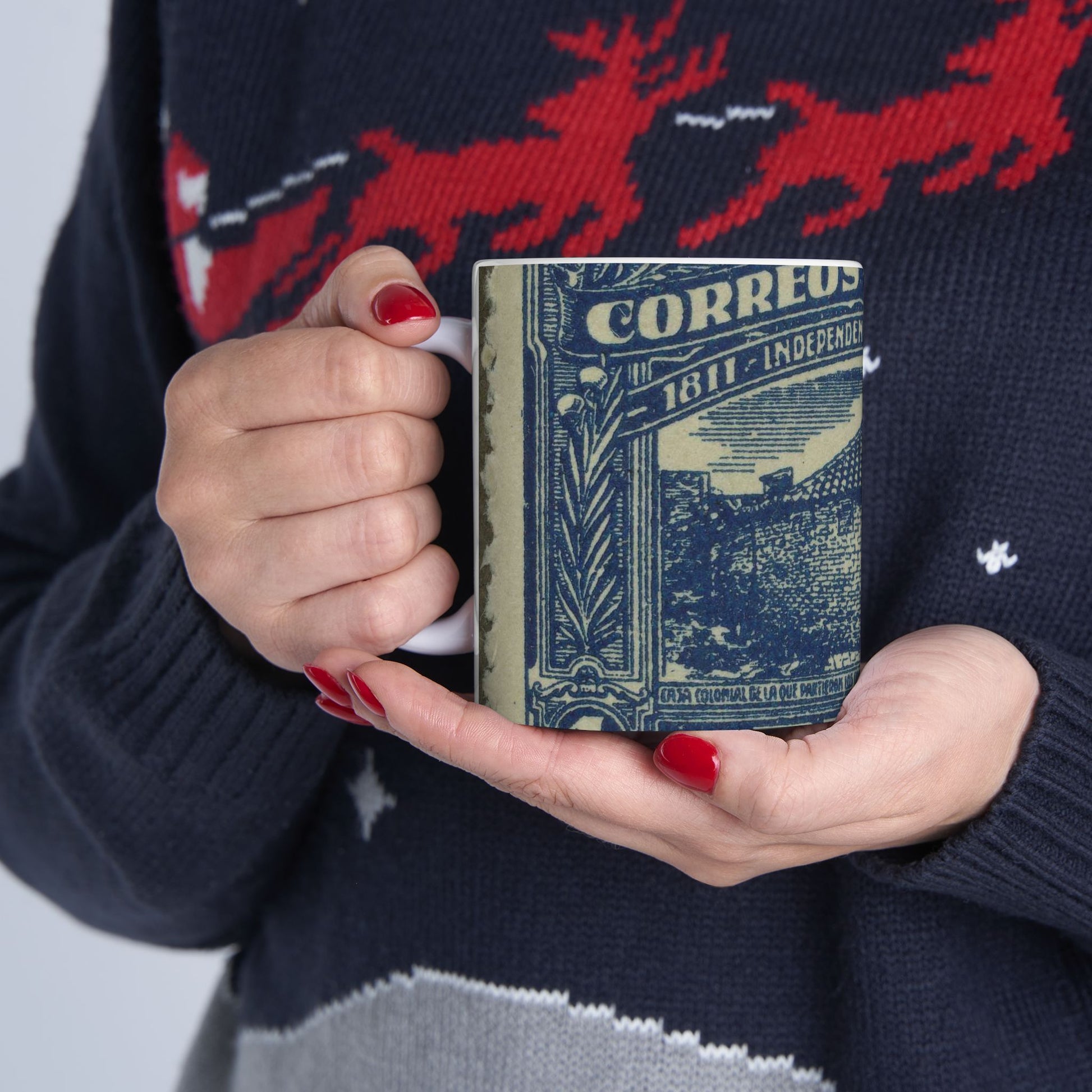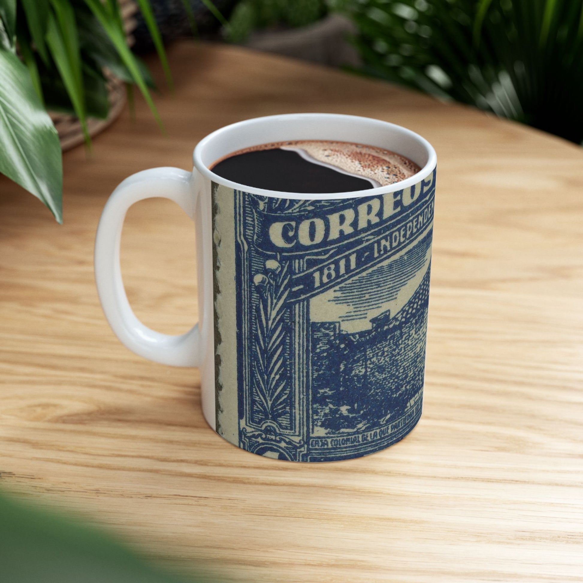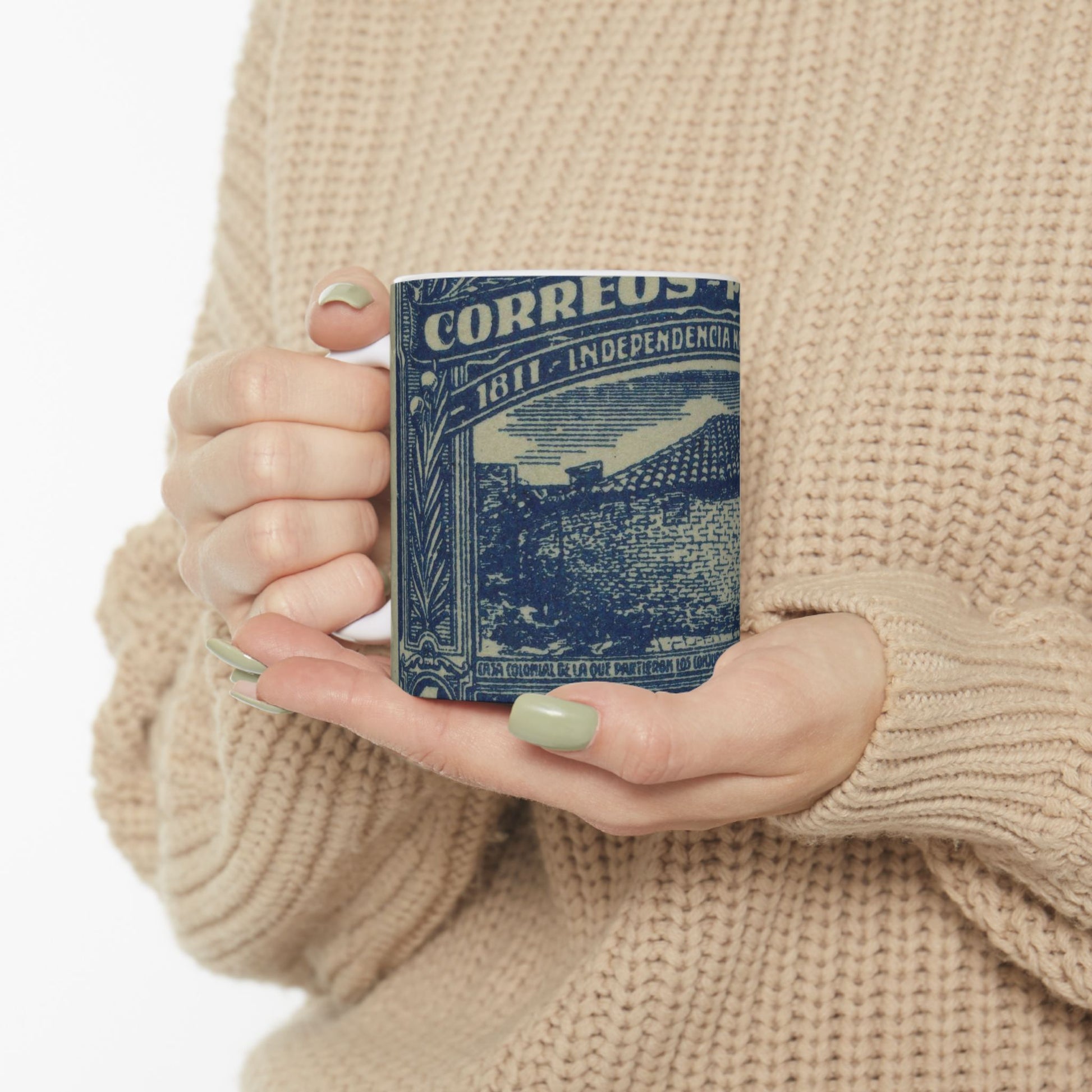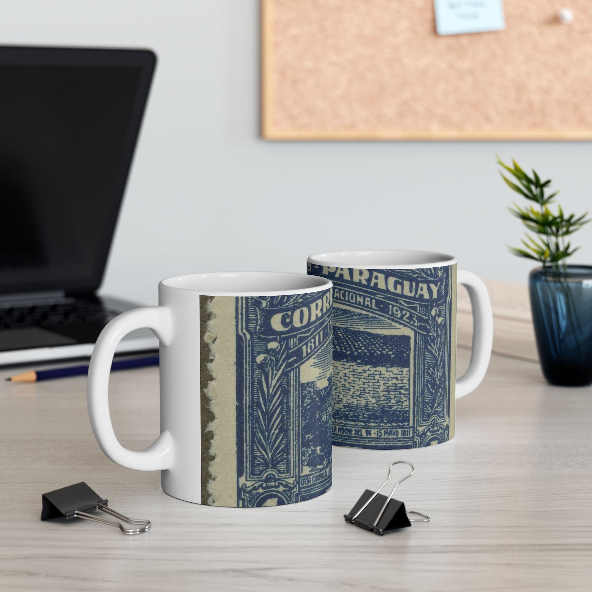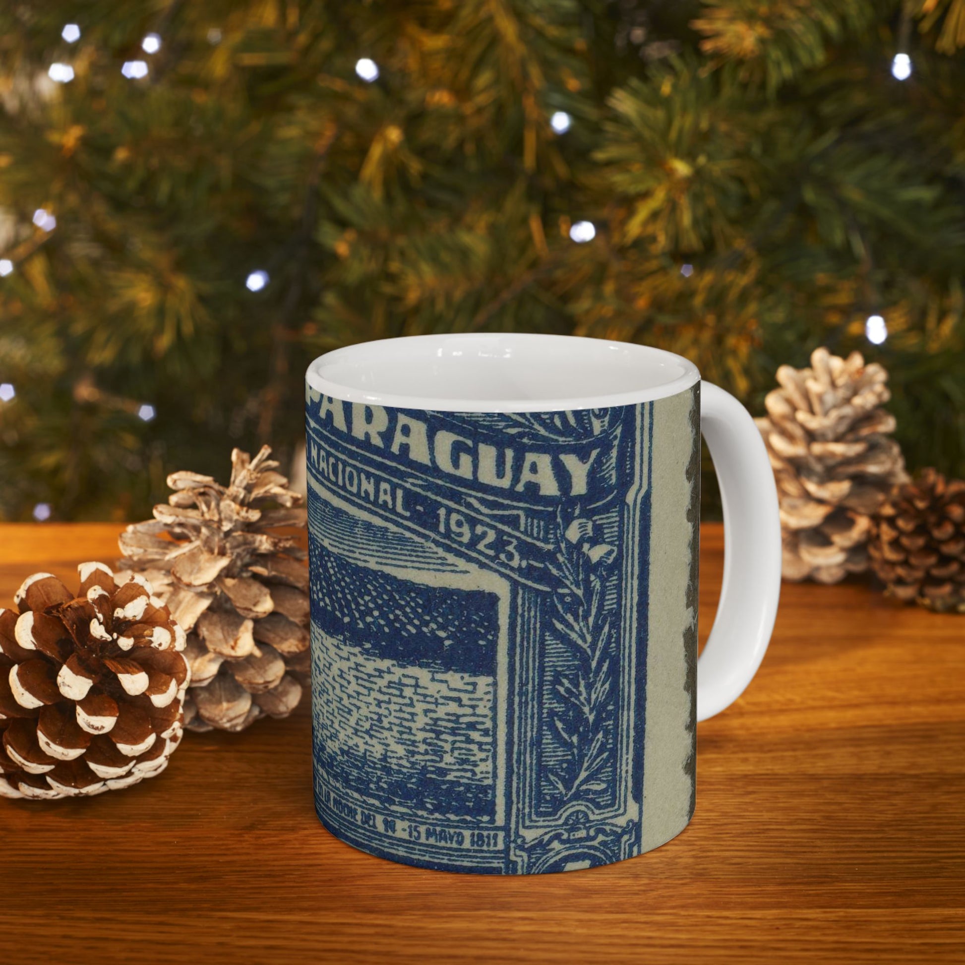 Frimärke ur Gösta Bodmans filatelistiska motivsamling, påbörjad 1950.Frimärke från Paraguay, 1923. Motiv av sammansvärjningsbyggnad. "112-årsminne 15 maj 1811, Paraguays självstyre". Beautiful Novelty Ceramic Coffee Mug 11oz