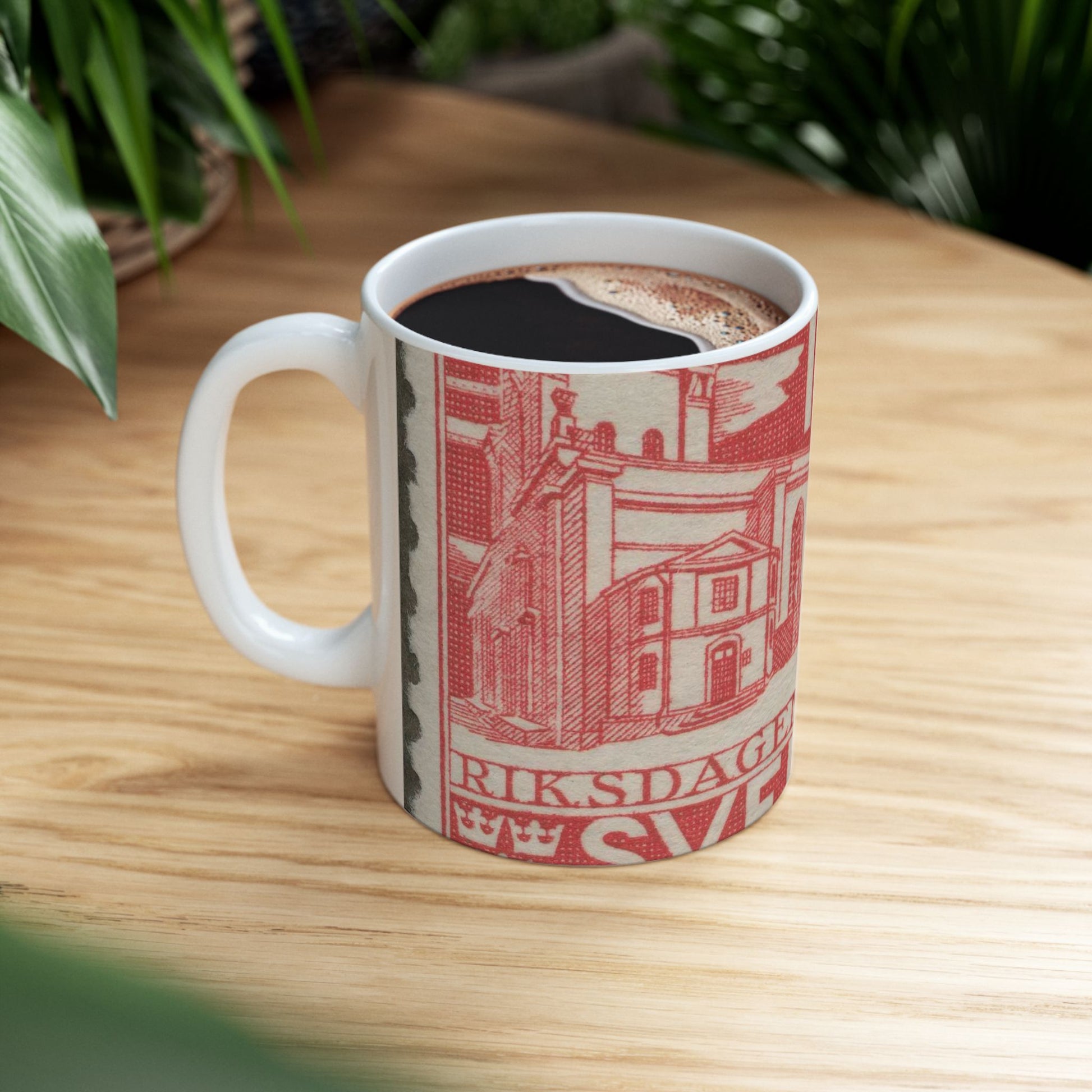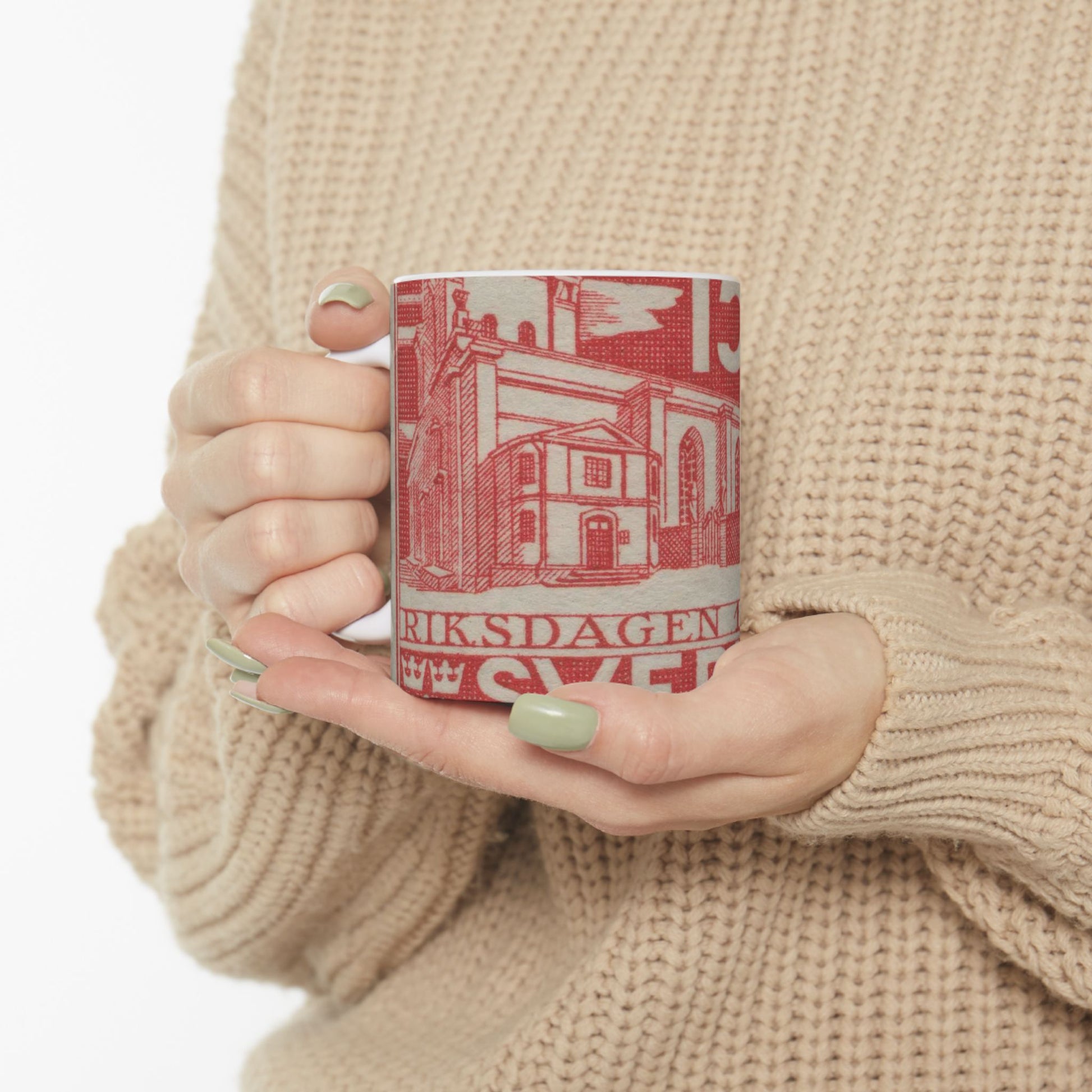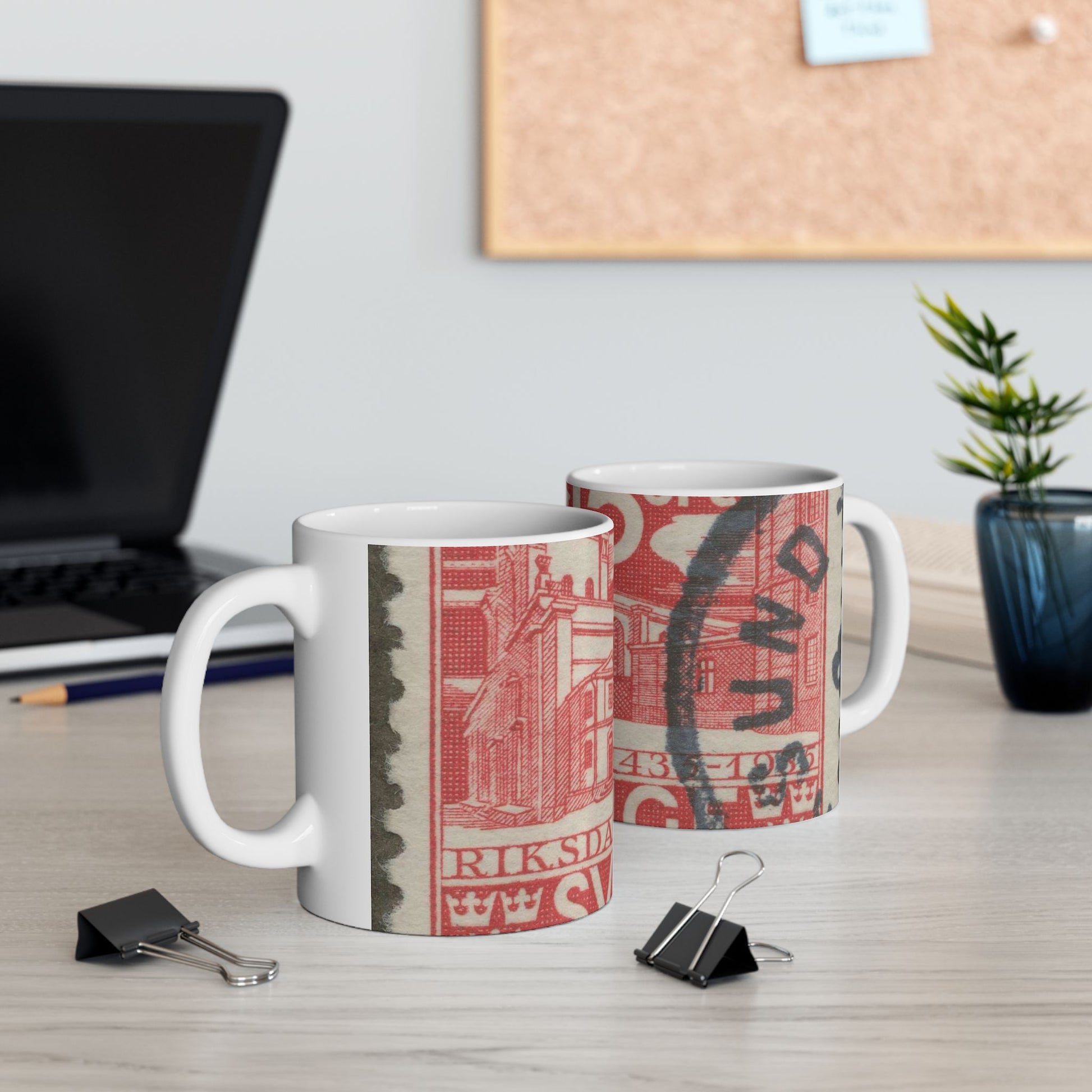 Frimärke ur Gösta Bodmans filatelistiska motivsamling, påbörjad 1950.Frimärke från Sverige. Motiv av Storkyrkan i Stockholm. "Den svenska riksdagen 500 år 1435-1935". Beautiful Novelty Ceramic Coffee Mug 11oz